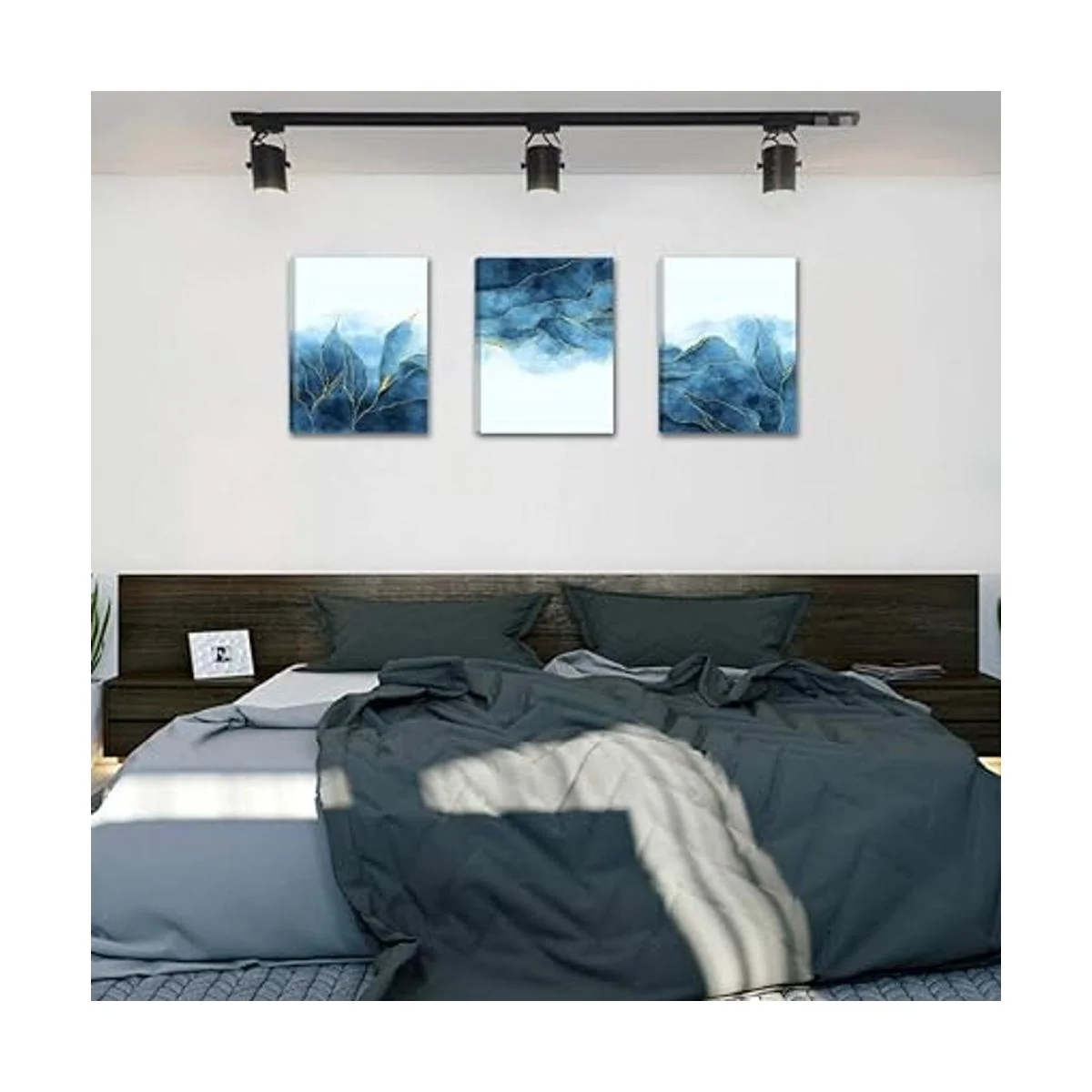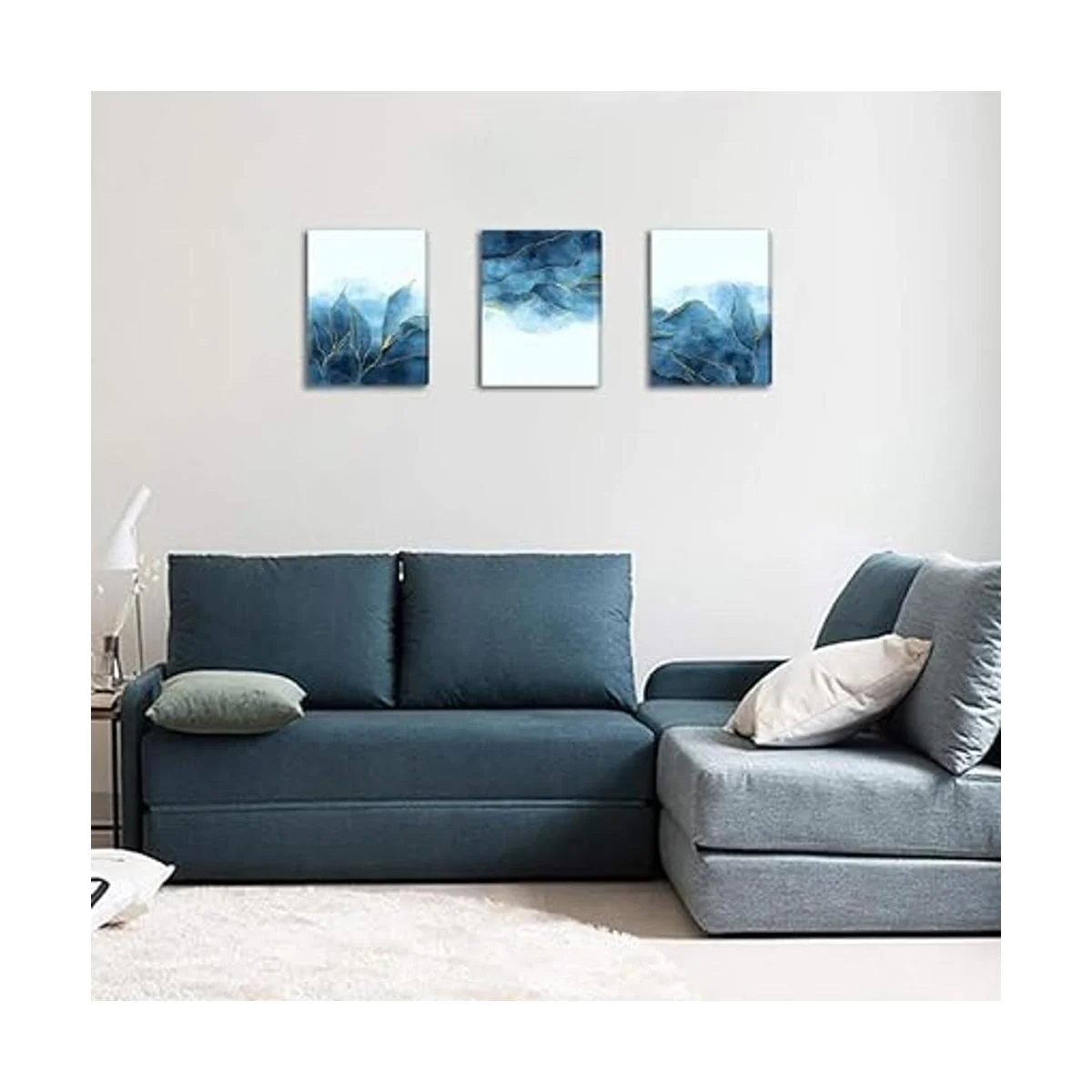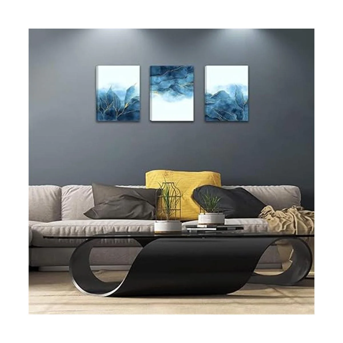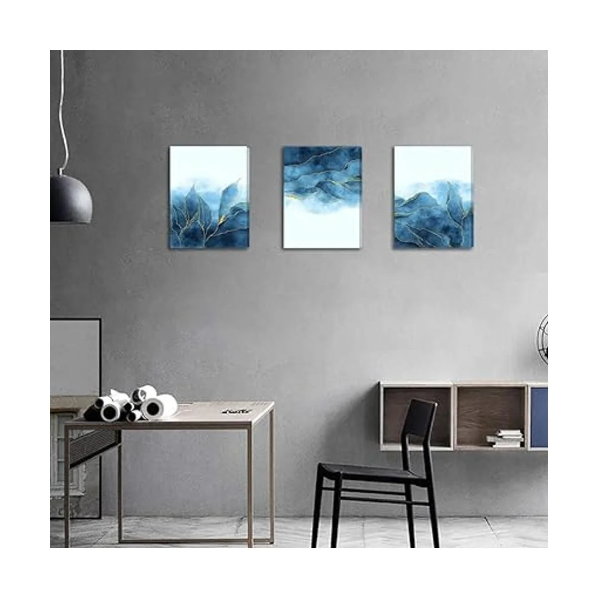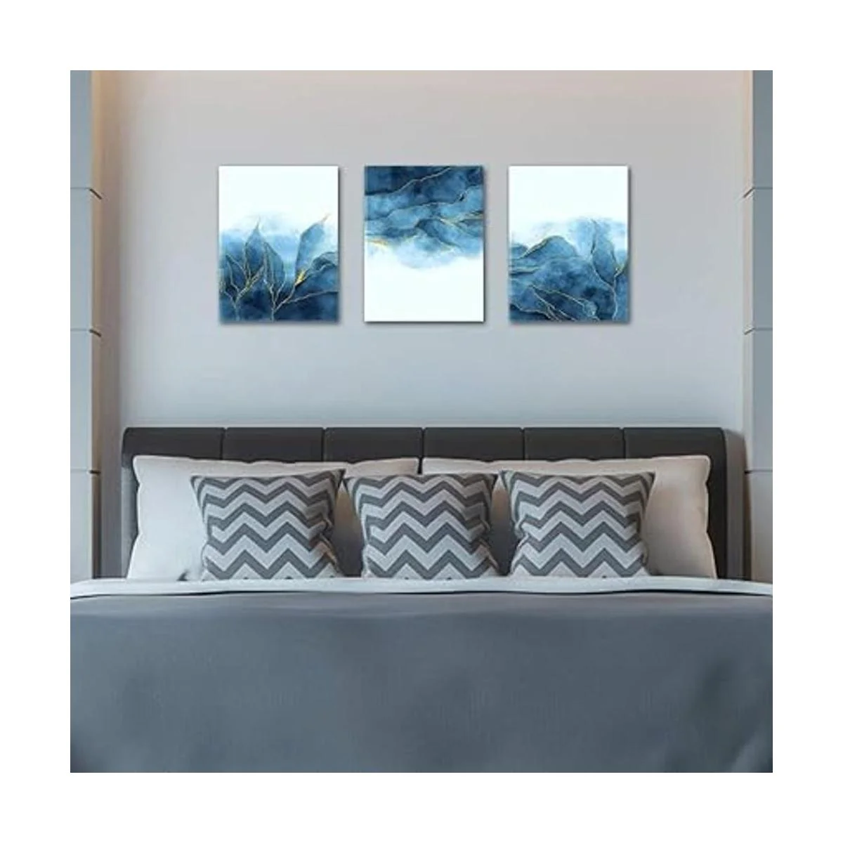 Lienzo abstracto para pared, decoración de sala de estar, dormitorio, oficina, decoración de pared de baño, lienzo gris y azul, cuadros modernos para decoración del hogar, arte de pared, arte de pared de moda, 16 x 12 pulgadas, 3 piezas