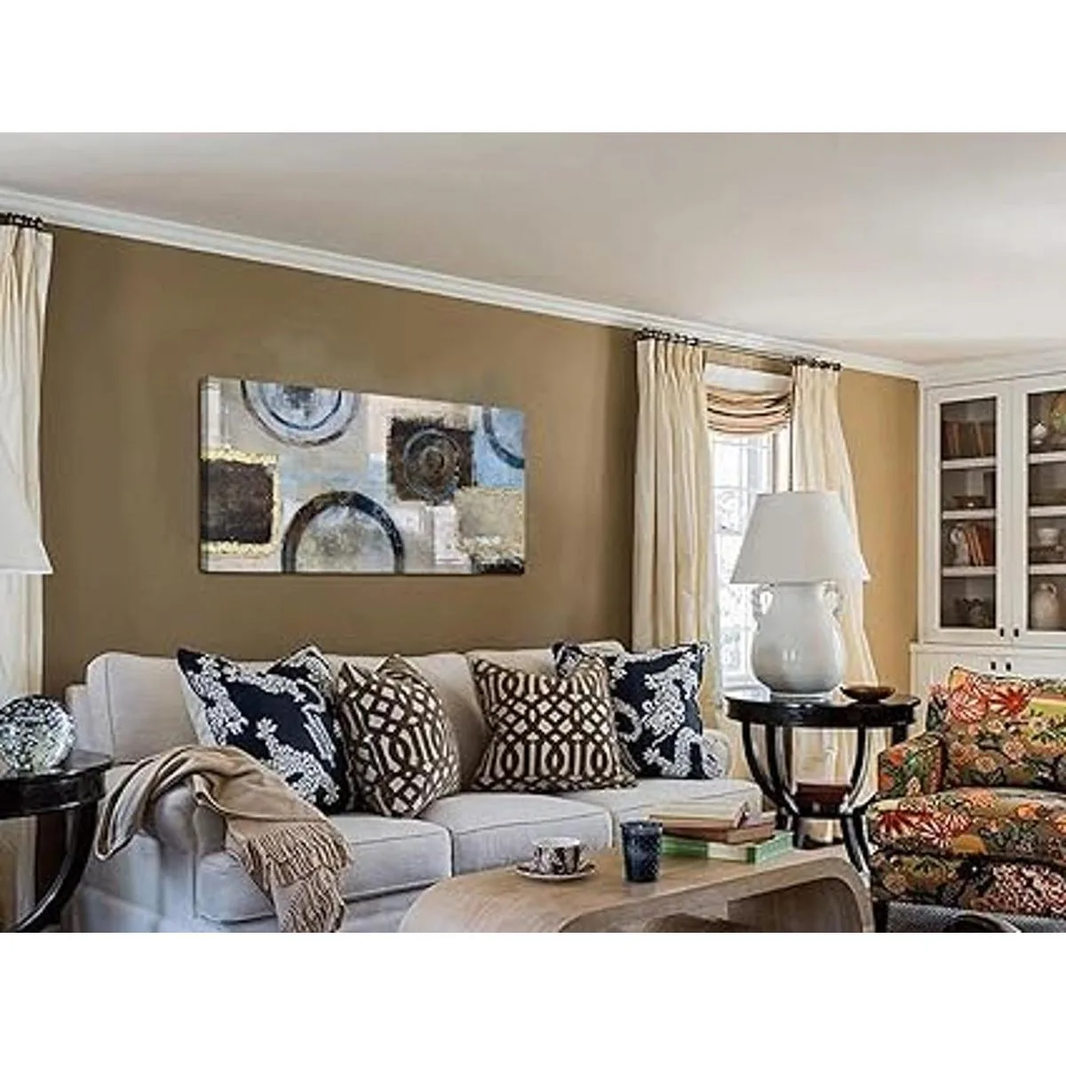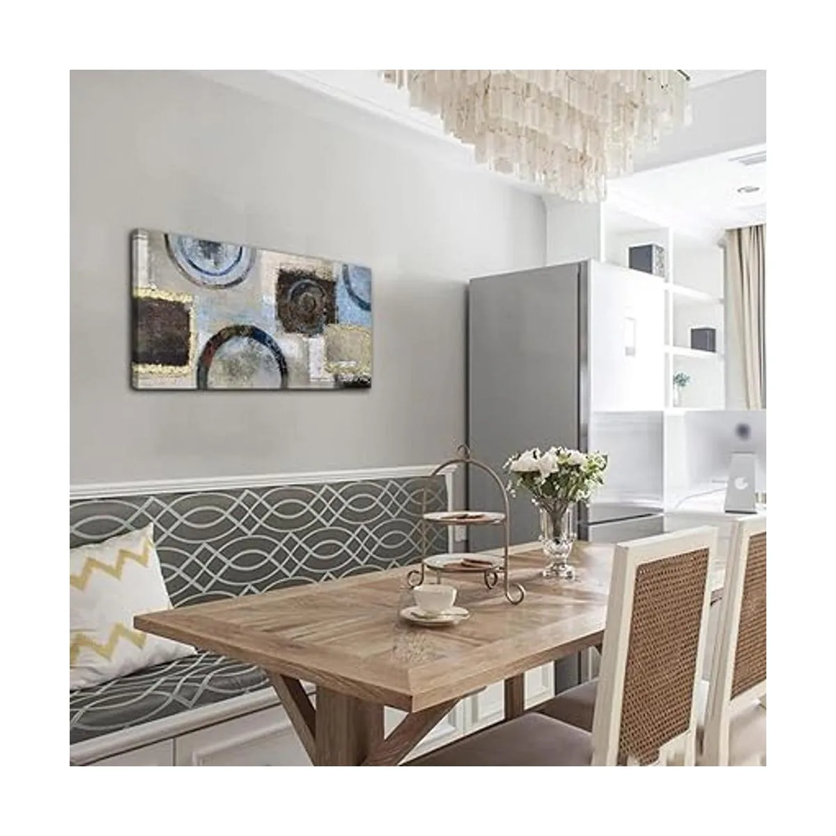Lienzo abstracto para pared, pintura circular geométrica gris, tamaño grande, bloques modernos, ilustraciones enmarcadas para sala de estar, dormitorio, decoración de pared en casa, oficina, 40 x 20 pulgadas, un panel