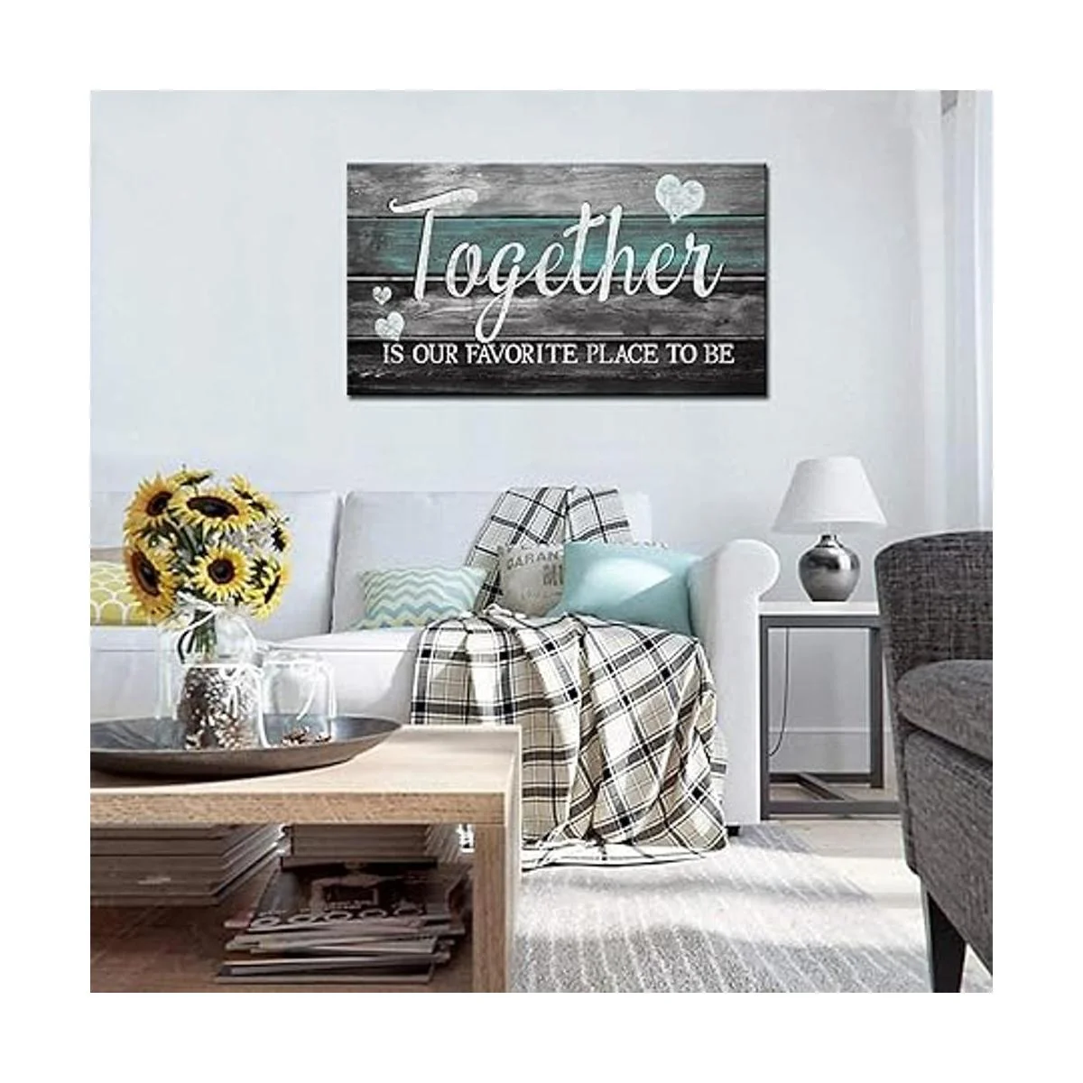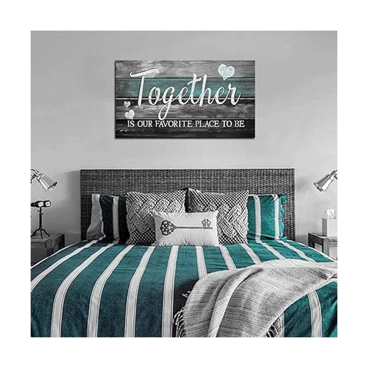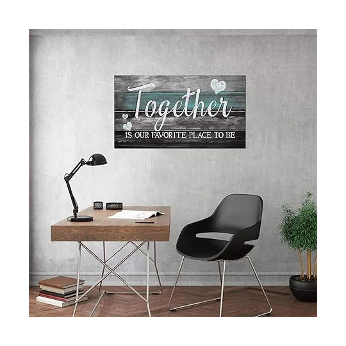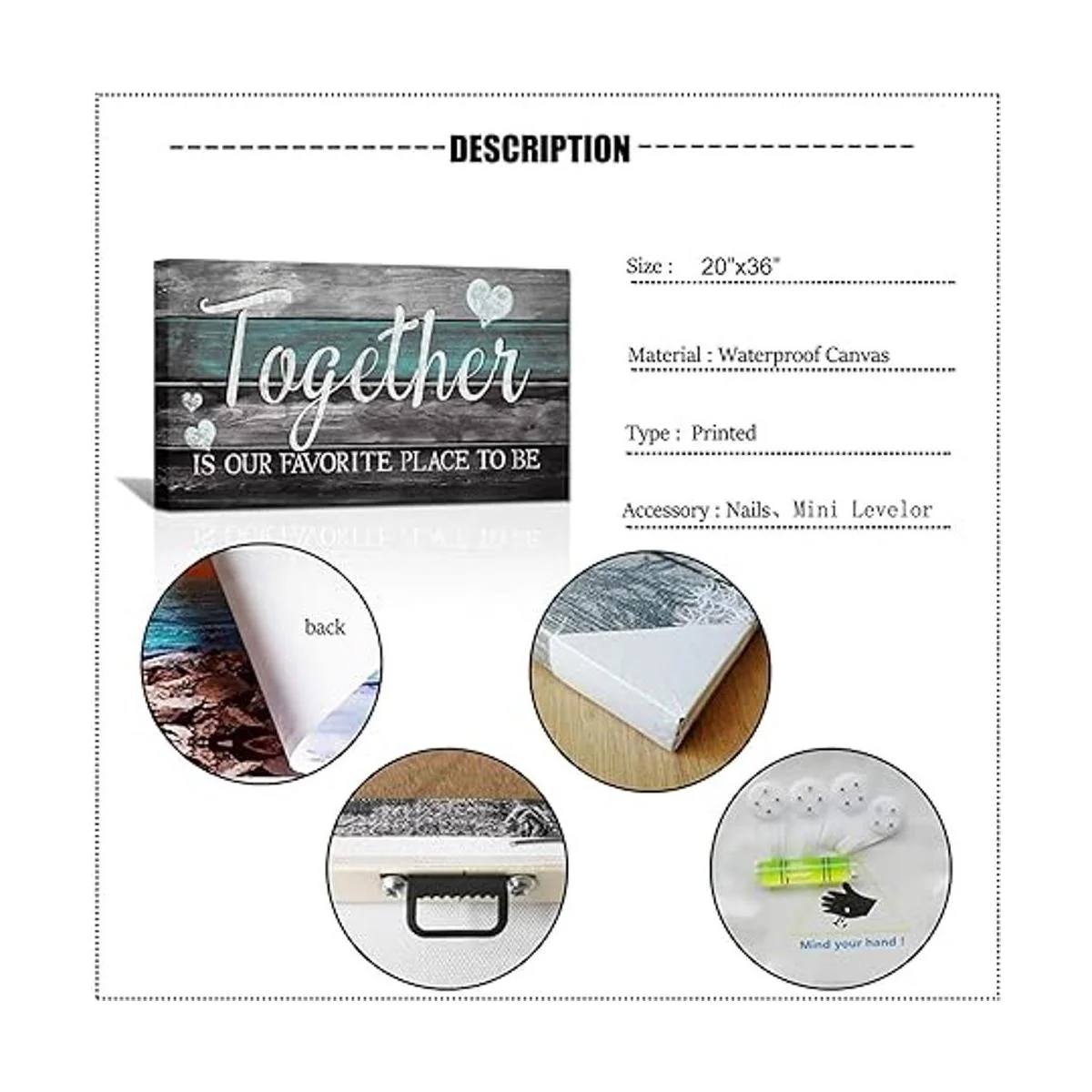 Lienzo con citas inspiradoras para pared, diseño rústico, con temática de amor para baño, impresiones modernas, póster para decoración de pared de dormitorio, regalo juntos es nuestro lugar favorito para colgar fácilmente 20 x 36 pulgadas