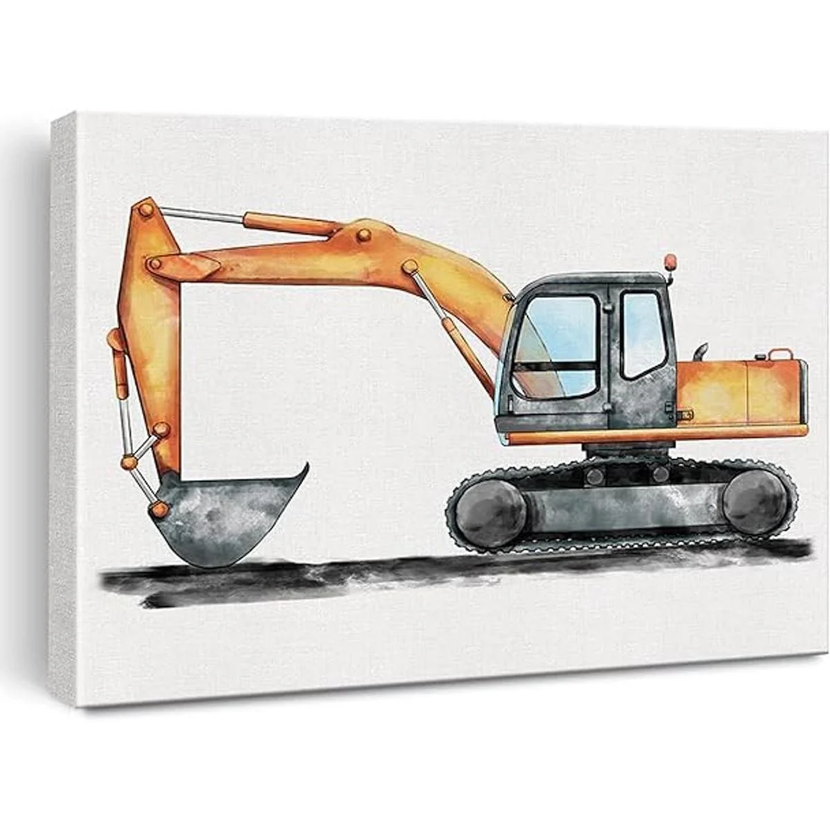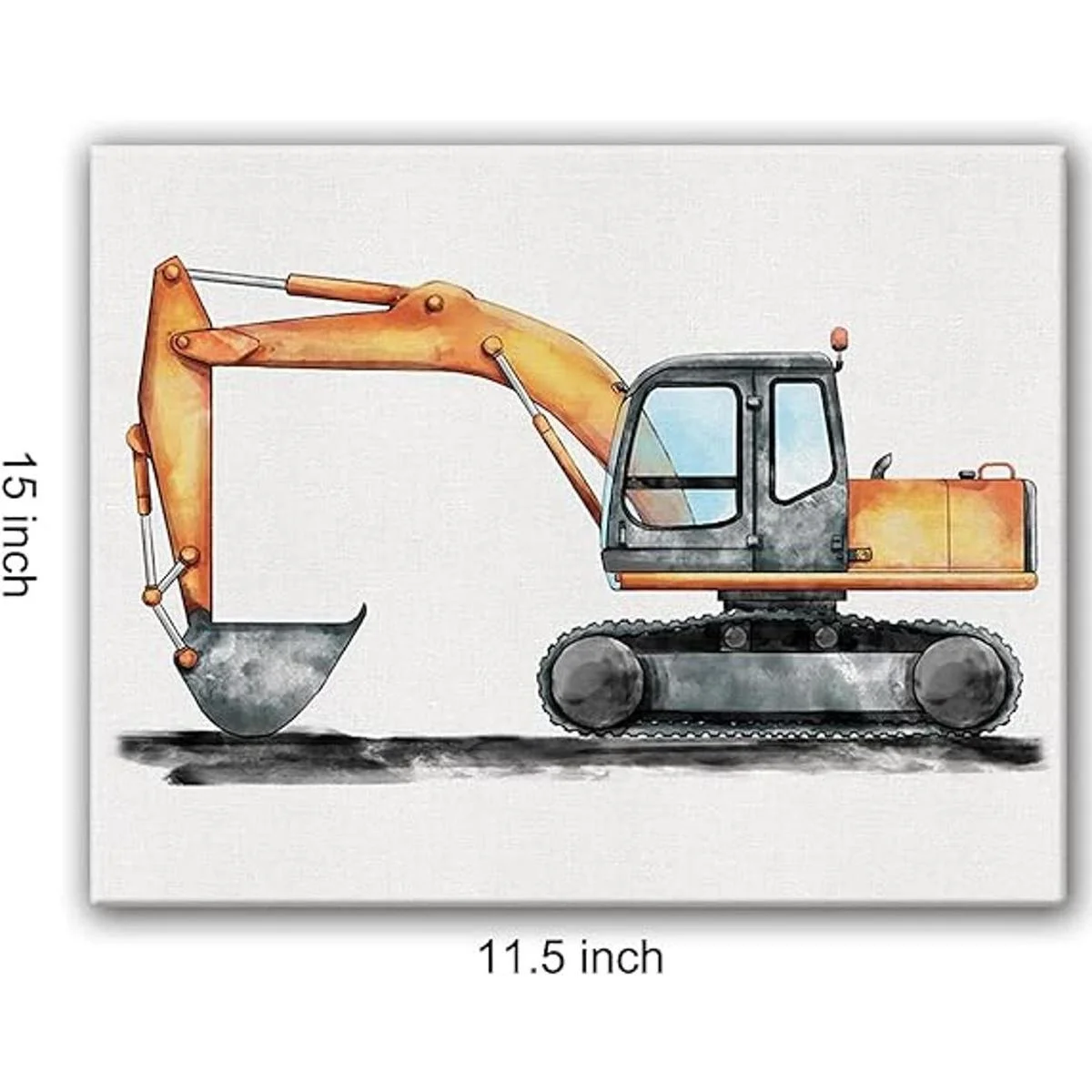Lienzo de construcción de camiones de lona para pared, acuarela, vehículos de construcción, camiones, pintura en lienzo, para el hogar, dormitorio, cuarto de niños, decoración de pared con marco de obras de arte 12.0 x 15.2 in