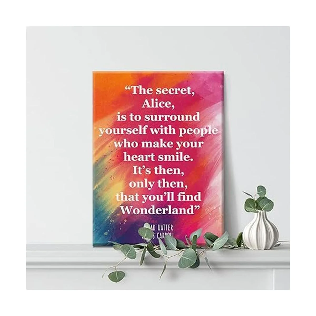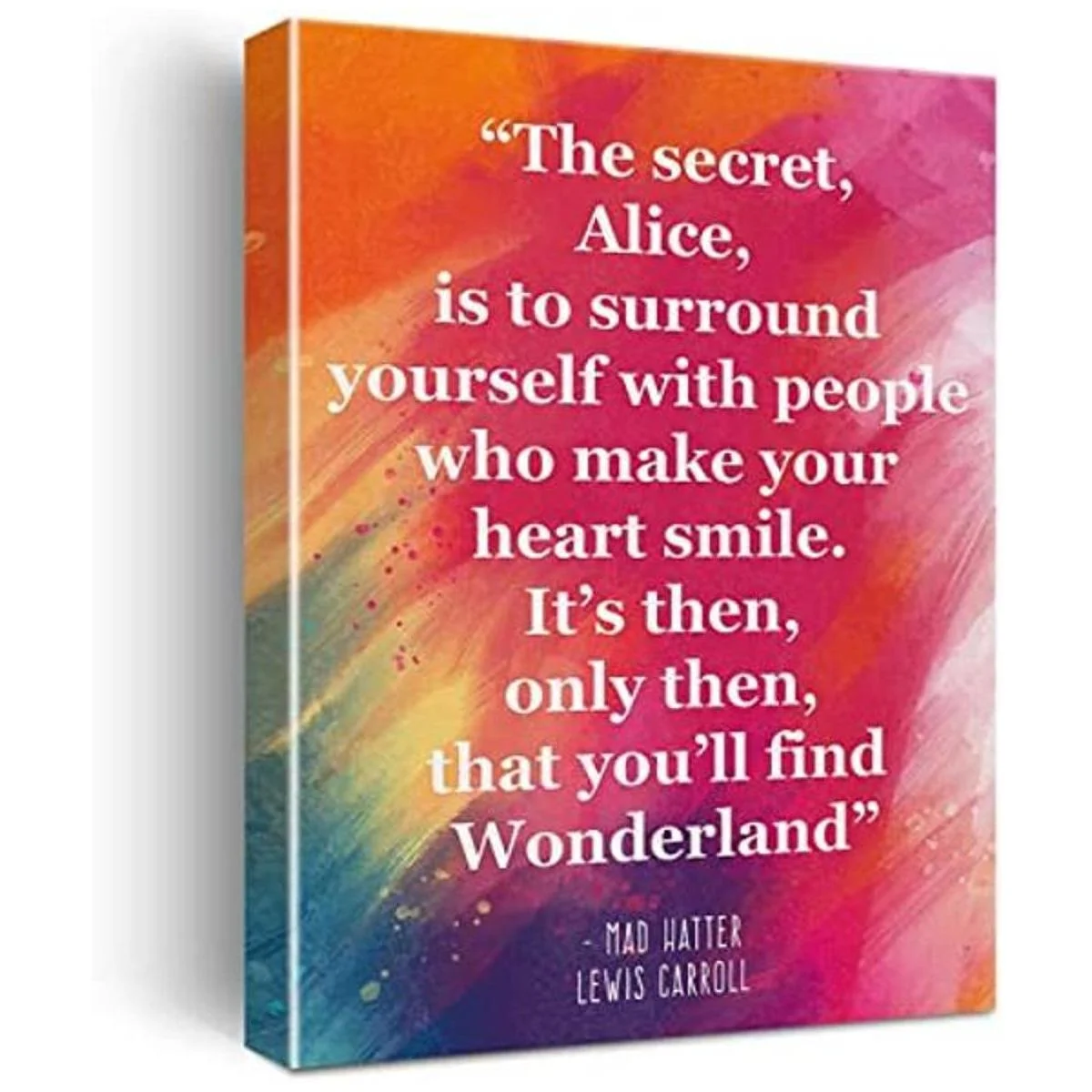 Lienzo decorativo inspirador con cita secreta de Alicia en el país de las maravillas, impresión en lienzo para decoración de pared del hogar, libro enmarcado con cita de libro 12 x 15 pulgadas