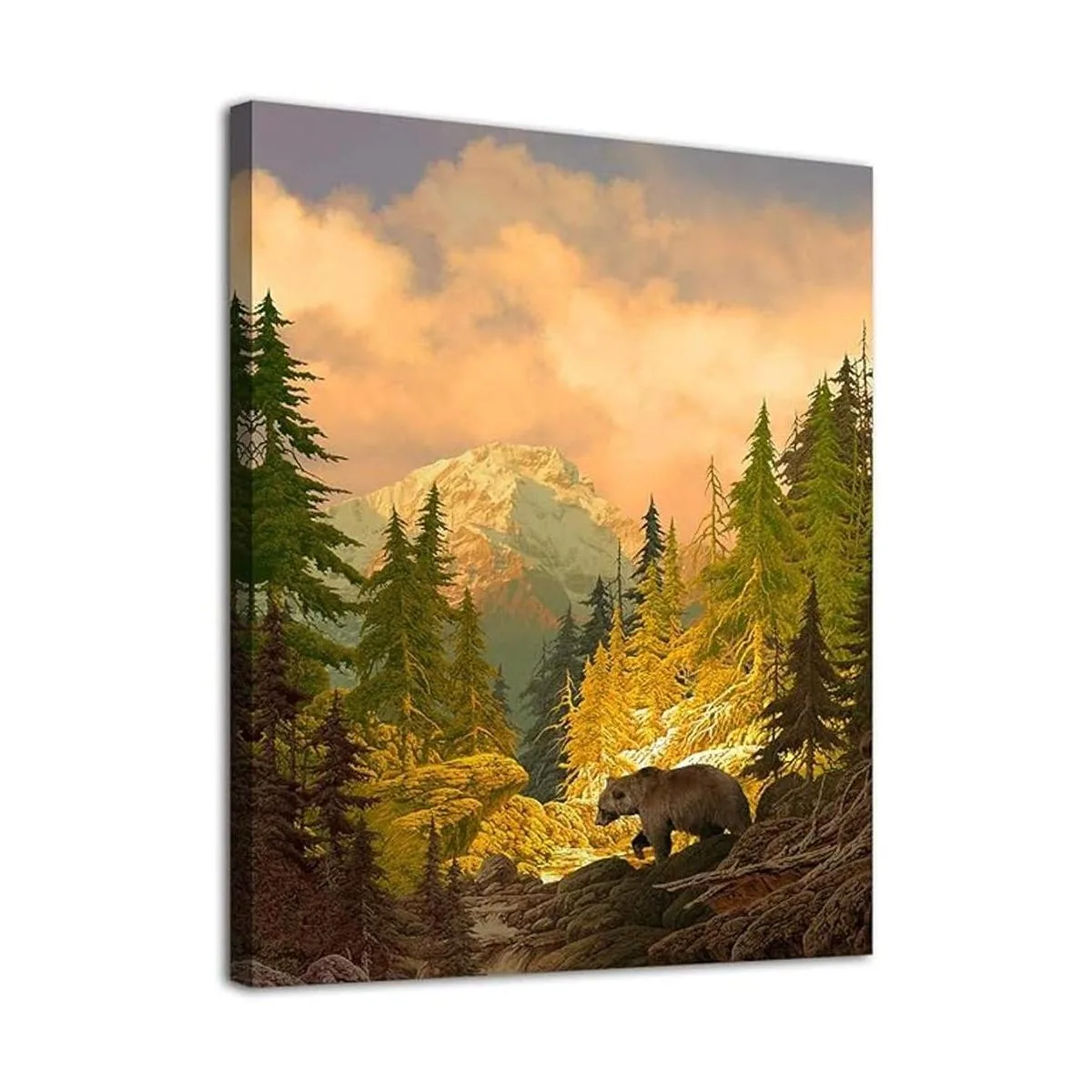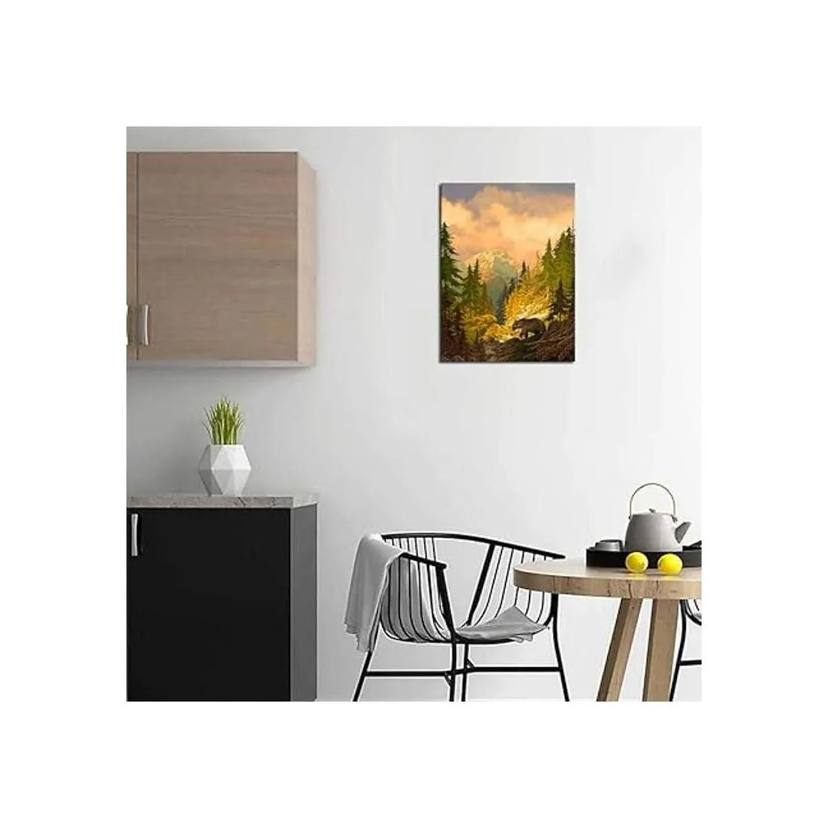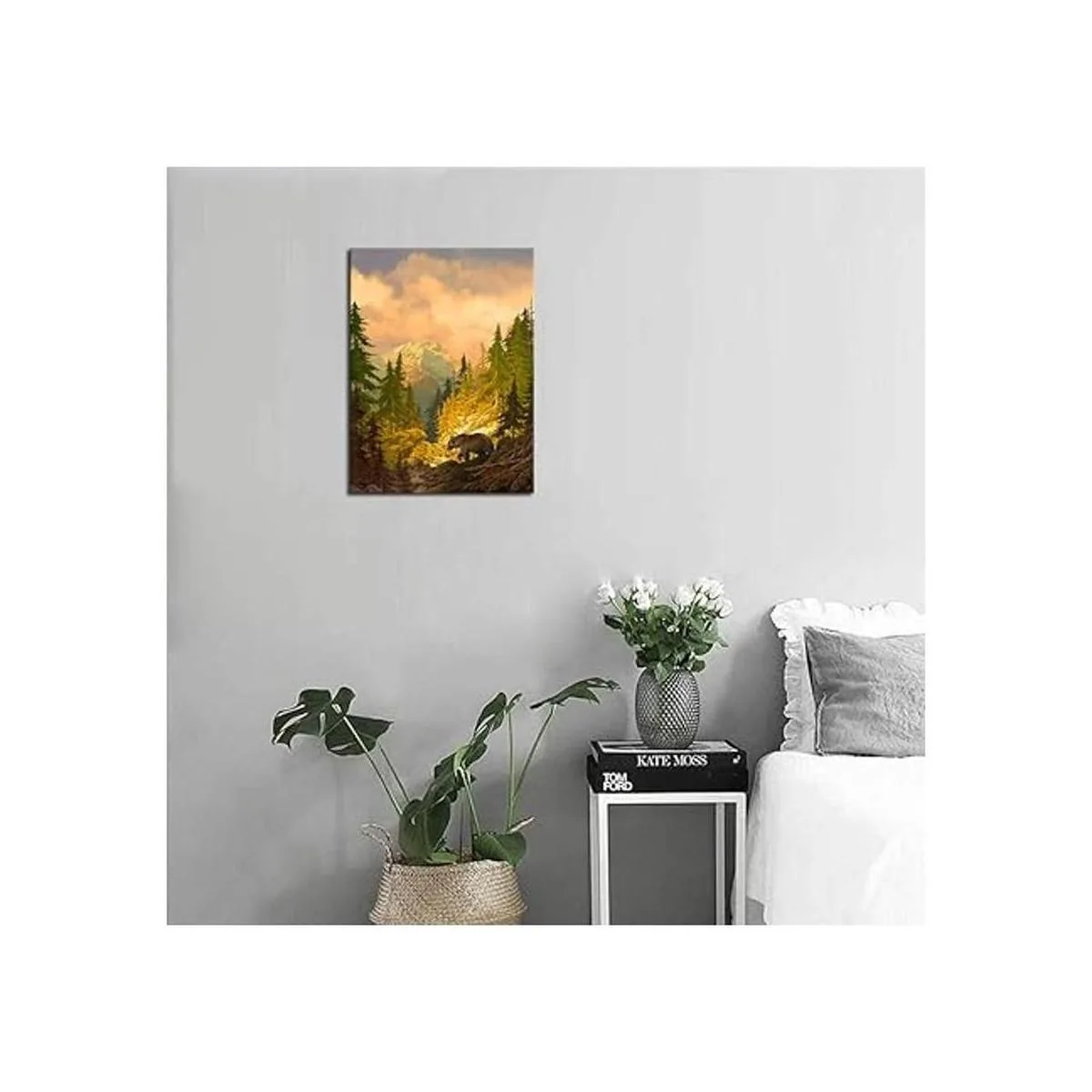 Lienzo decorativo para pared, oso pardo para dormitorio, sala de estar, bosque de montañas rocosas, lienzo moderno, impresiones contemporáneas para decoración de pared de oficina, enmarcado, listo para colgar, 12 x 16 pulgadas