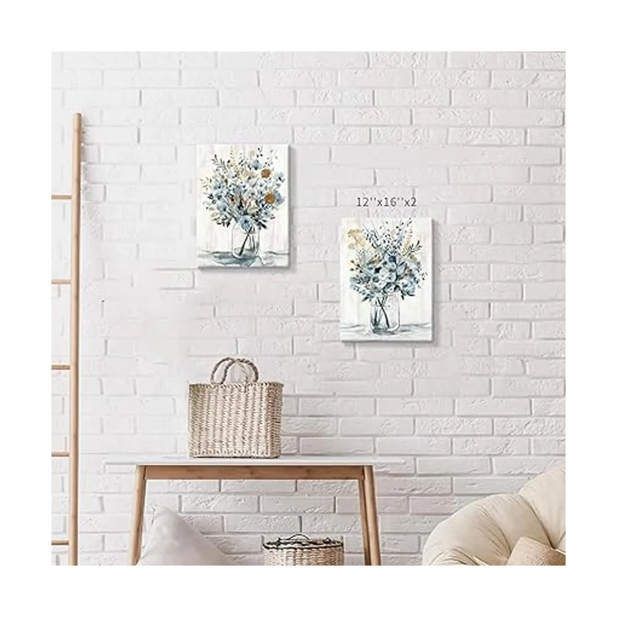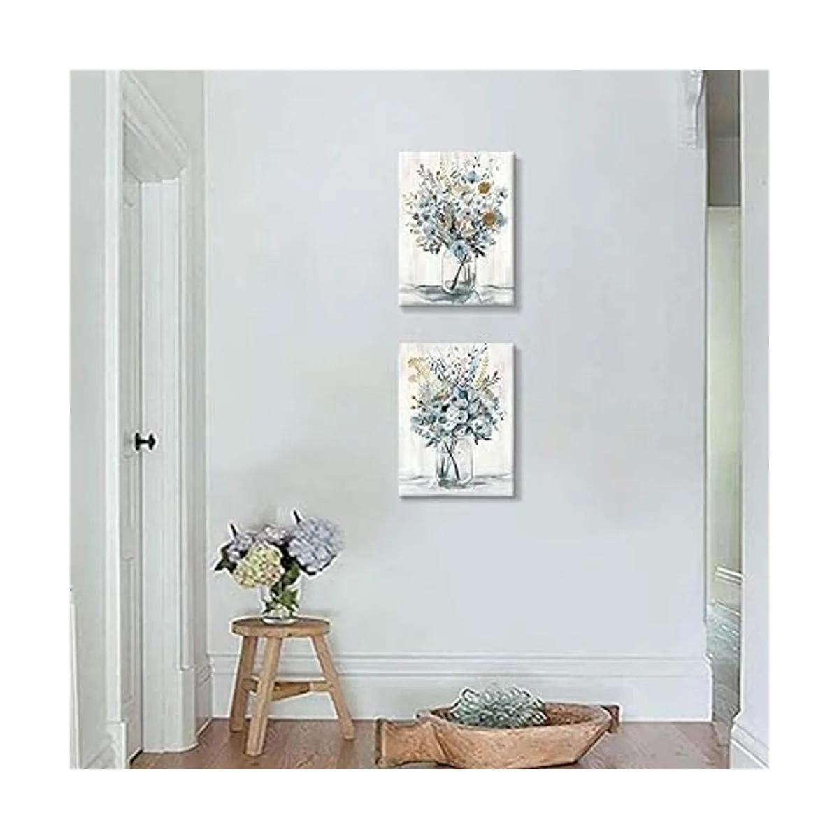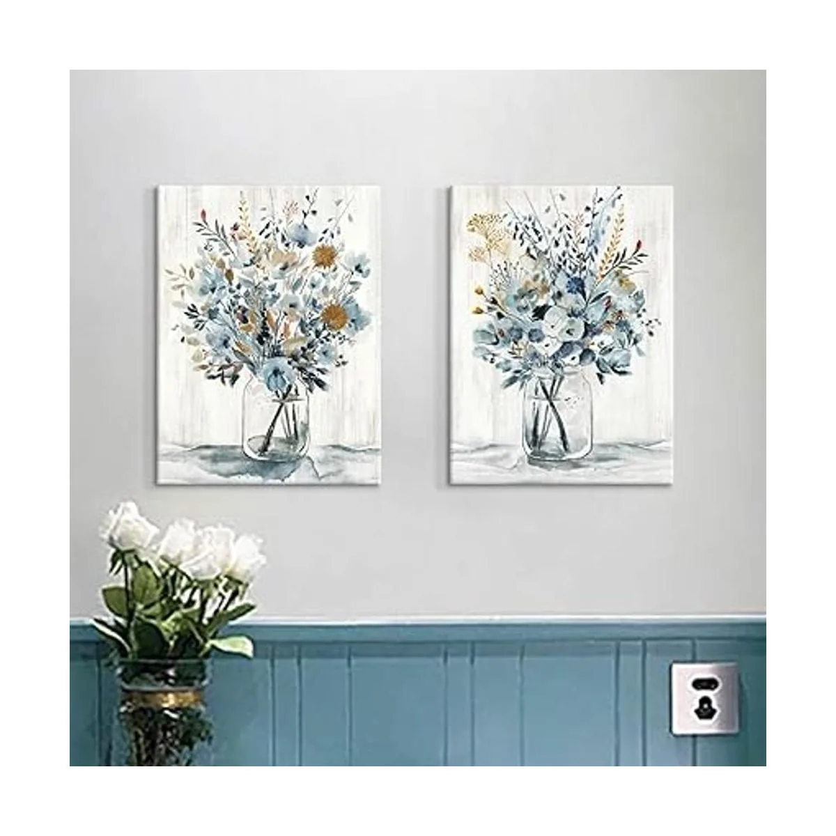 Arte de pared con impresiones florales abstractas: ramo de flores de dos paneles en pintura de jarrón, este juego de arte de pared en lienzo floral es clásico y decorativo para colgar juntos o individualmente en tu pared. Llévalo a casa y aporta un toque de naturaleza a tu espacio varios tamaños disponibles