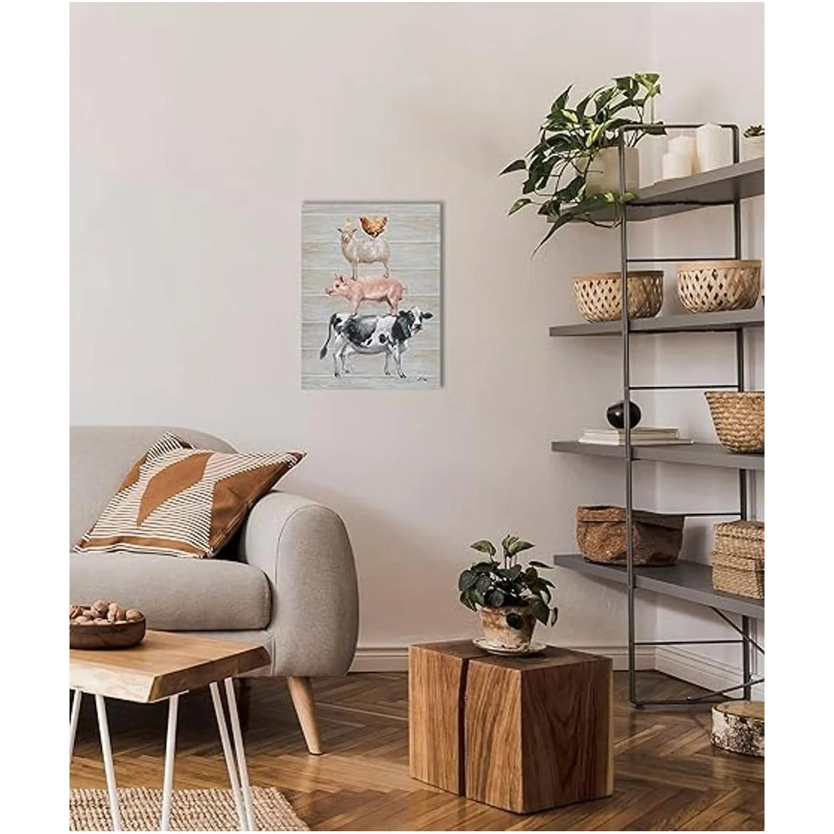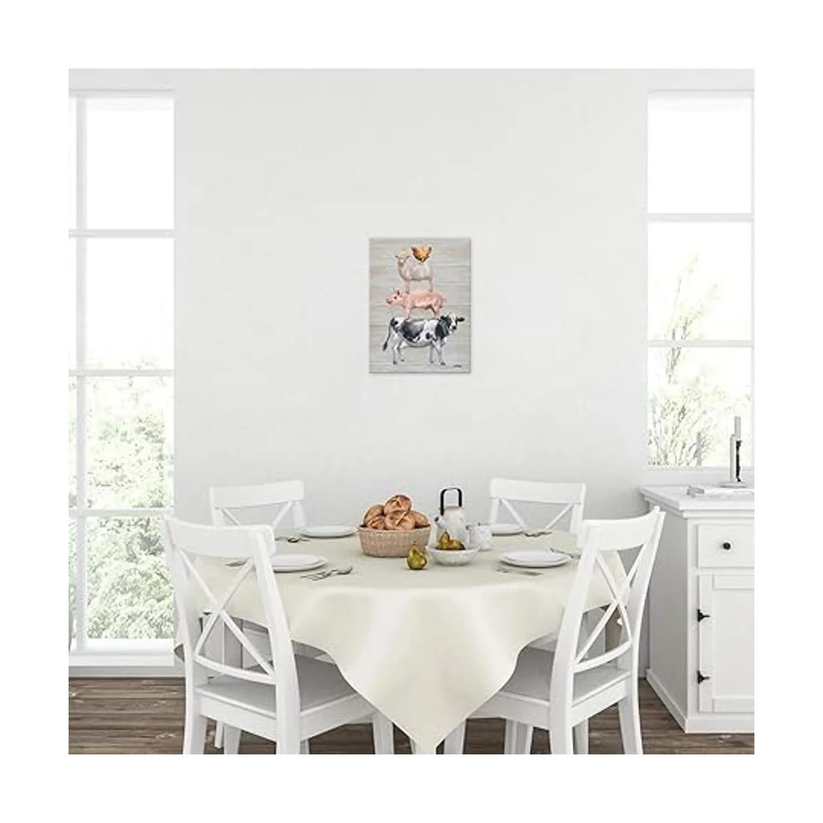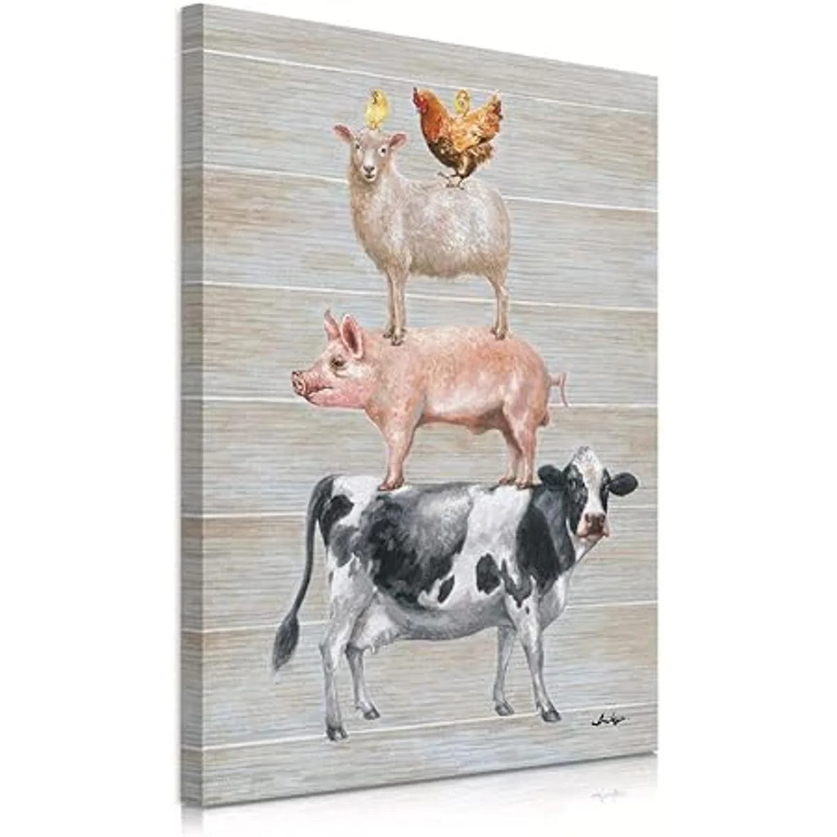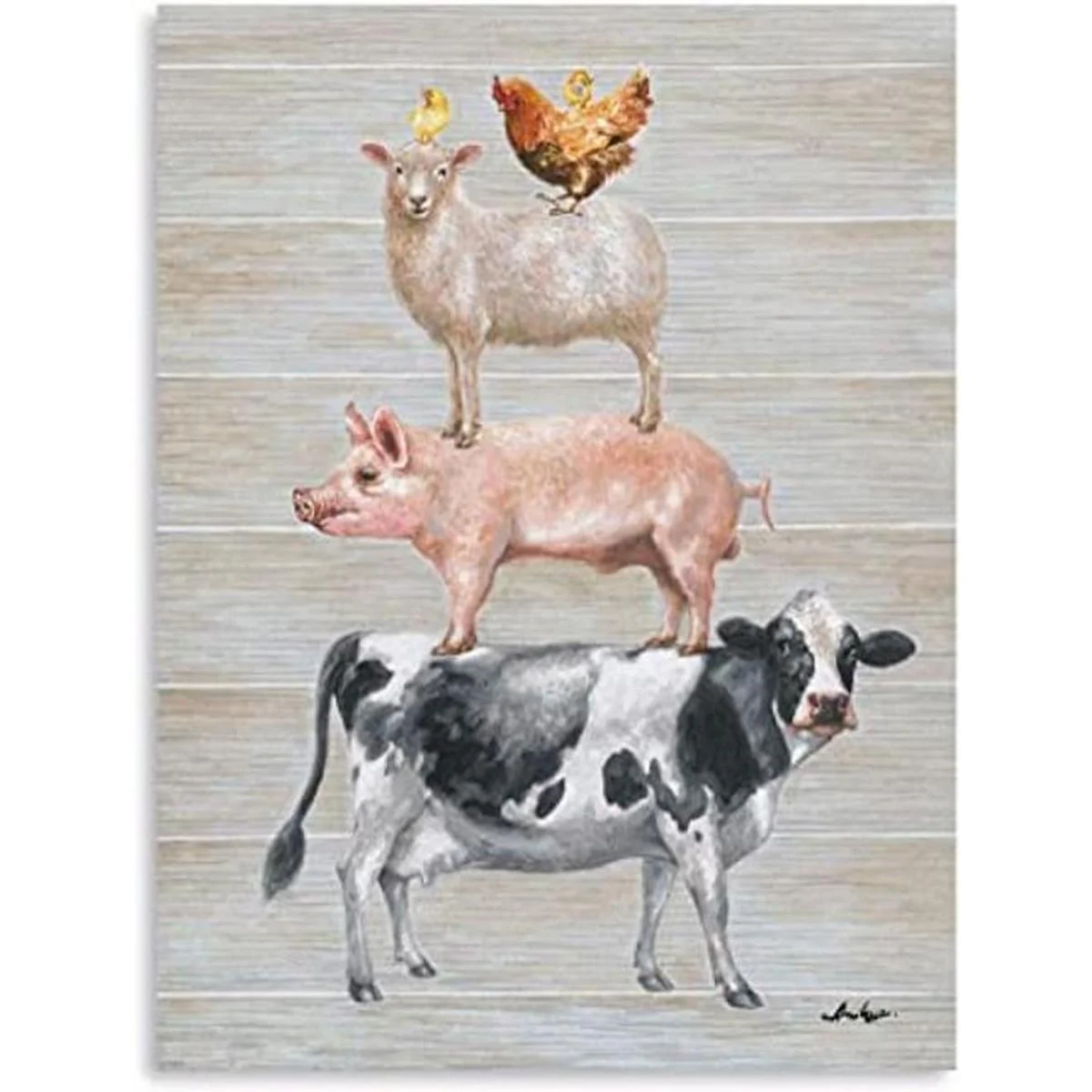 Lienzo decorativo de pared de granja: animales de granja, vaca, cerdo, ovejas y gallo se sientan uno encima del otro, carteles inspiradores para cocina, enmarcados listos para colgar panel de 12 x 16 x 1