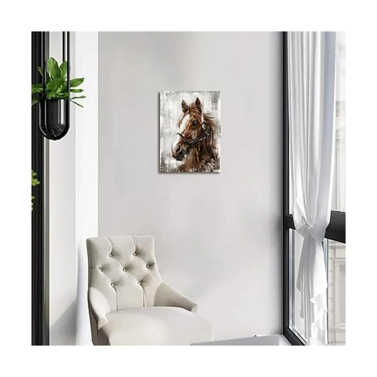 Fácil de colgar: cada lienzo de caballo ya enmarcado en marco de madera de primera calidad y listo para colgar, envuelto en galería con ganchos y accesorios de uñas.