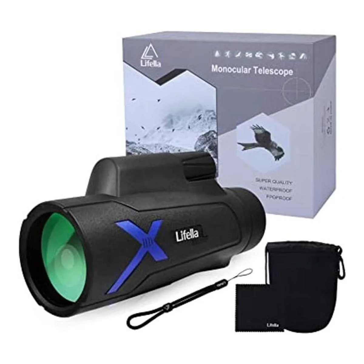 Lifella Telescopio monocular de alta definición de 12 x 50 pulgadas, alcance monocular de alta potencia BAK4 Prism FMC, visión nocturna, para la vida silvestre, observación de aves, caza, escalada y senderismo