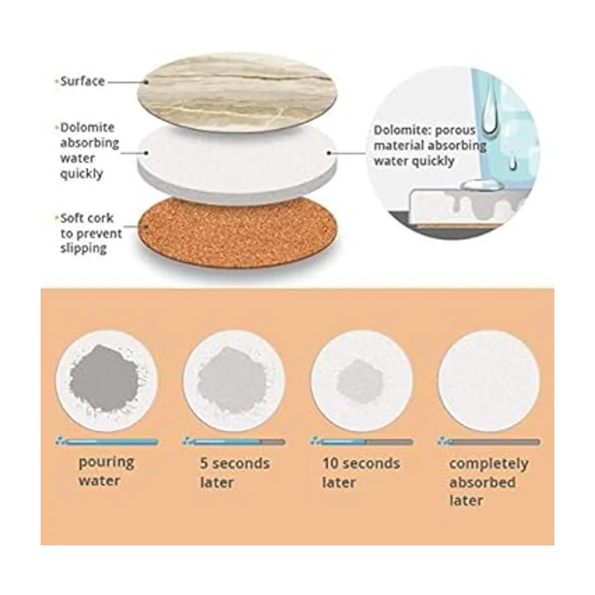 Posavasos funcionales: son súper absorbentes de agua, la parte trasera de corcho puede evitar arañazos en tus muebles y evitar que los posavasos se caigan de la mesa.