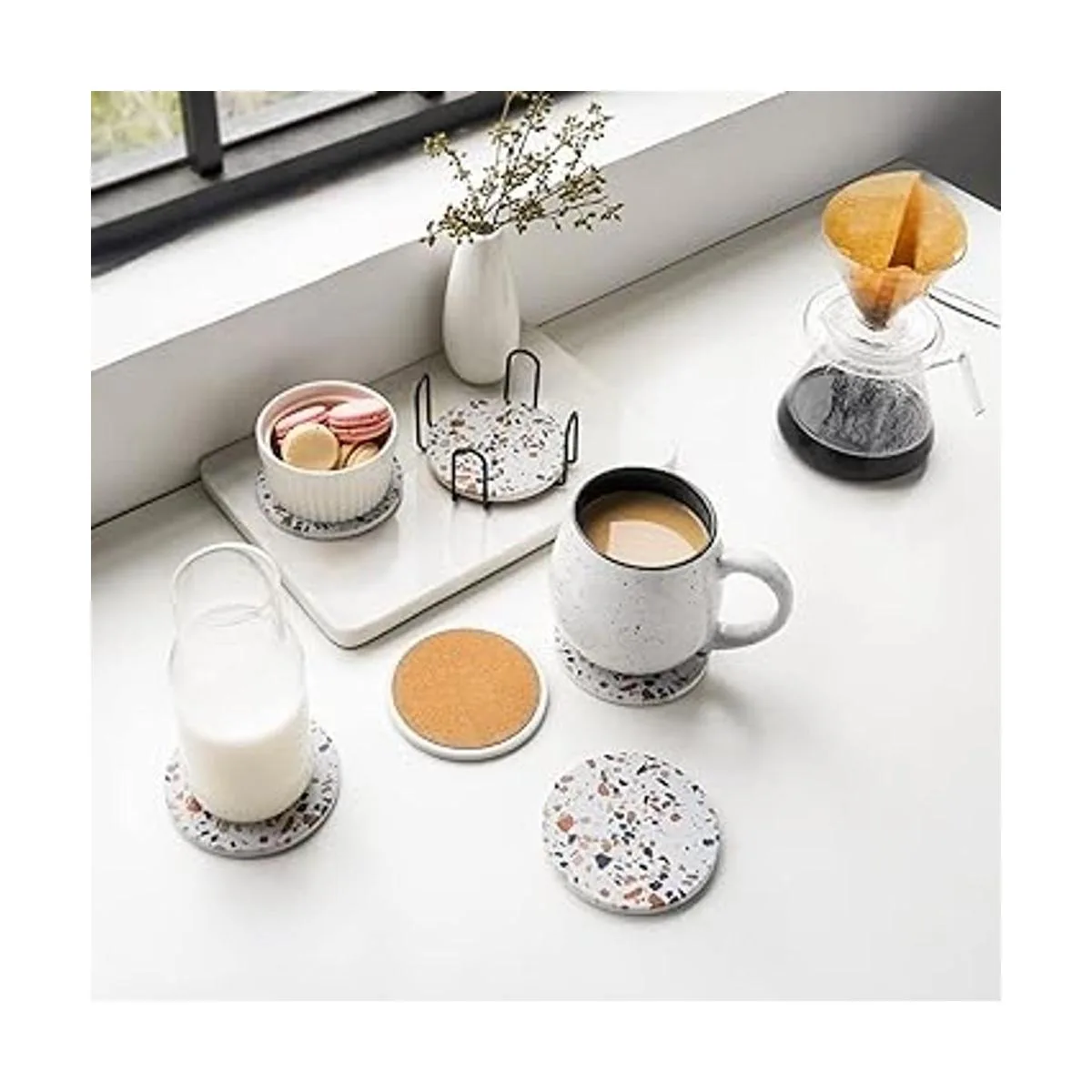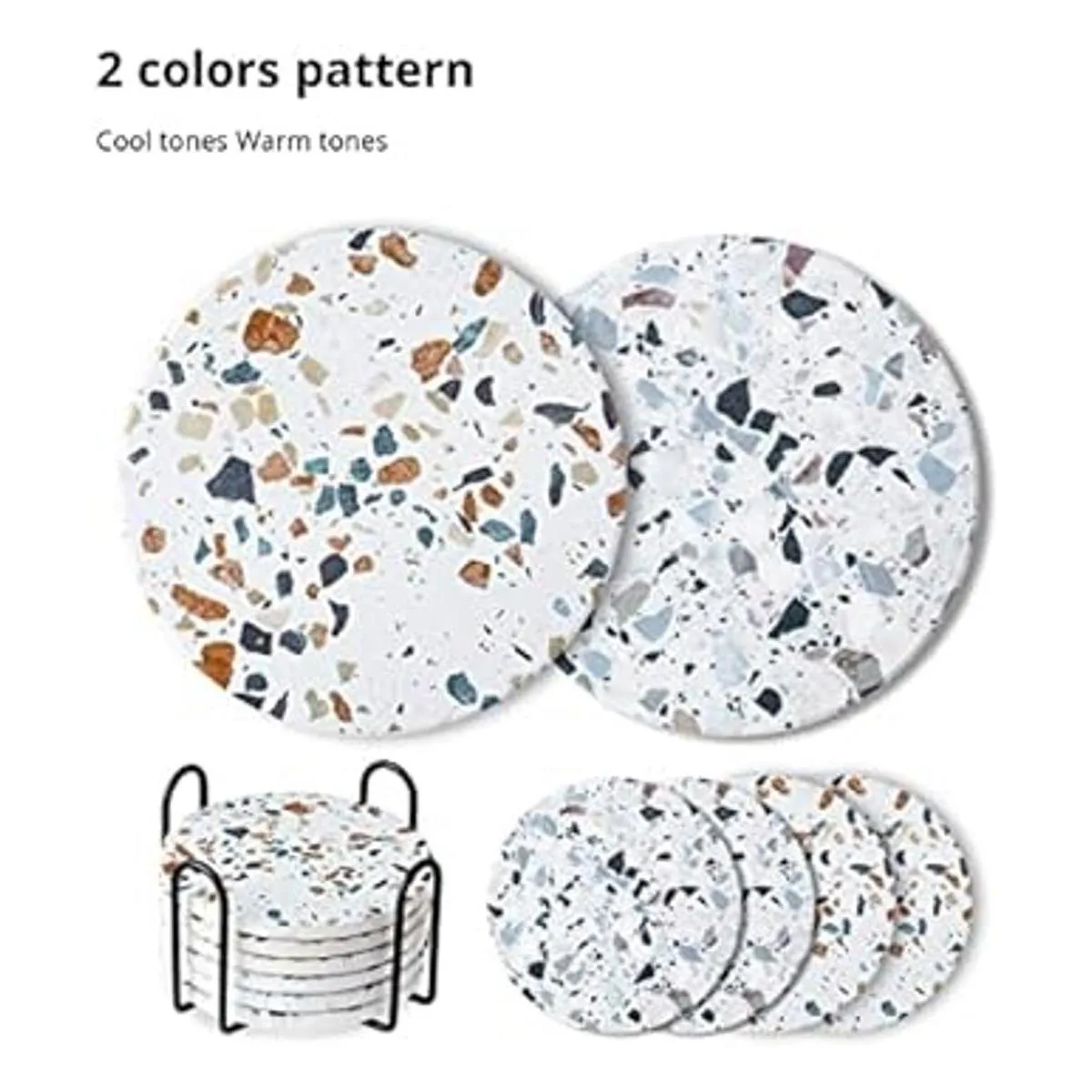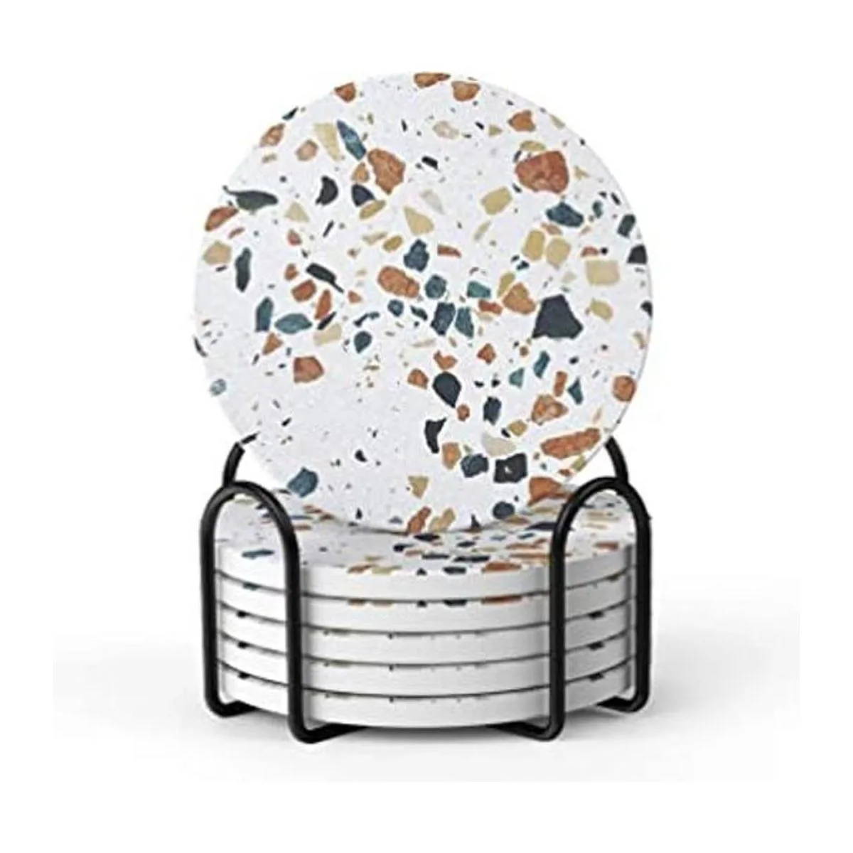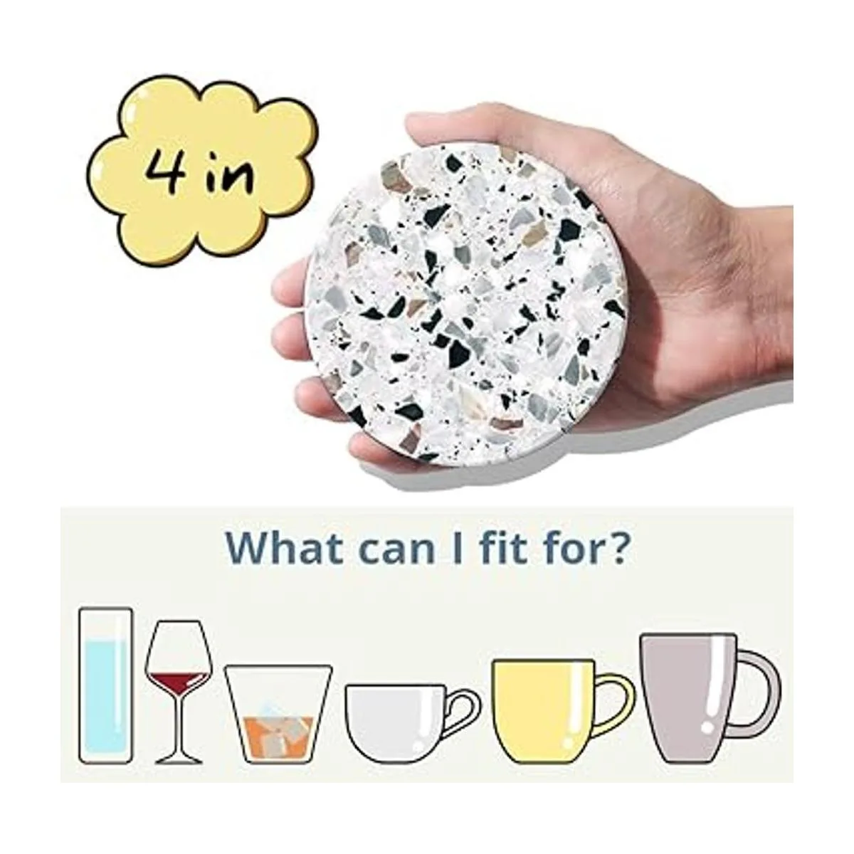 LIFVER Posavasos para bebidas, posavasos absorbentes con soporte, juego de 6, evita que los muebles se rayen y se ensucien, regalo de inauguración para la decoración del hogar, 4 pulgadas Terrazzo