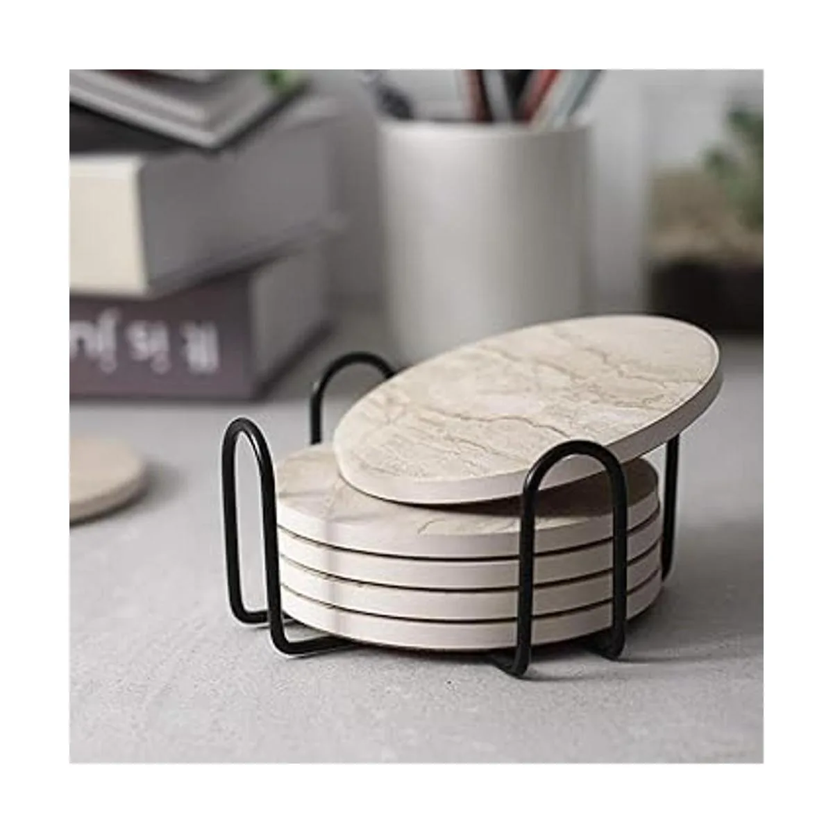 Fuerte absorción de agua: estos posavasos están hechos de cerámica y tienen un tacto elegante pero absorbente. La superficie de los posavasos absorbe las manchas de café rápidamente en 510 segundos para mantener el escritorio limpio