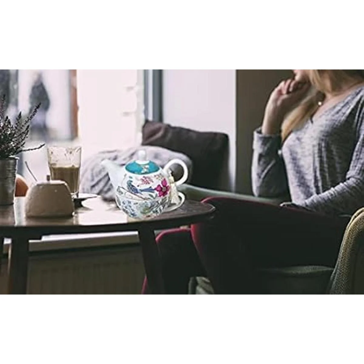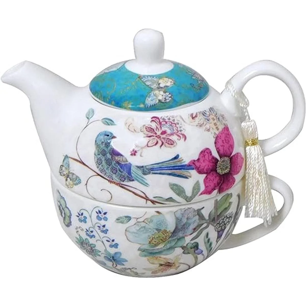 Hecho de porcelana nueva significa peso ligero y translucencia con resistencia y sensación de lujo suave. Capacidad: tetera de 17 onzas, taza de té de 11 onzas