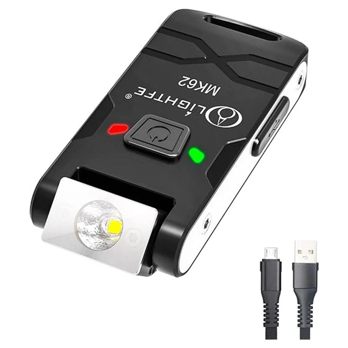 LIGHTFE Linterna recargable, rotación de 180 de cabeza de luz flash, 7 modos de luz con indicador de batería, mini llavero linterna LED