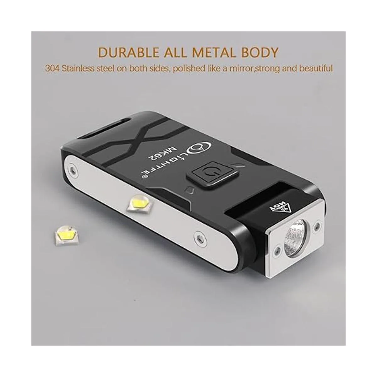 Rotación de 180 del cabezal de la linterna La cabeza de la linterna MK62 se puede girar libremente 180 grados, y la dirección de irradiación del haz se puede girar libremente entre 0 grados y 180 grados, lo que es conveniente para ajustar la dirección de la luz que necesitas. La linterna gira de forma flexible para iluminar, diciendo adiós al punto ciego de la iluminación. En la vida, girando el faro delantero MK62, se puede utilizar como una luz de emergencia o lámpara de escritorio. En el trabajo, el clip de tapa está diseñado para usar, liberando las manos. Durante la inspección y mantenimiento de aparatos eléctricos, el ángulo de luz se puede ajustar en cualquier momento a través del cabezal de la lámpara, sin la tediosa conexión y desconexión del clip de la tapa.