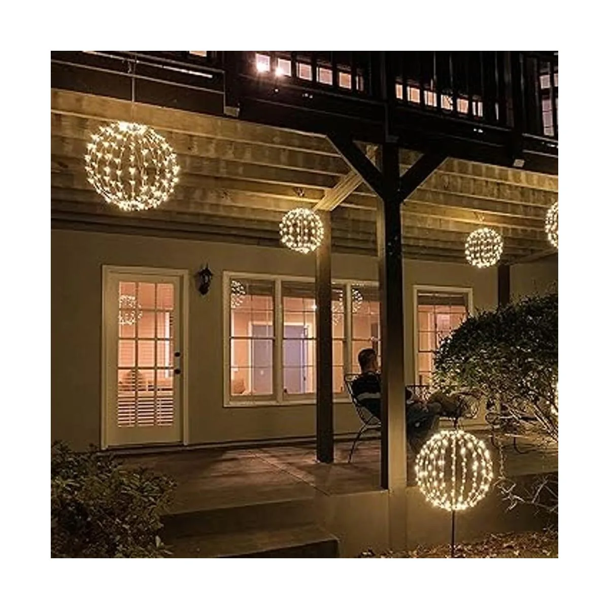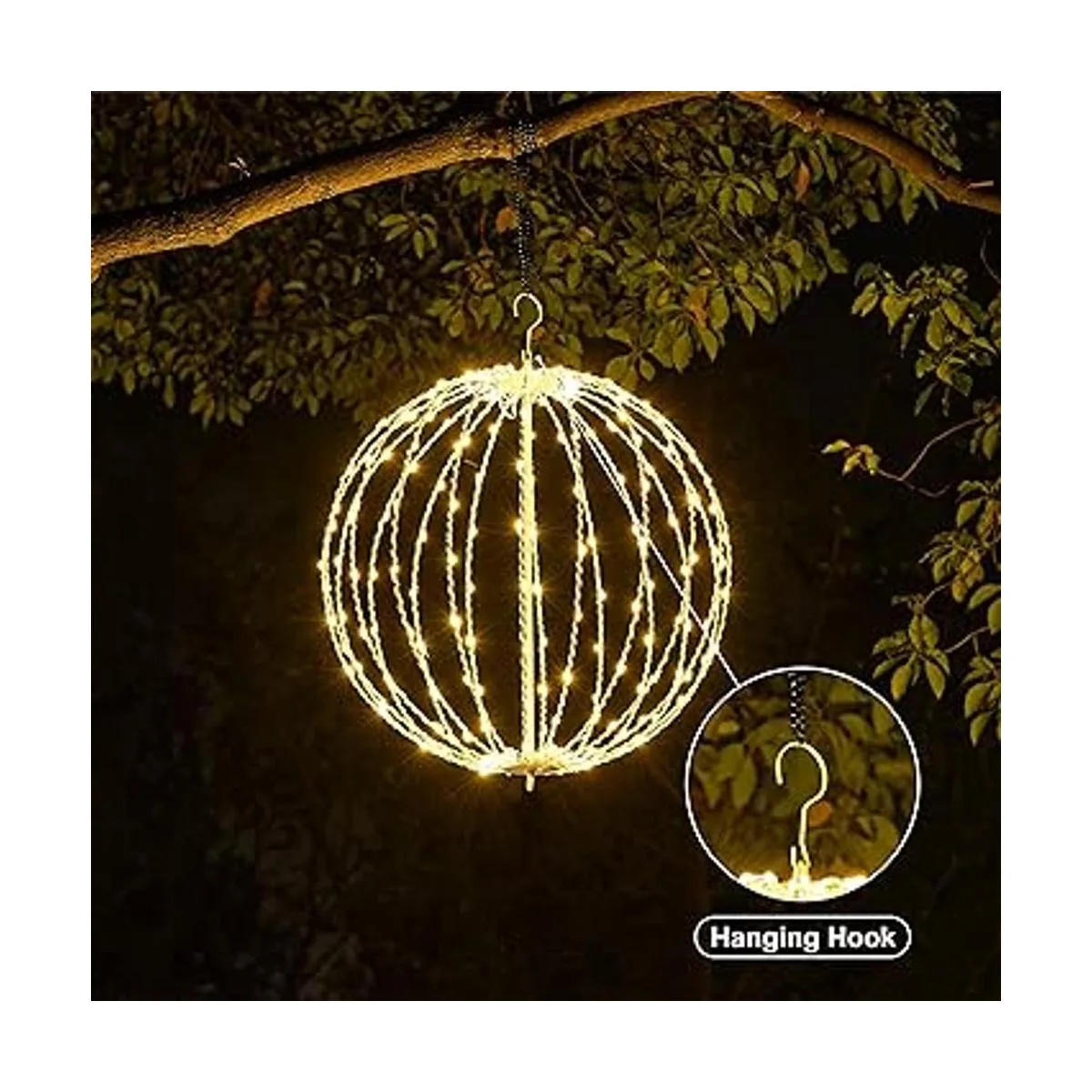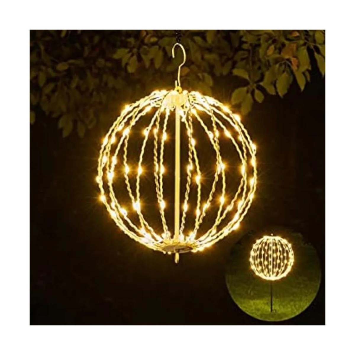 Lightshare 16 pulgadas 128 luces LED para decoración de patio, luces de esfera, con marco de metal plano plegable, para interiores y exteriores, impermeables, luces de jardín