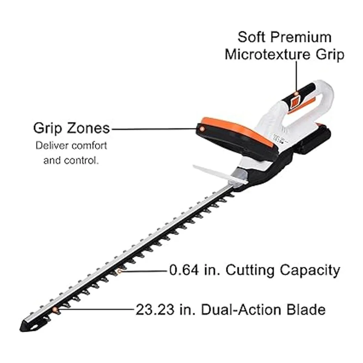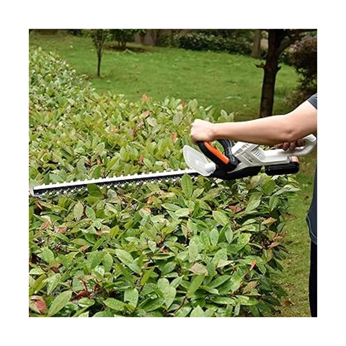 Excelente rendimiento de corte y funcionamiento: como herramienta de jardín inalámbrica, la recortadora de setos LIGO construida con batería de iones de litio de 2.0 Ah, proporciona un 25 más de tiempo de funcionamiento en una sola carga, por lo que es más fácil recortar hasta 2.000 pies cuadrados. pies de jardín. Las cuchillas de 21 pulgadas hacen que sea más eficiente y conveniente para jardines paisajísticos. Después de la prueba, la capacidad de 0.5 in es más ideal y práctica para cortar detalles y dar forma.