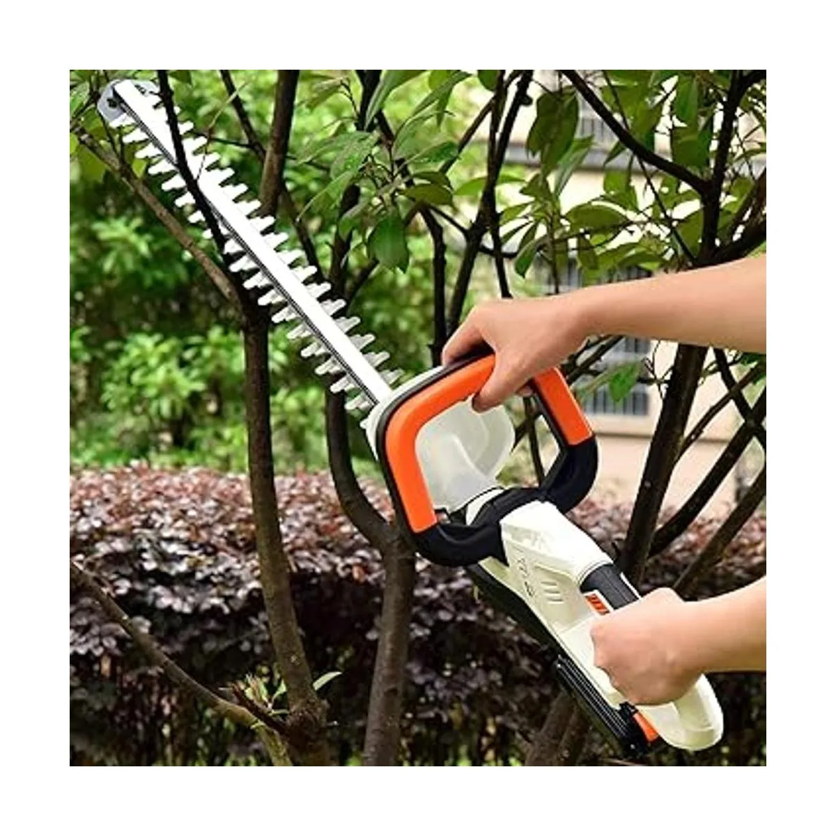 Interruptores duales y doble seguridad: el interruptor doble está diseñado para doble confirmación antes de iniciar la recortadora de setos, lo que te hace centrarte en la herramienta eléctrica con tu mente, mientras que la herramienta está bajo control con ambas manos.