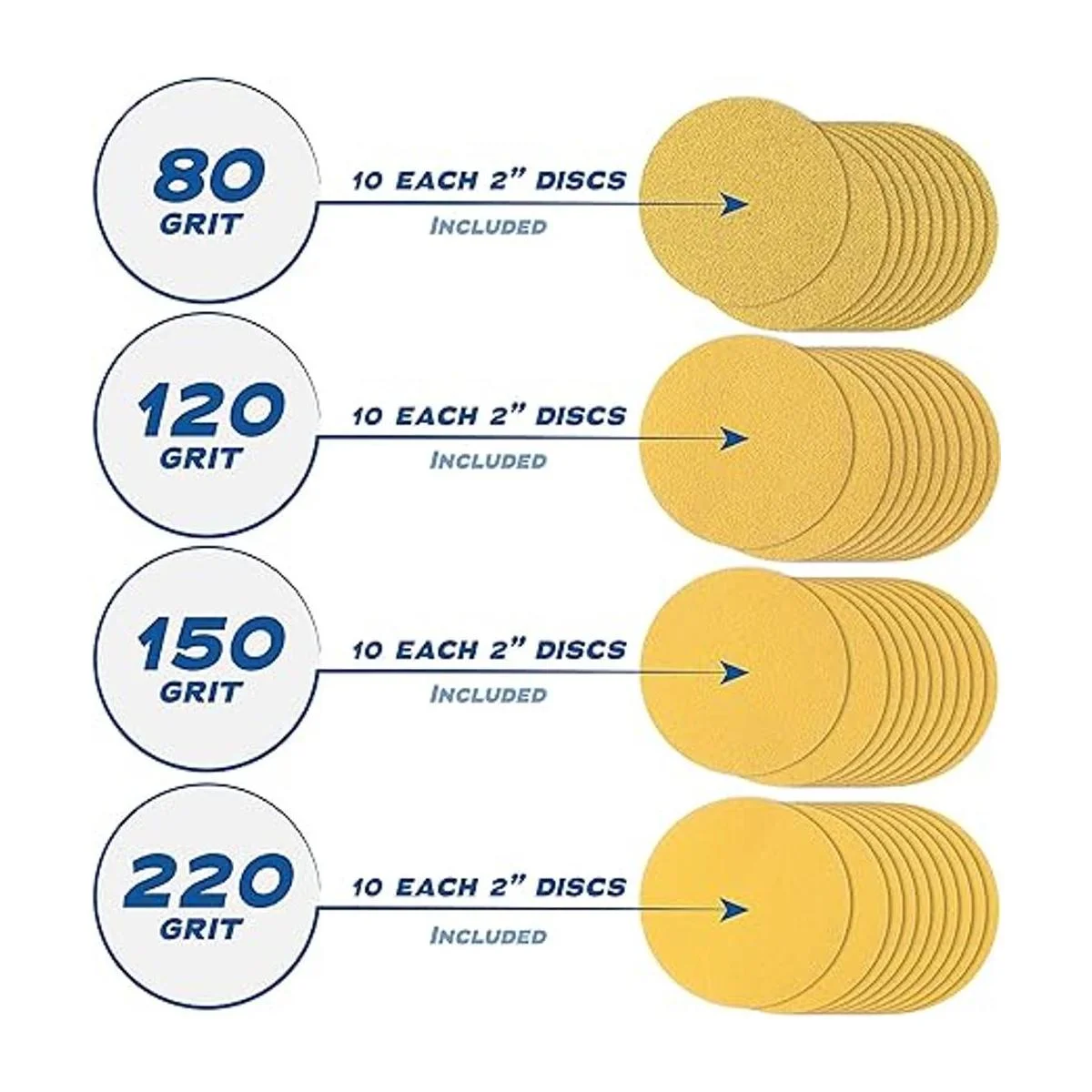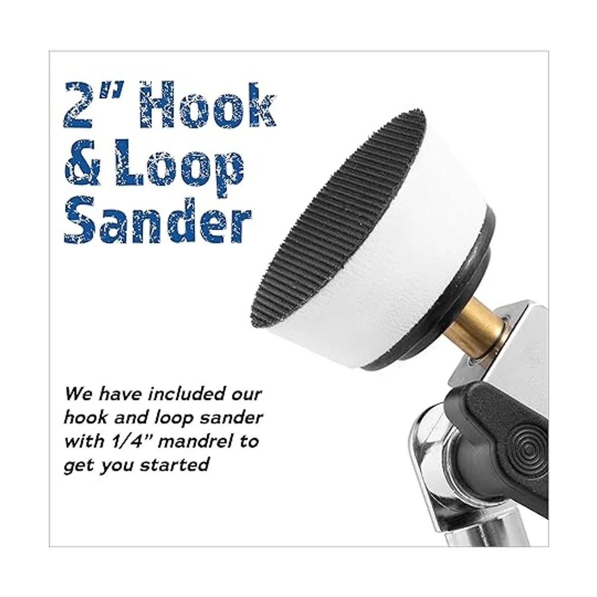 Hemos incluido el cabezal de lijado de diámetro más común con la lijadora de cuenco. Este cabezal de lijadora está hecho de un material de espuma que proporciona suficiente para proporcionarte resultados de aspecto maravilloso cada vez que lijas tus proyectos. Este tamaño de cabeza de 2 pulgadas funciona bien en la mayoría de proyectos de giro de cuencos, ya que puede funcionar con piezas de trabajo más grandes o pequeñas. También incluye 10 unidades. Grano 80, 10 unidades. Grano 120, 10 unidades. Grano 150 y 10 unidades. Discos de lijado de gancho y bucle de grano 220.