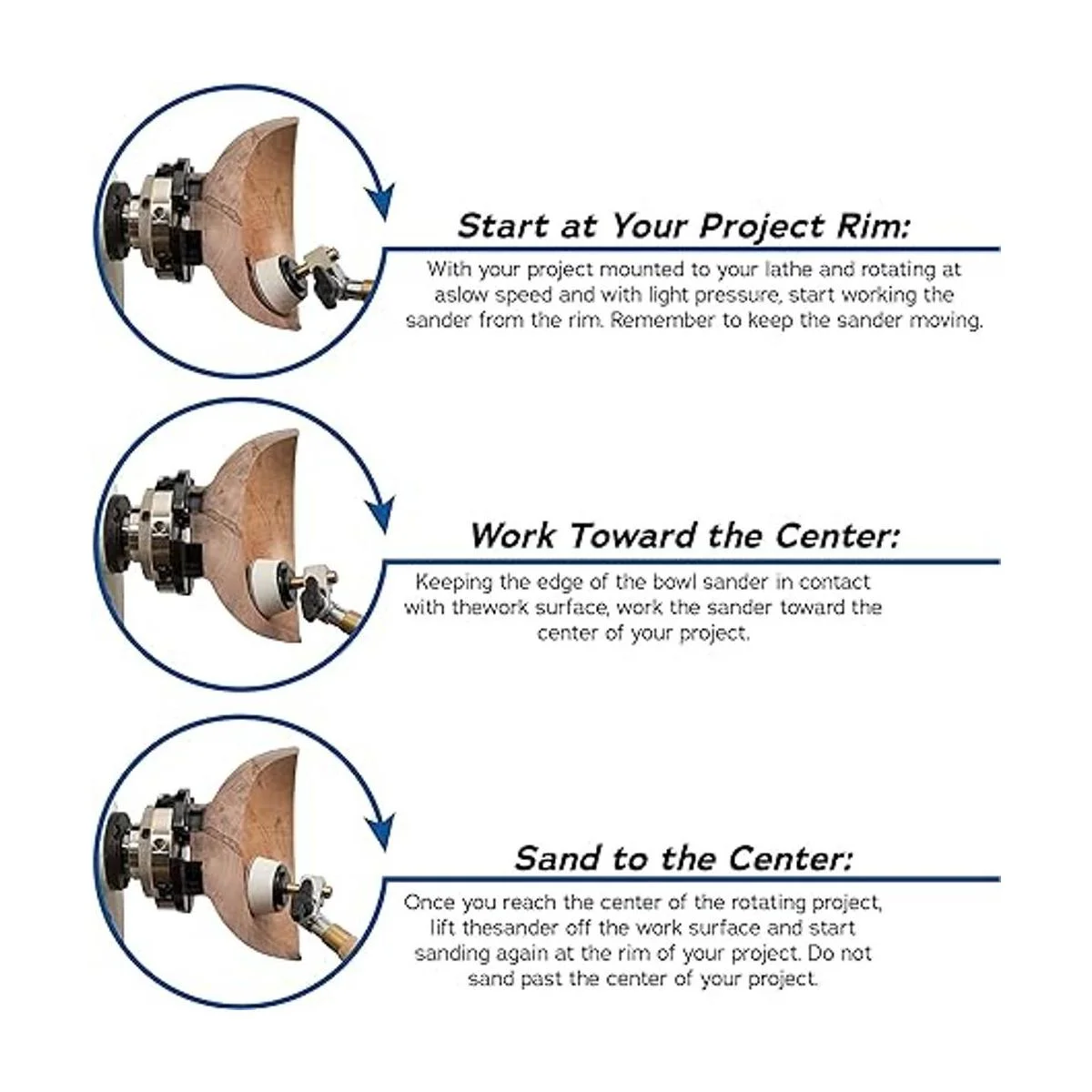 Cuando necesites terminar de lijar el interior de tu cuenco torneado de madera, puede ser un desafío evitar que la madera muestre marcas de rozaduras. Usar un trozo de papel de lija de mano también puede ser algo peligroso. Nuestra lijadora de cuencos soluciona esencialmente este problema al tener un cabezal giratorio suave de doble rodamiento que gira con la rotación del cuenco mientras el cuenco gira en el torno. El mango de 9 pulgadas de largo también ayuda a mantener tus manos fuera de daños.