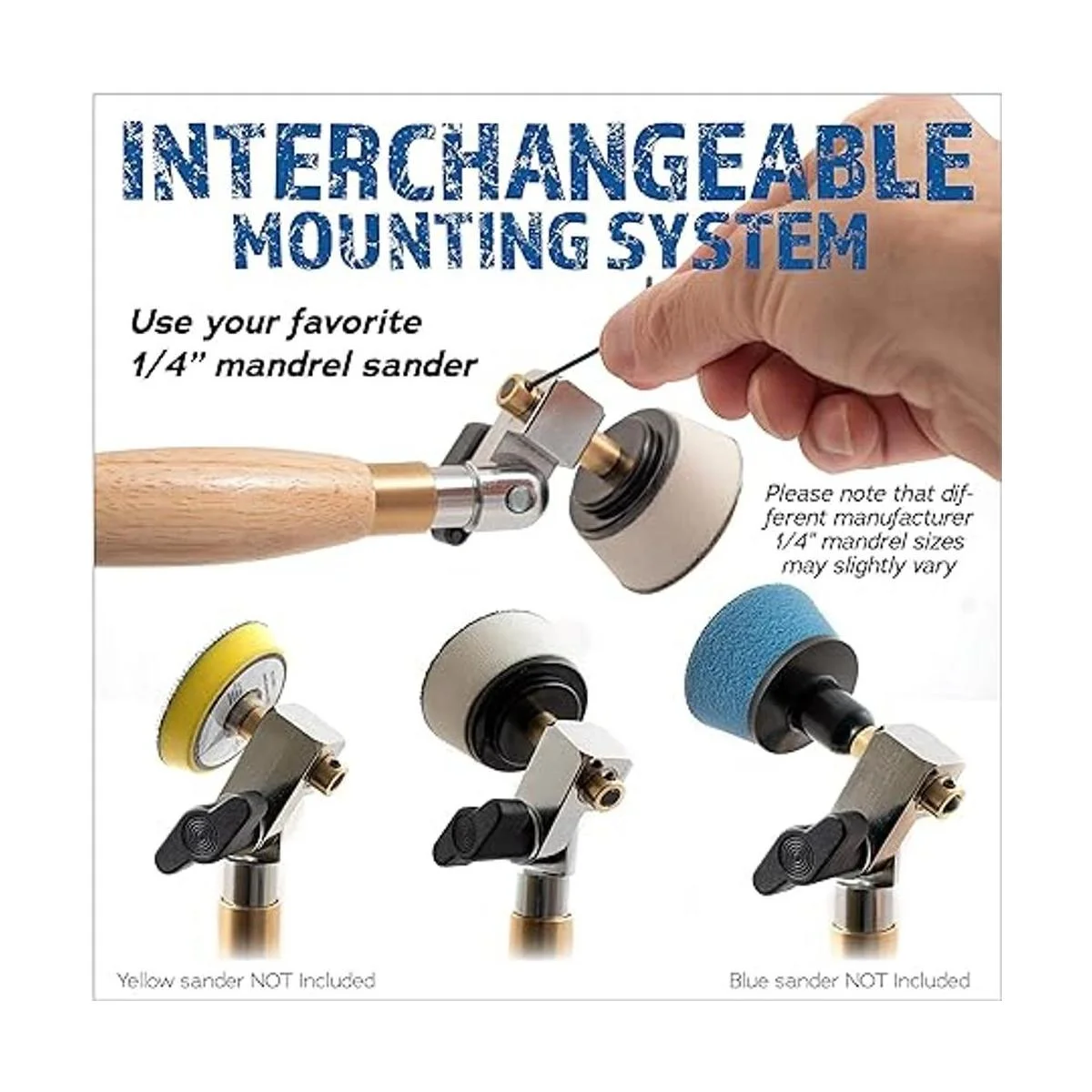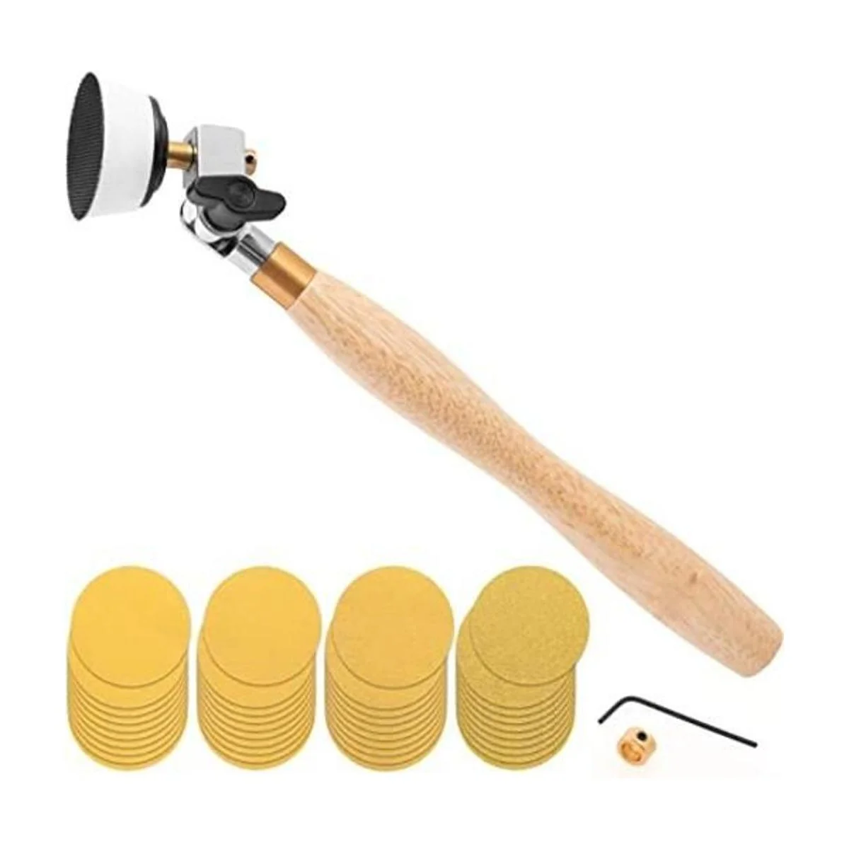Lijadora de cuenco de 2 pulgadas de diámetro con cabezal de doble rodamiento y lijadora de gancho y bucle de espuma de 2 pulgadas con mandril de 14 pulgadas y mango de madera dura de 9 pulgadas de largo
