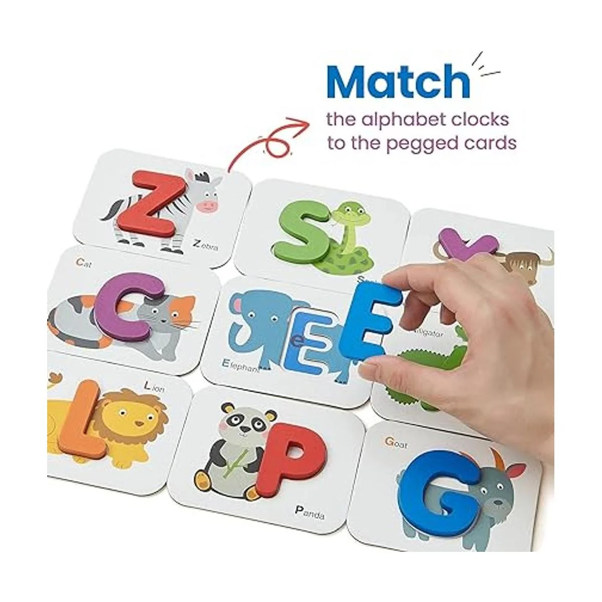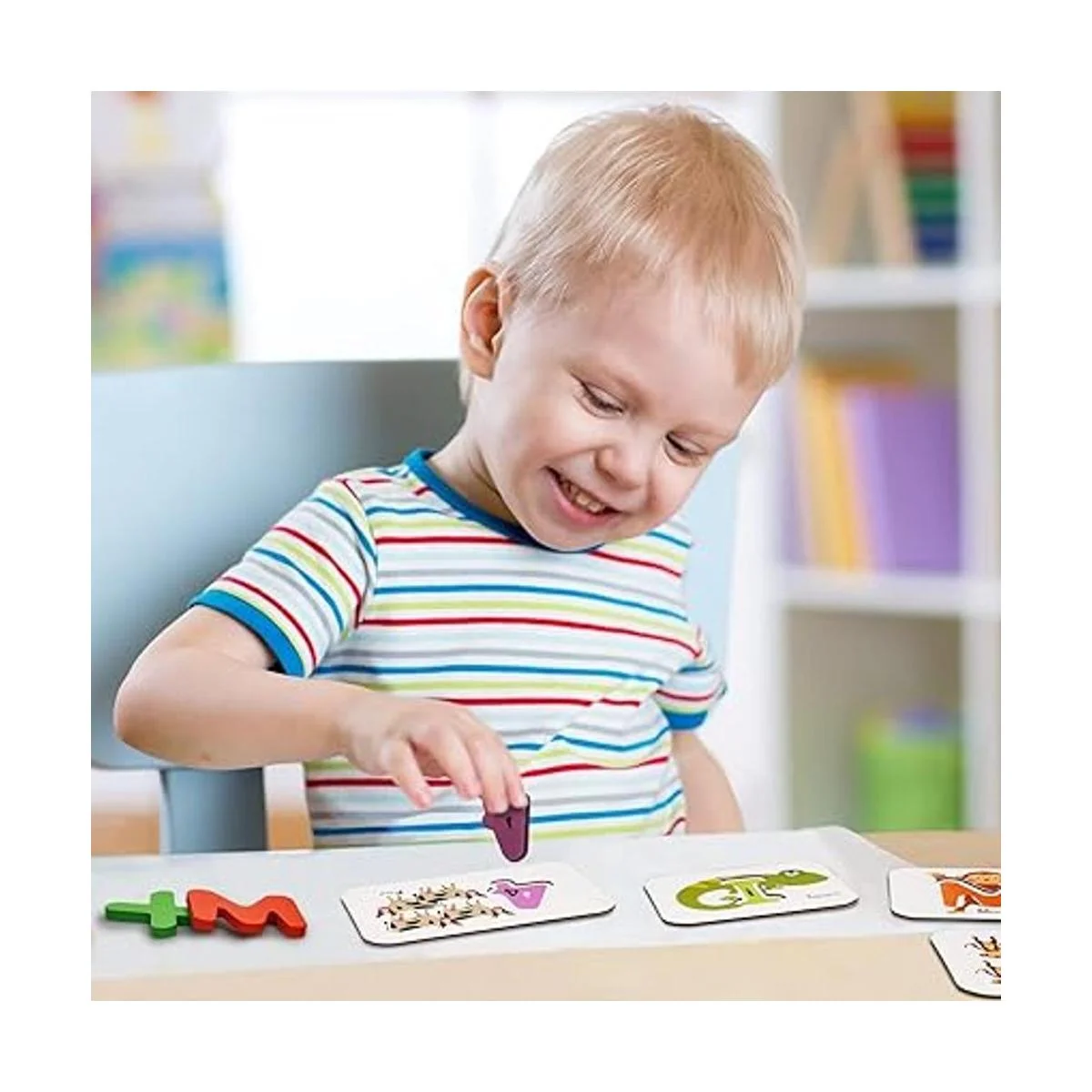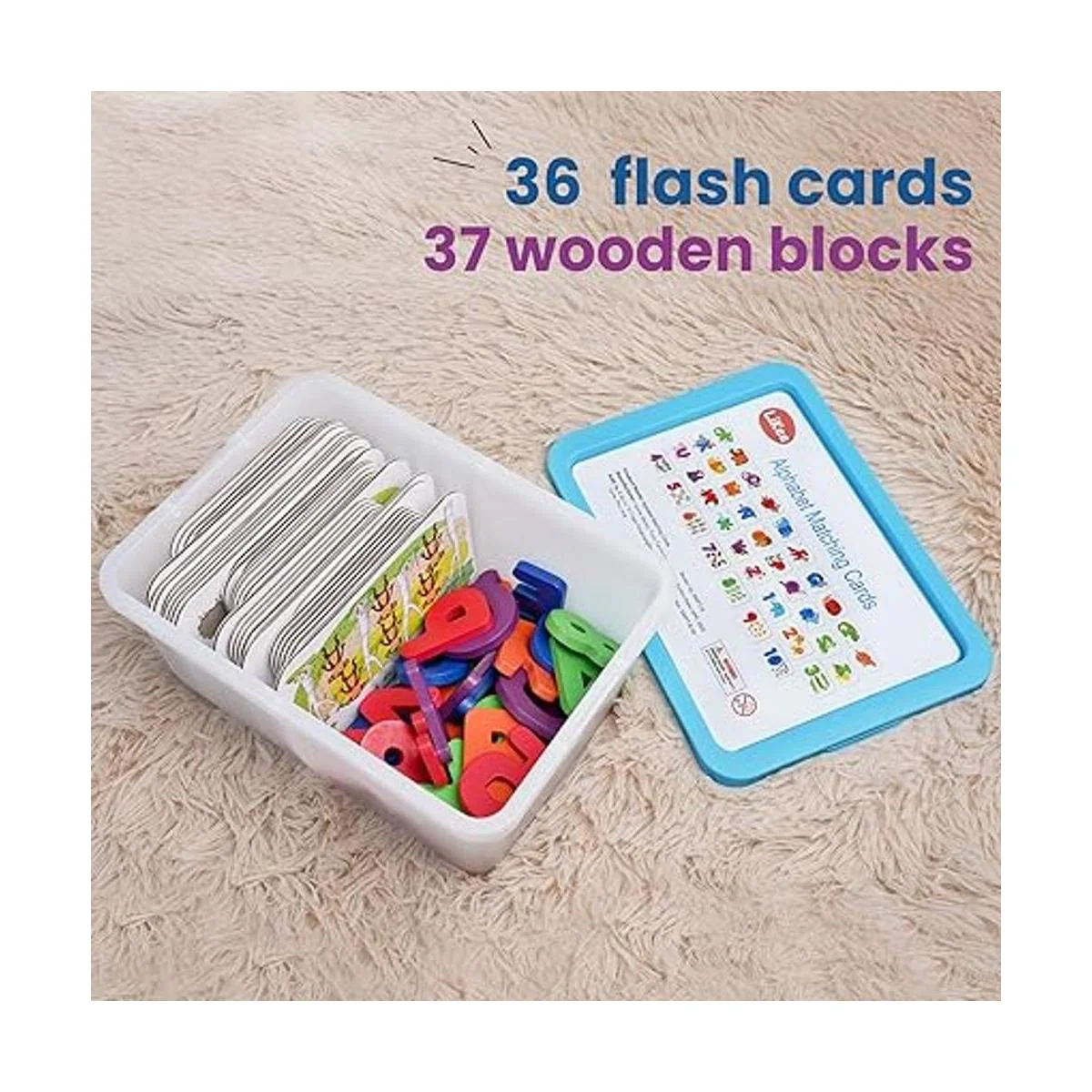 LIKEE Tarjetas flash con números del alfabeto, rompecabezas de letras de madera, palabras de vista ABC, juegos de partido, tabla de conteo de animales, juguetes educativos Montessori para niños y niñas de 3 años 36 tarjetas y 37 bloques
