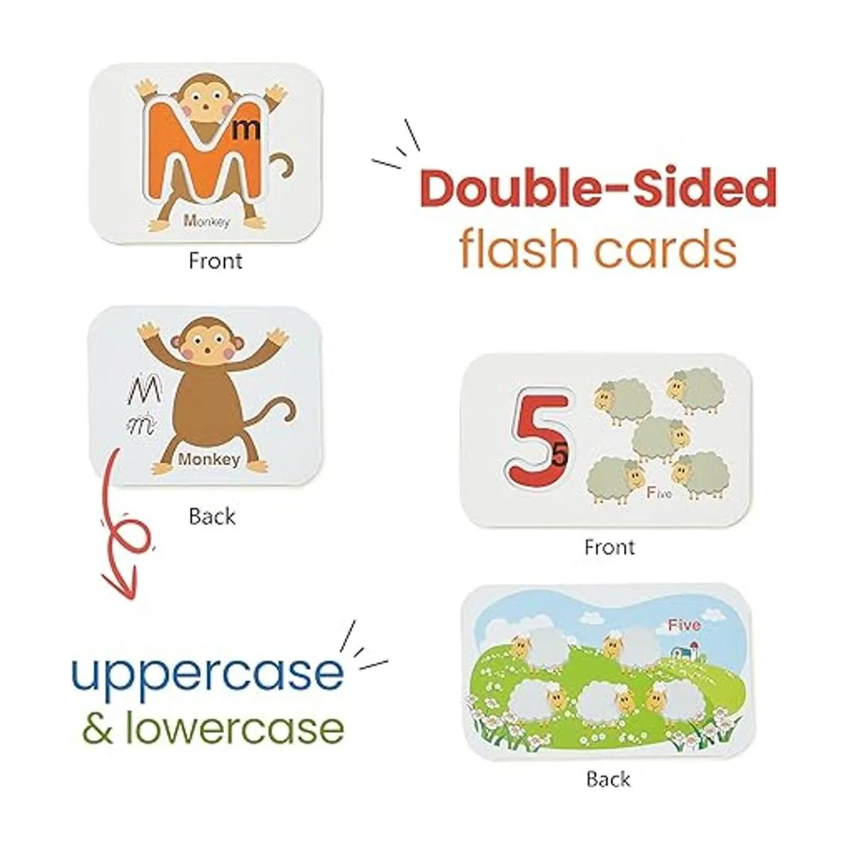 Despierta el interés de los niños con ilustraciones divertidas: Como creó divertidas ilustraciones en cada una de las 26 tarjetas de letras que permiten a los niños asociar objetos y palabras con cada una de las letras del alfabeto, como F es para zorro, y los números 110 tienen las cantidades correspondientes de animales para contar la vista. Mantendrá a tus jóvenes comprometidos durante horas.