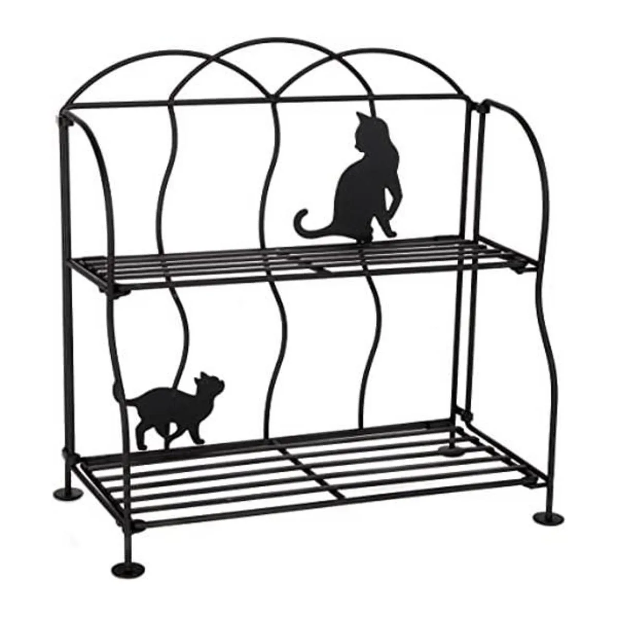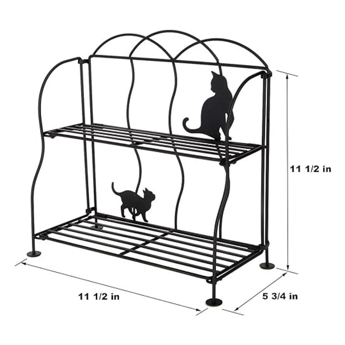 Diseño decorativo de gato de pie: este adorable organizador cuenta con 2 bonitas decoraciones de silueta de gato detrás de los estantes de alambre. El práctico estante de encimera es decorativo y funcional. Es una gran manera de añadir un poco de almacenamiento adicional a áreas pequeñas para que puedas organizar tu hogar en un instante. También es perfecto para cualquier persona que ama los gatos