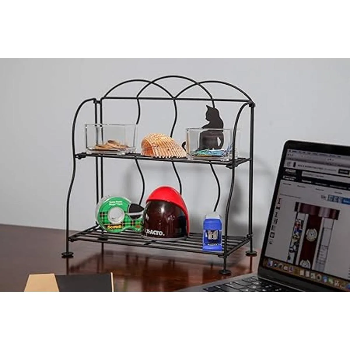 Lily’s Home Estante de alambre para encimera de metal negro, ideal para artículos del hogar, organizador de cocina, almacenamiento de baño y más.