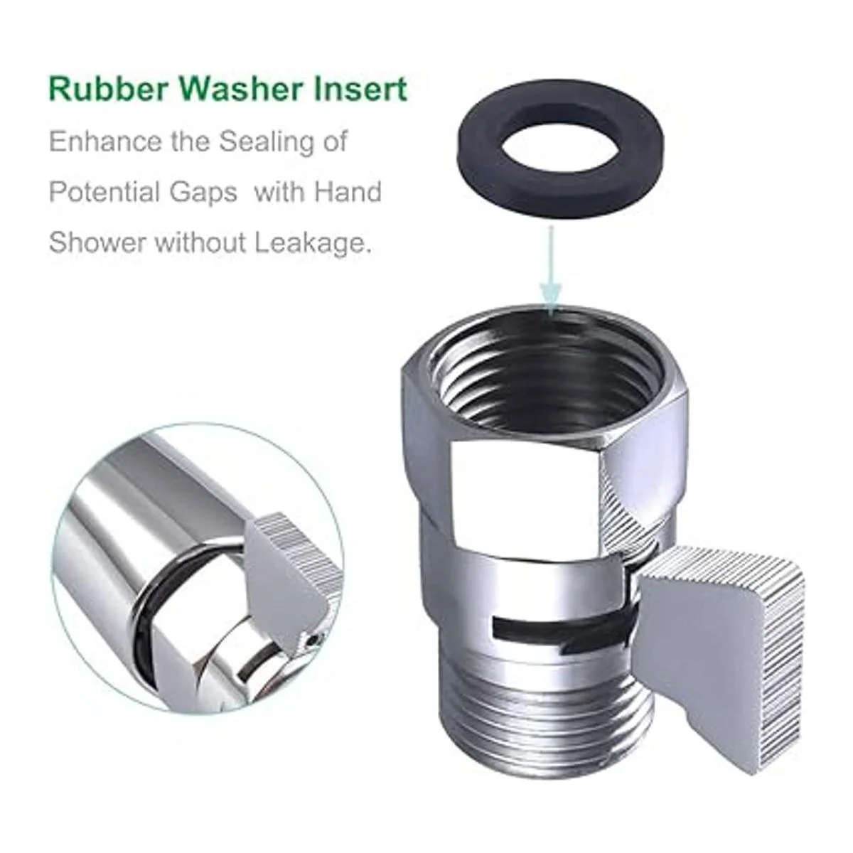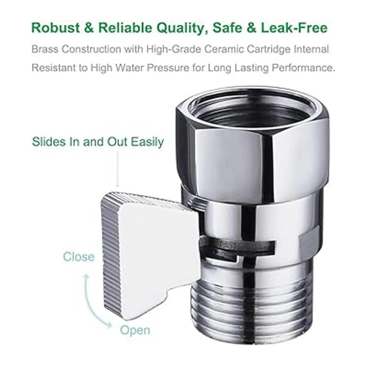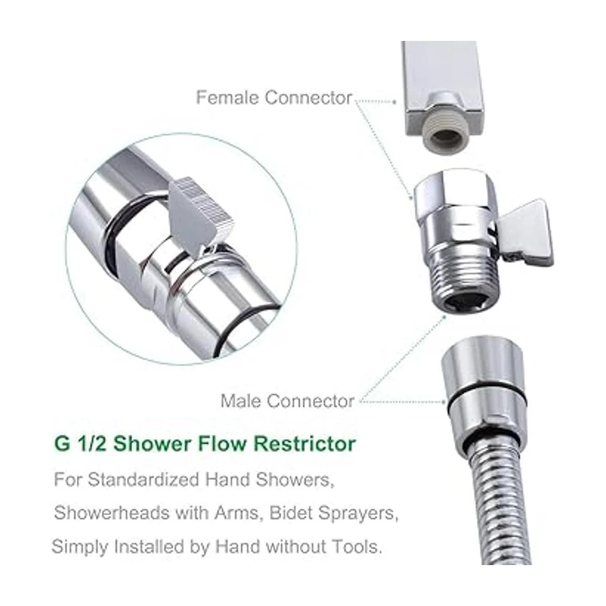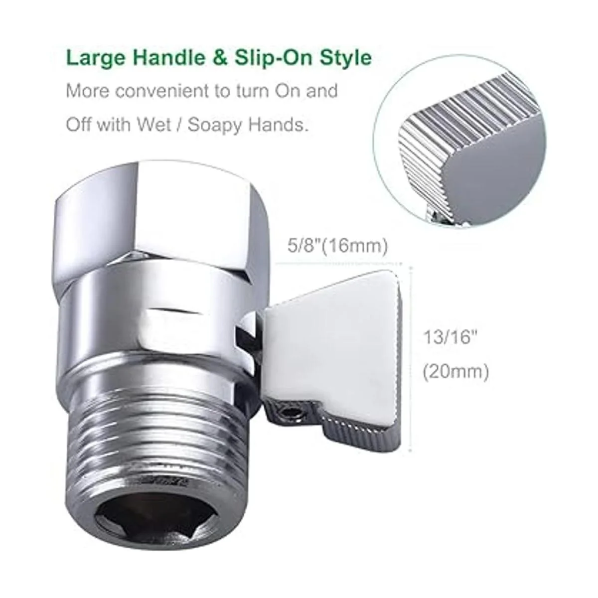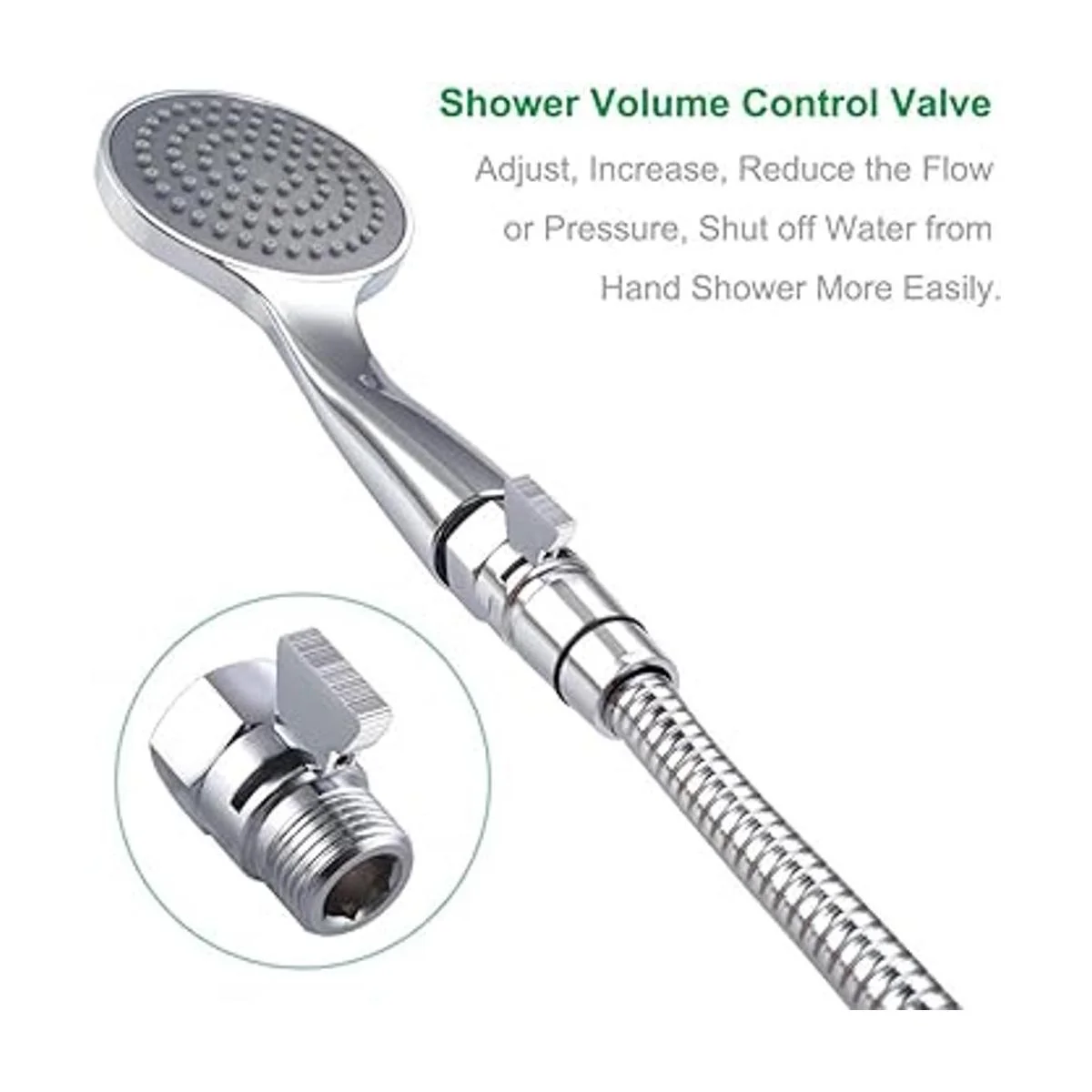 Mando de flujo de ducha, mueva lentamente el mango entre completamente abierto y cerrado para restringir el flujo, gire fácilmente el mango a la presión exacta que desea mientras ducha. O se utiliza como válvula de parada para evitar goteos constantes de tu mala ducha.