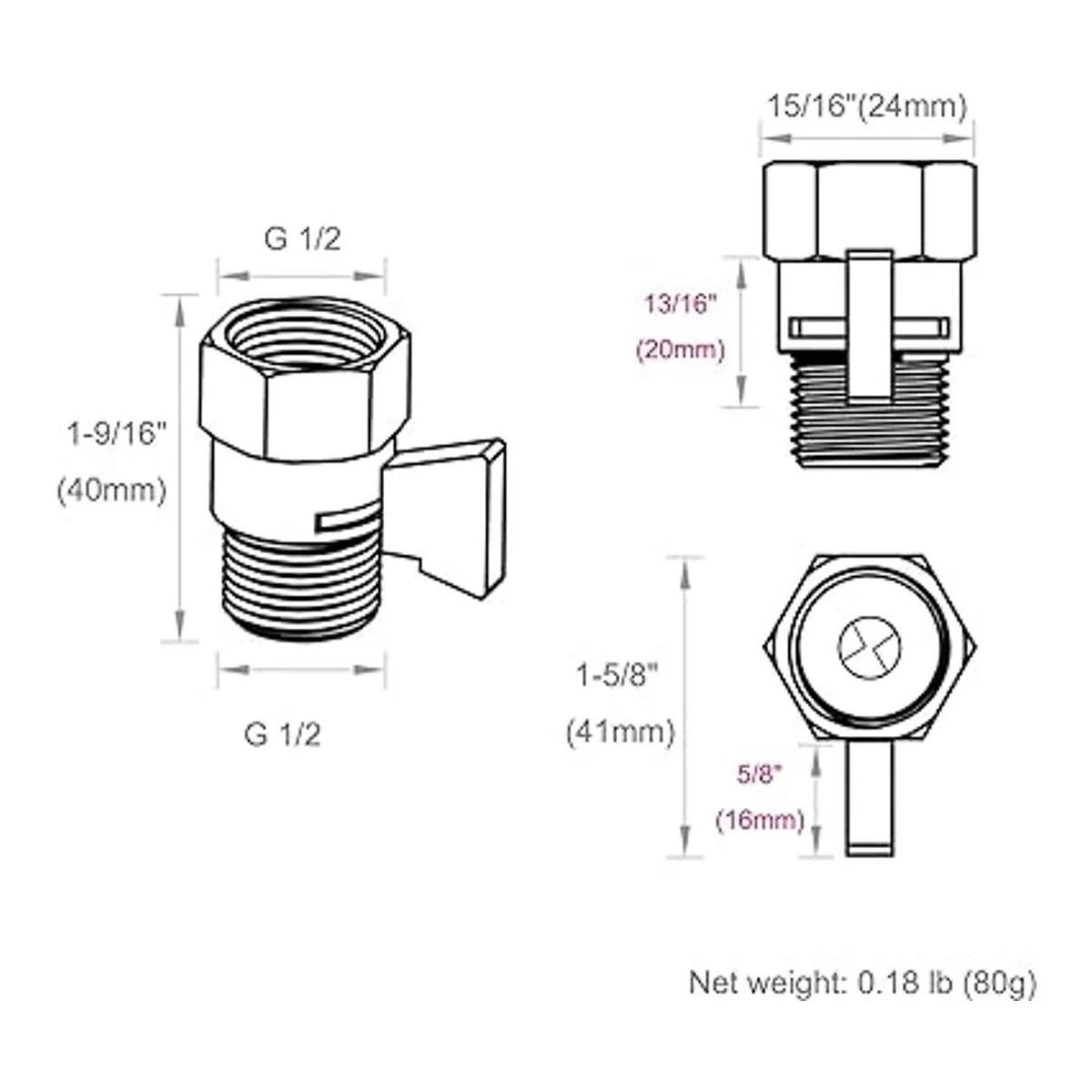 Solid Brass Body Handle, Ceramic Cartridge, No Leakage. Overall size: 15/8 x 15/16 x 19/1641 x 24 x 40mm. Net weight: 0.18 lb 80g