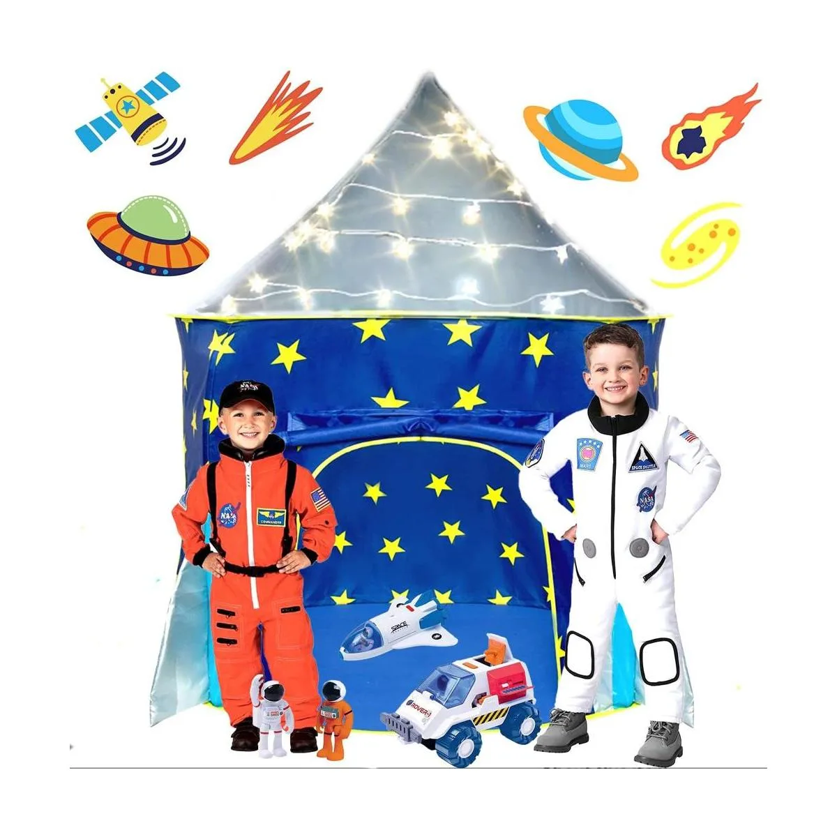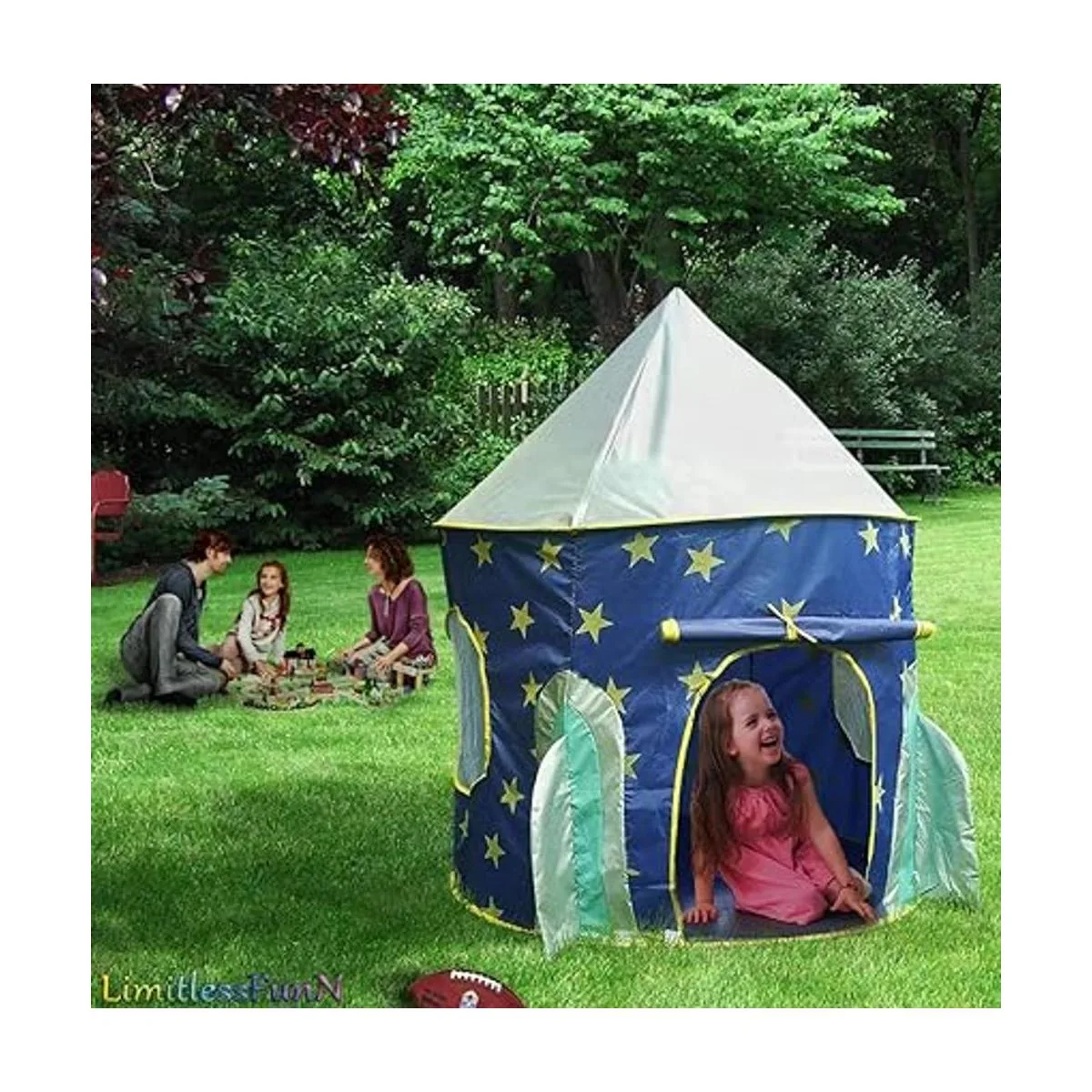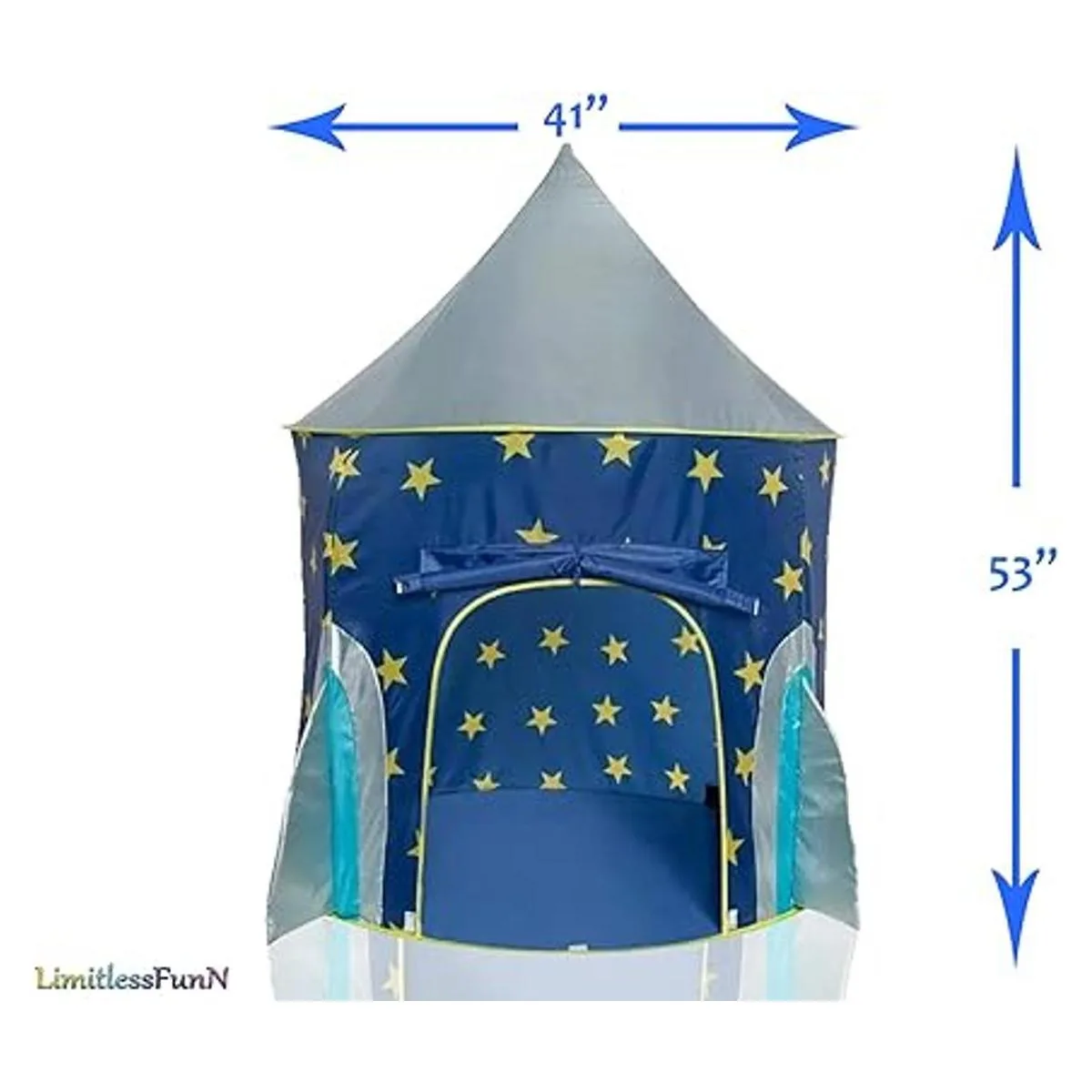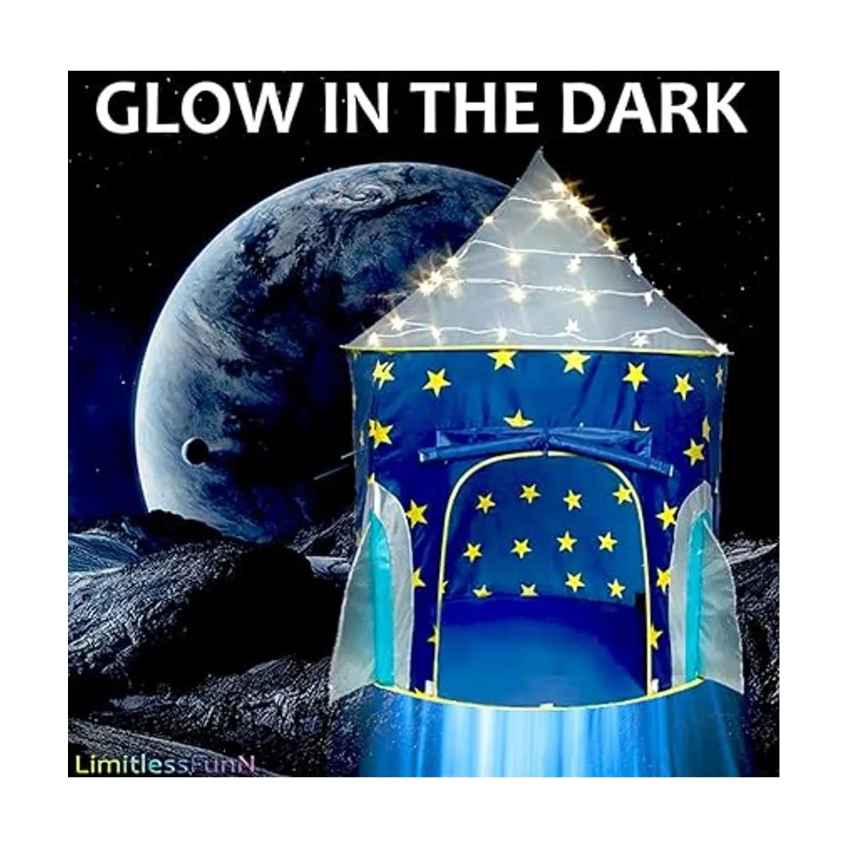 LimitlessFunN Tienda de campaña con luces de estrella y funda de transporte para niños portátil, resplandor en la oscuridad, color azul