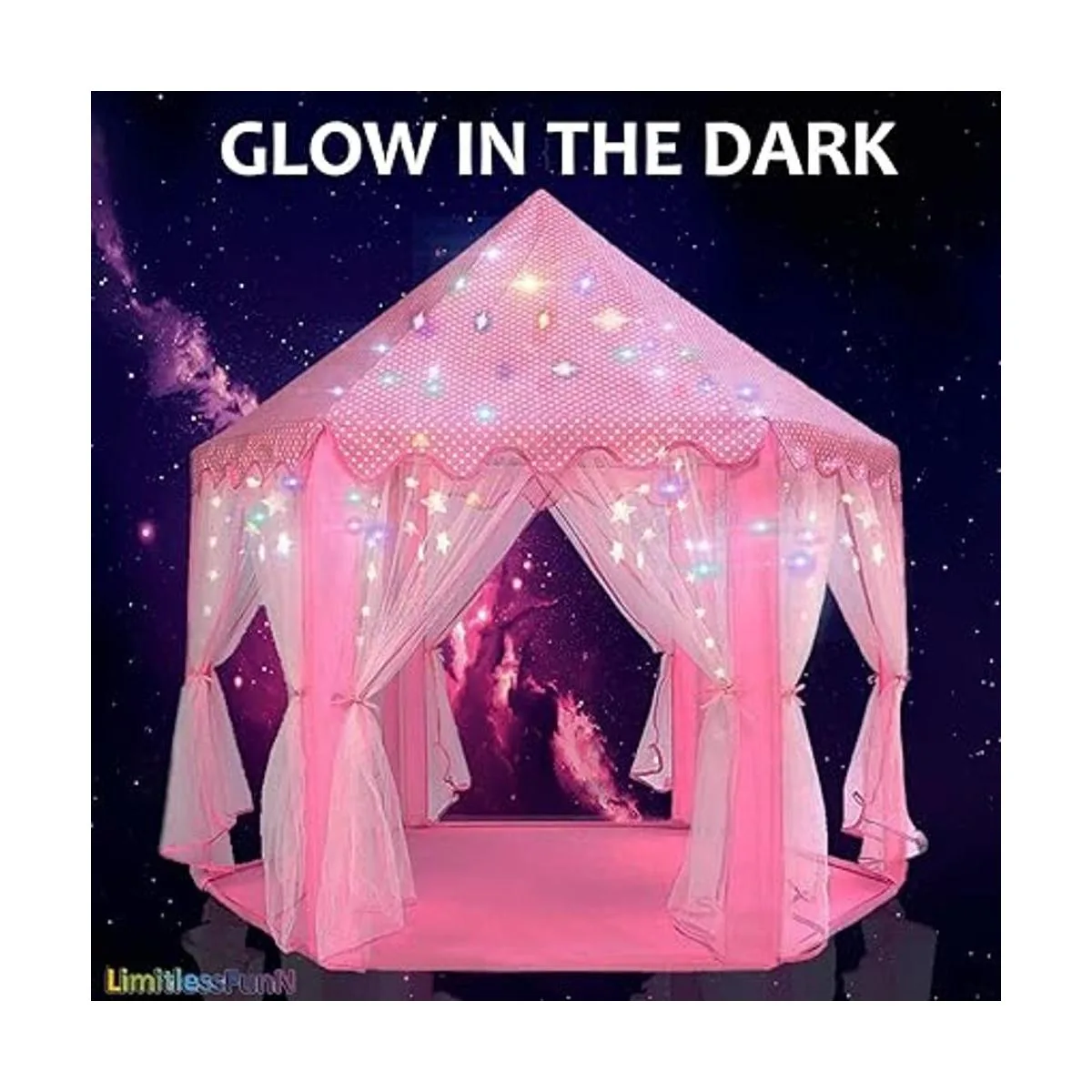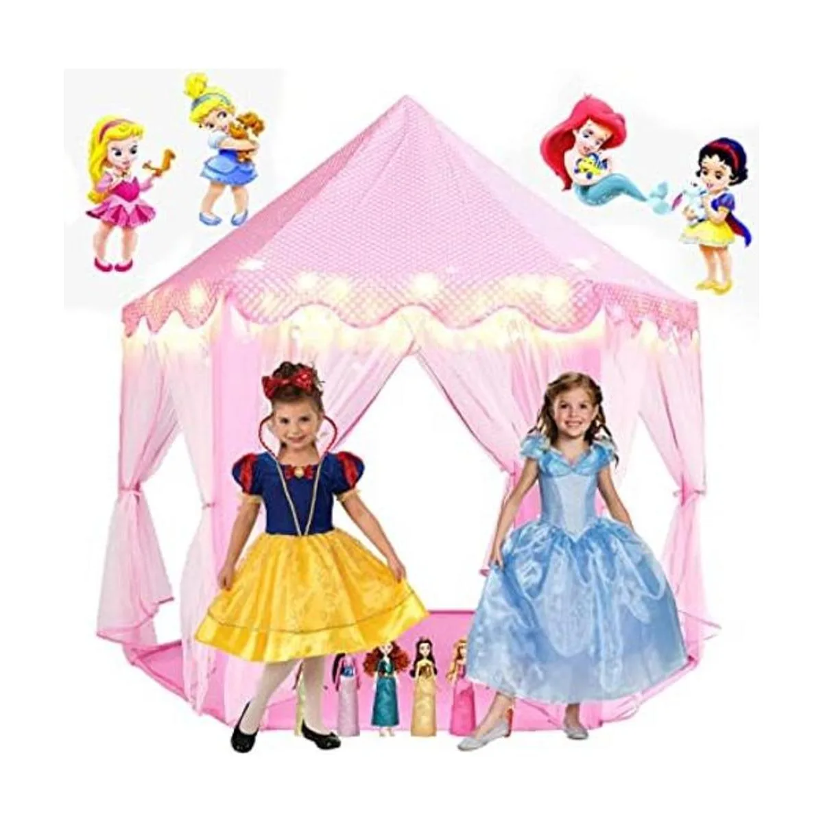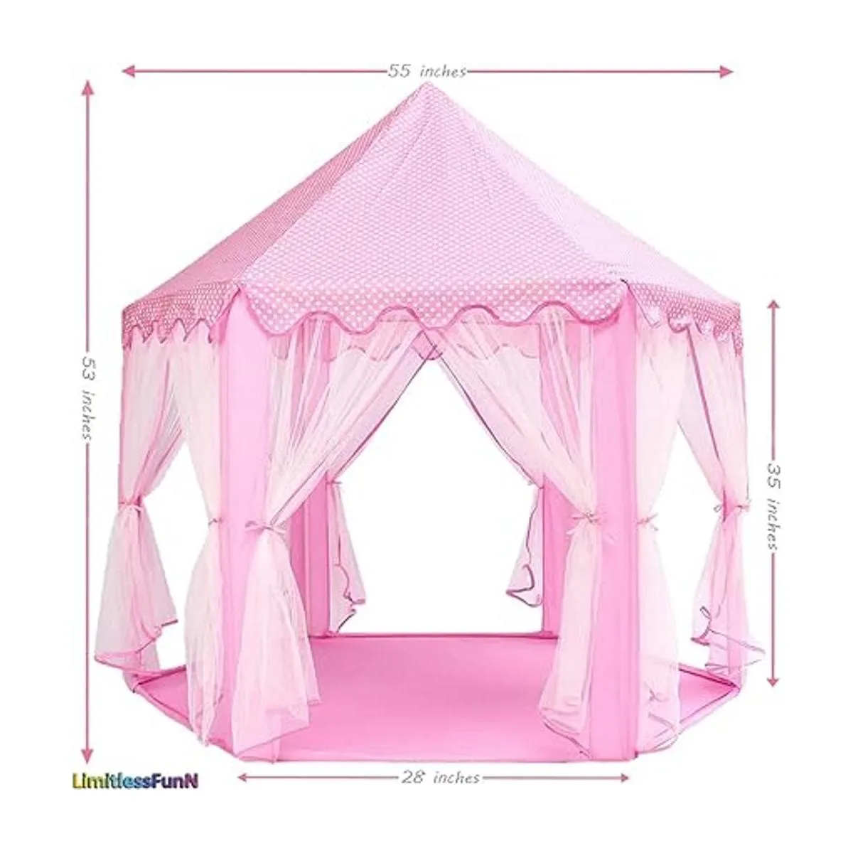 LimitlessFunN Tienda de campaña de princesa, 53.9 x 52.4 in, tamaño grande, hexagonal, castillo, tienda de juegos para niños, interior y exterior