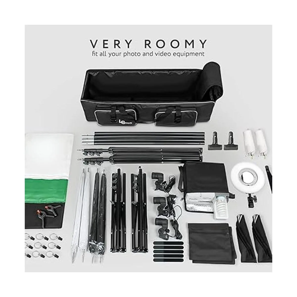 LimoStudio Bolsa de transporte para equipo de estudio fotográfico, 12.2 x 4.3 x 3.9 in, funda para carrito de transporte, compartimento acolchado, rueda, asa, soporte ligero, trípode, luz estroboscópica, paraguas, estudio fotográfico, AGG1695