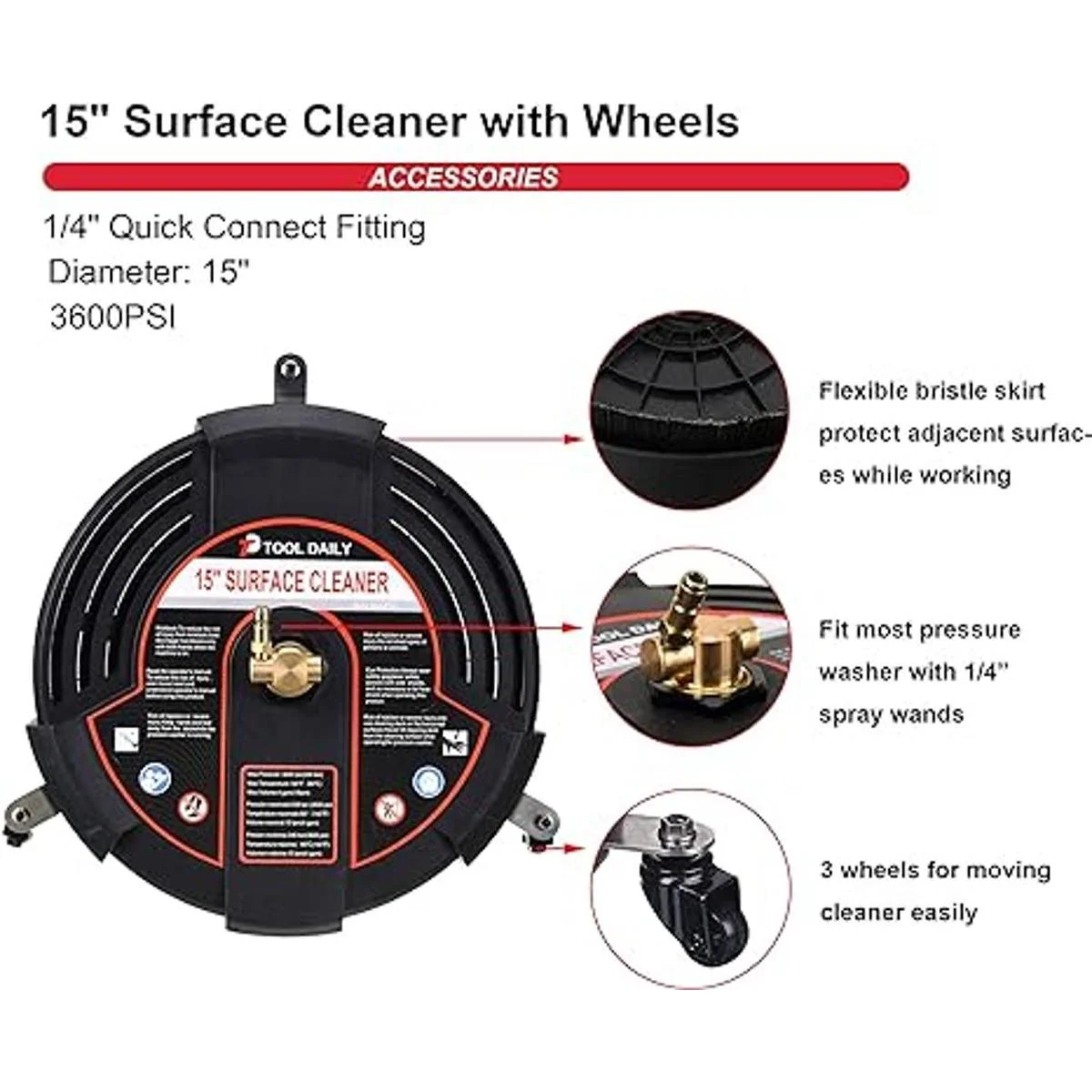 Limpiador de superficies de lavadora a presión diario con 2 piezas de 17 pulgadas varita y 2 boquillas de repuesto