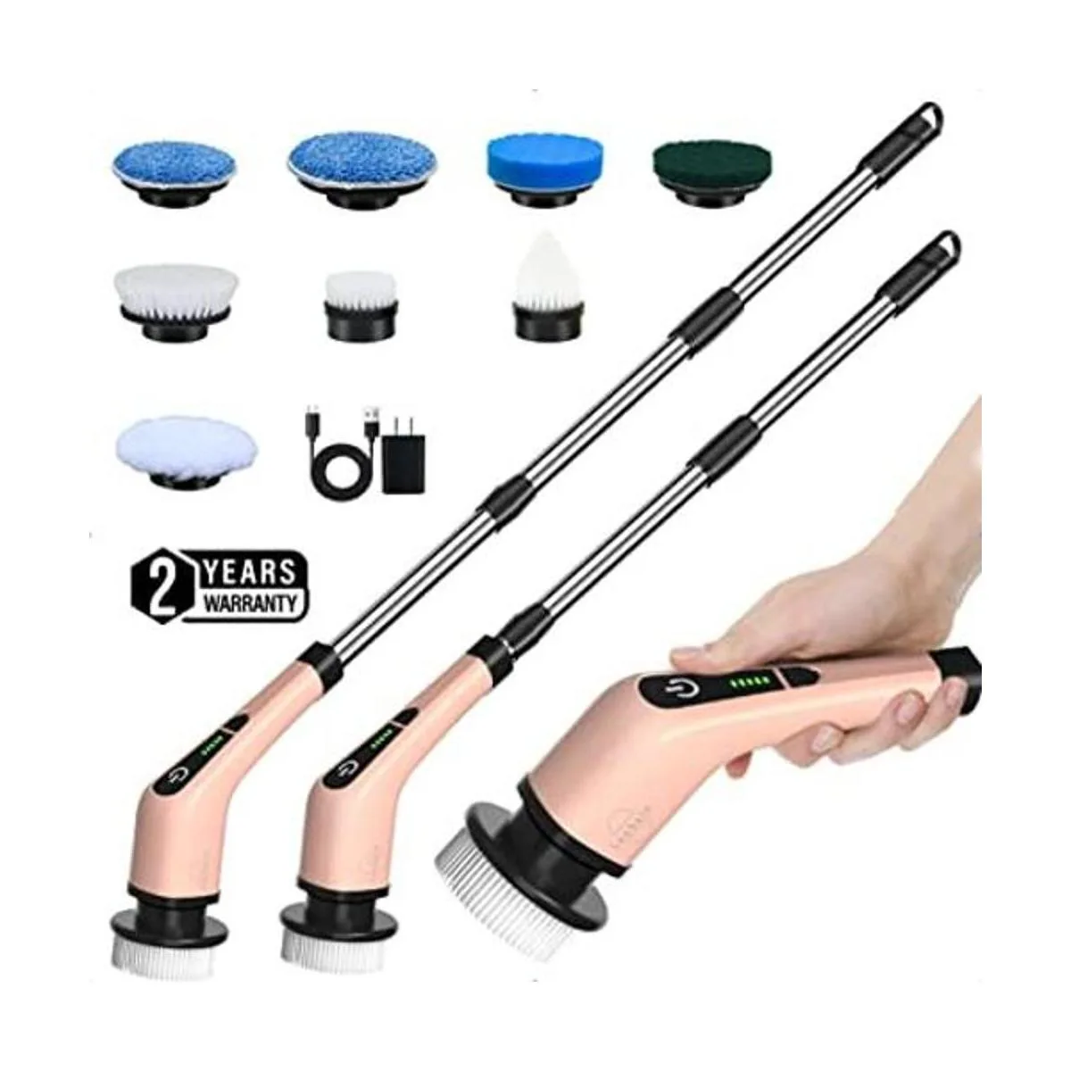 Limpiador eléctrico giratorio, potente cepillo de limpieza inalámbrico 360 para limpieza de baño, cocina, bañera de ducha y azulejos de suelo con extensión ajustable de mango largo y 8 cabezales de cepillo giratorios reemplazables rosa