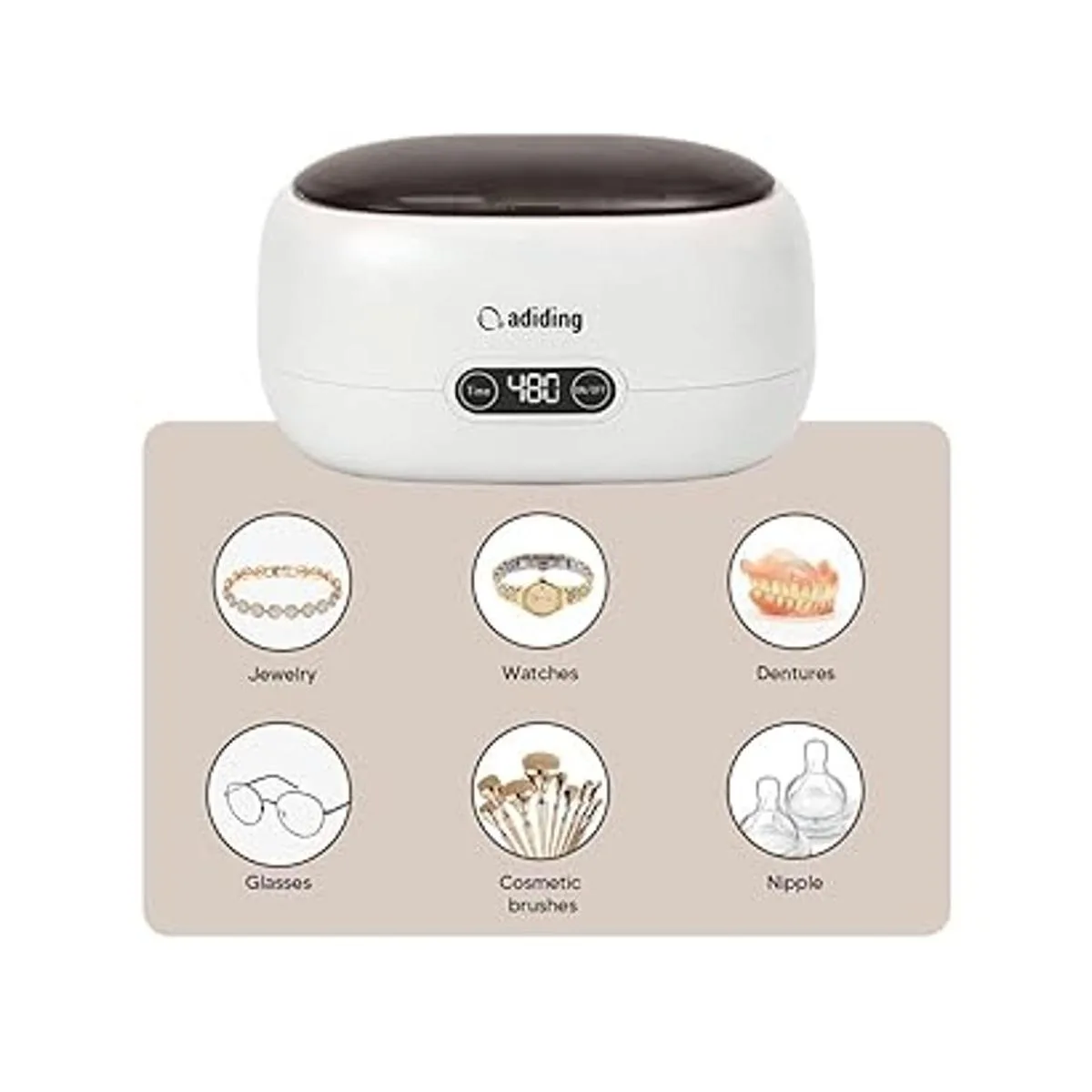 Diseño cómodo: el limpiador ultrasónico con gran capacidad de 22.0 fl oz es adecuado para limpiar a fondo uno o más artículos a la vez, ahorrando tiempo y esfuerzos. El sonido por debajo de 60 dB y el diseño de apagado automático te permite utilizar este limpiador ultrasónico de joyas incluso mientras duermes.