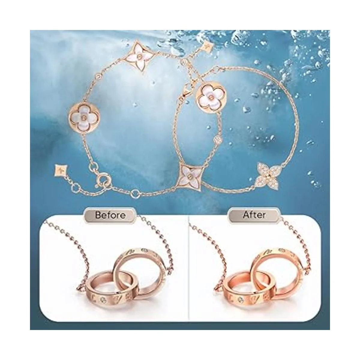 Ondas ultrasónicas de 45000 Hz. Este limpiador ultrasónico de joyas puede generar ondas ultrasónicas de 45000 Hz para eliminar suavemente la suciedad y la mugre de tus joyas en poco tiempo. Solo necesitas verter agua en el tanque, y poner los artículos en él, se puede añadir un poco de jabón líquido de manos/platos para una mejor limpieza. El limpiador ultrasónico hará que brillen de forma segura.
