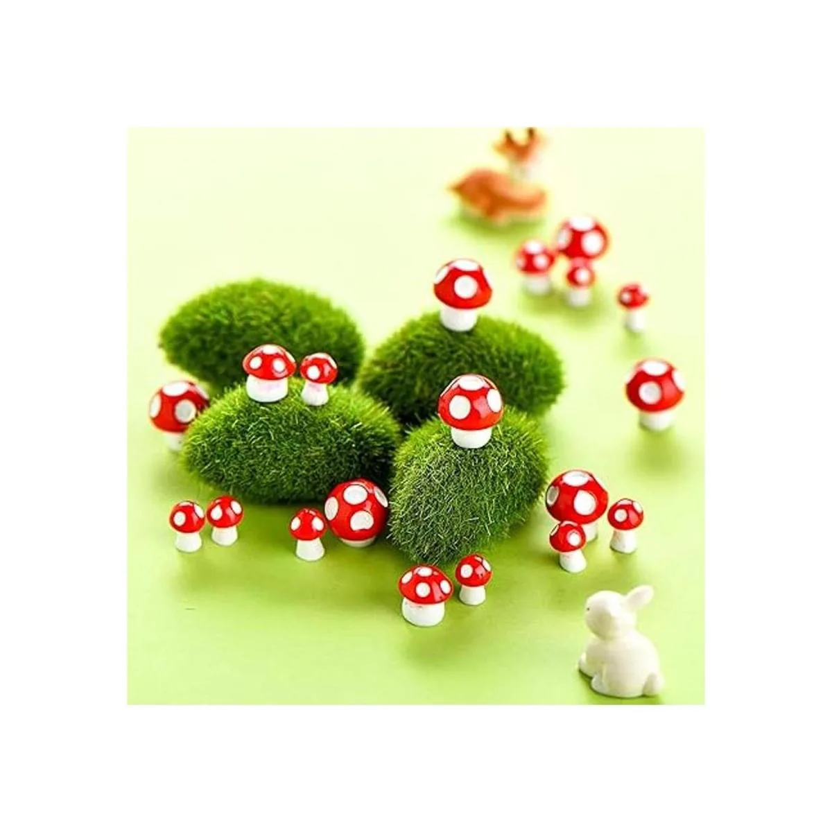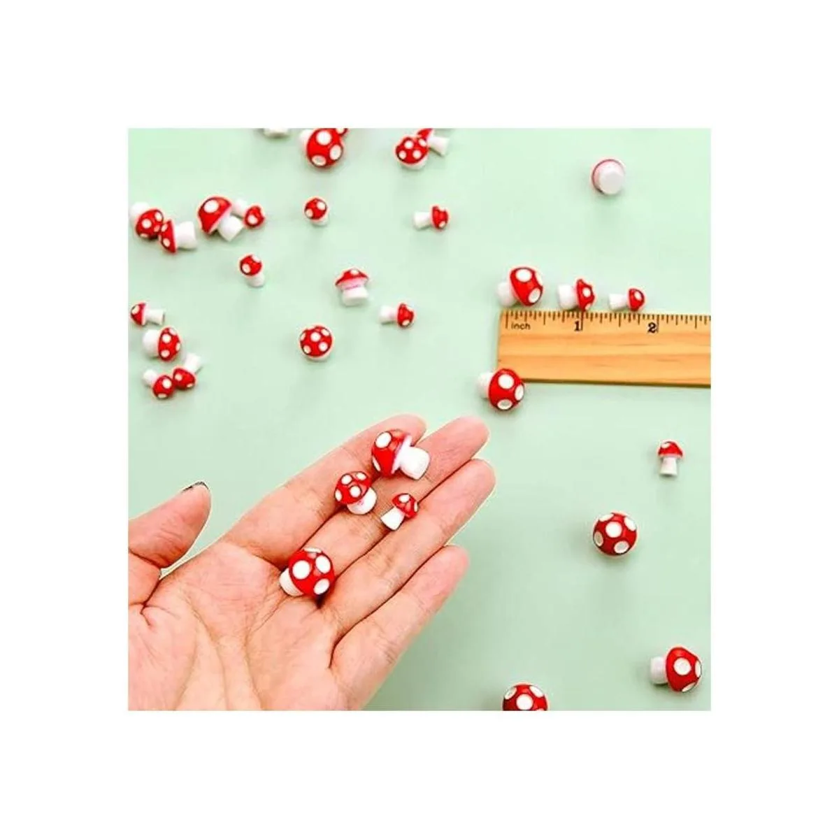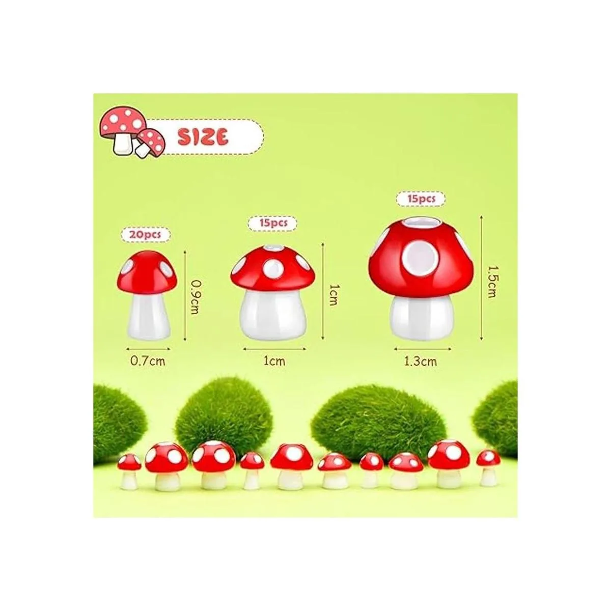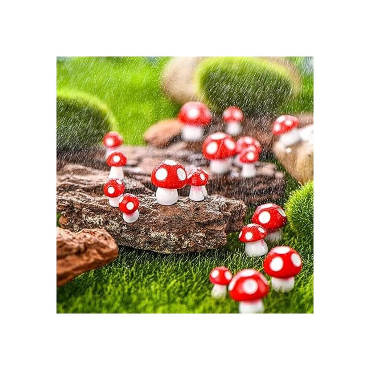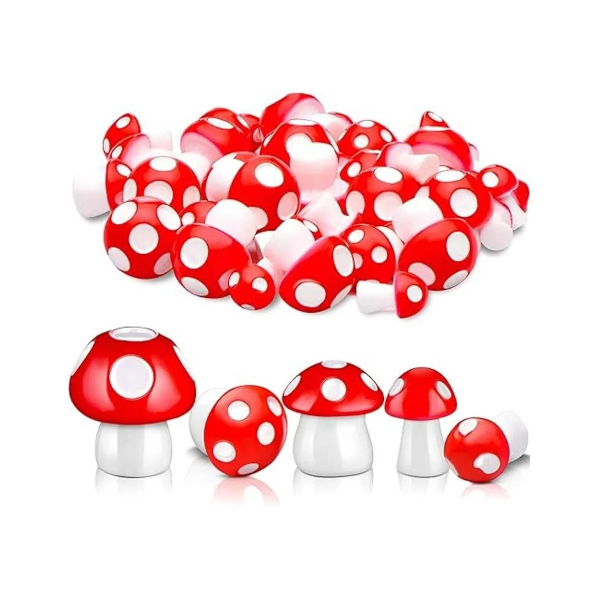 Lindas figuras miniaturas de hongos pequeños, adornos de hongos de jardín de hadas, modelo de hongos, estatua de jardín, paisaje en miniatura, manualidades, bonsái, para suministros de decoración del hogar rojo, 50 piezas