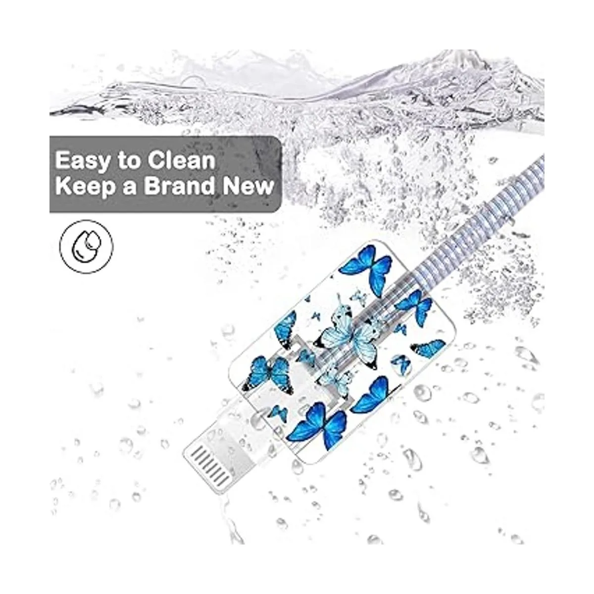 Lindos protectores de cable para iPhone, funda de cargador de iPhone, bonito diseño de mariposas azules, cable de datos para iPhone, cargador de línea de datos para iPhone 14, 13, 12, 11 Pro