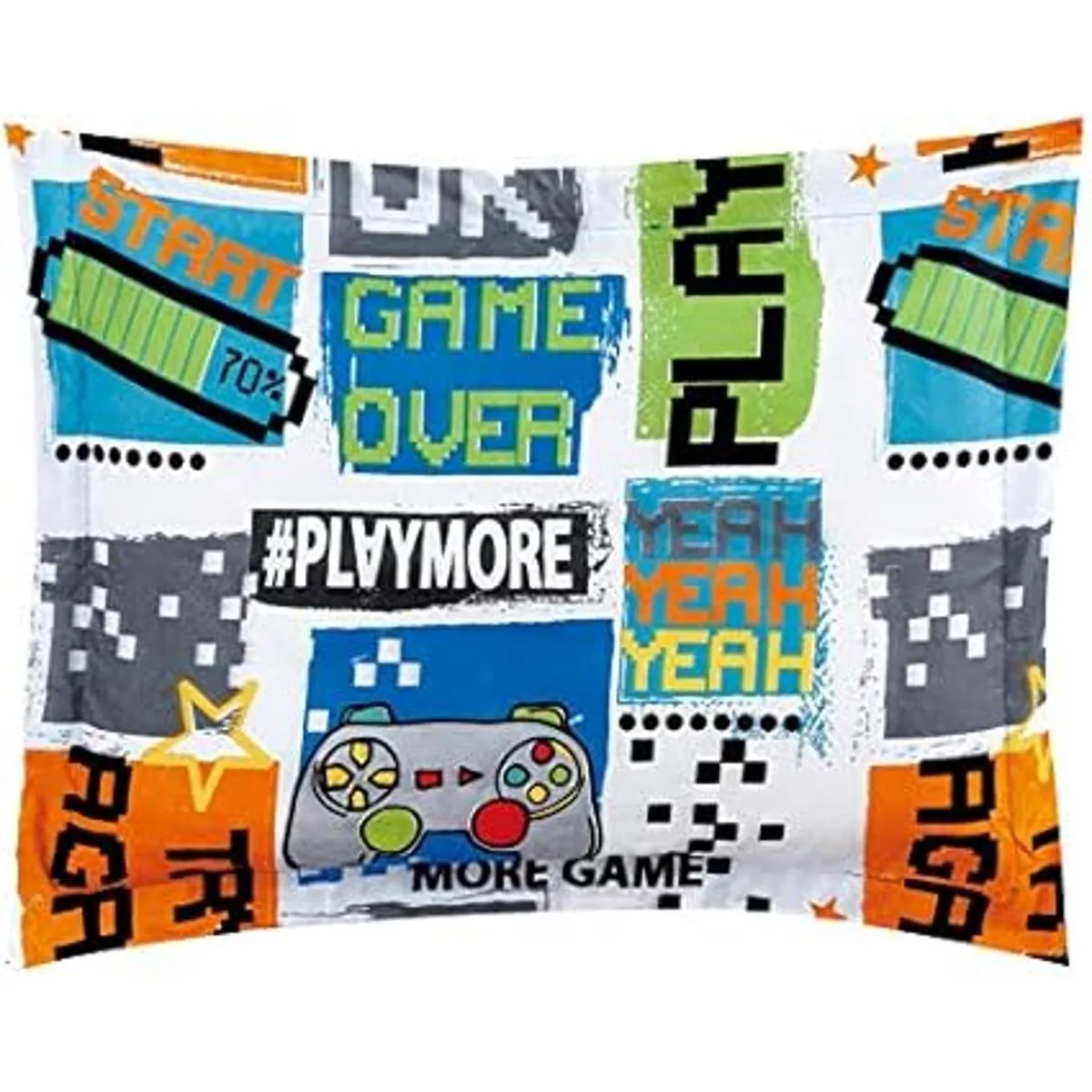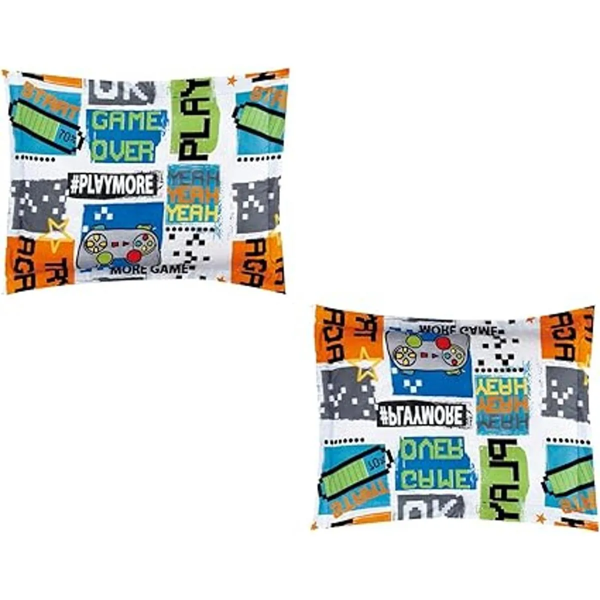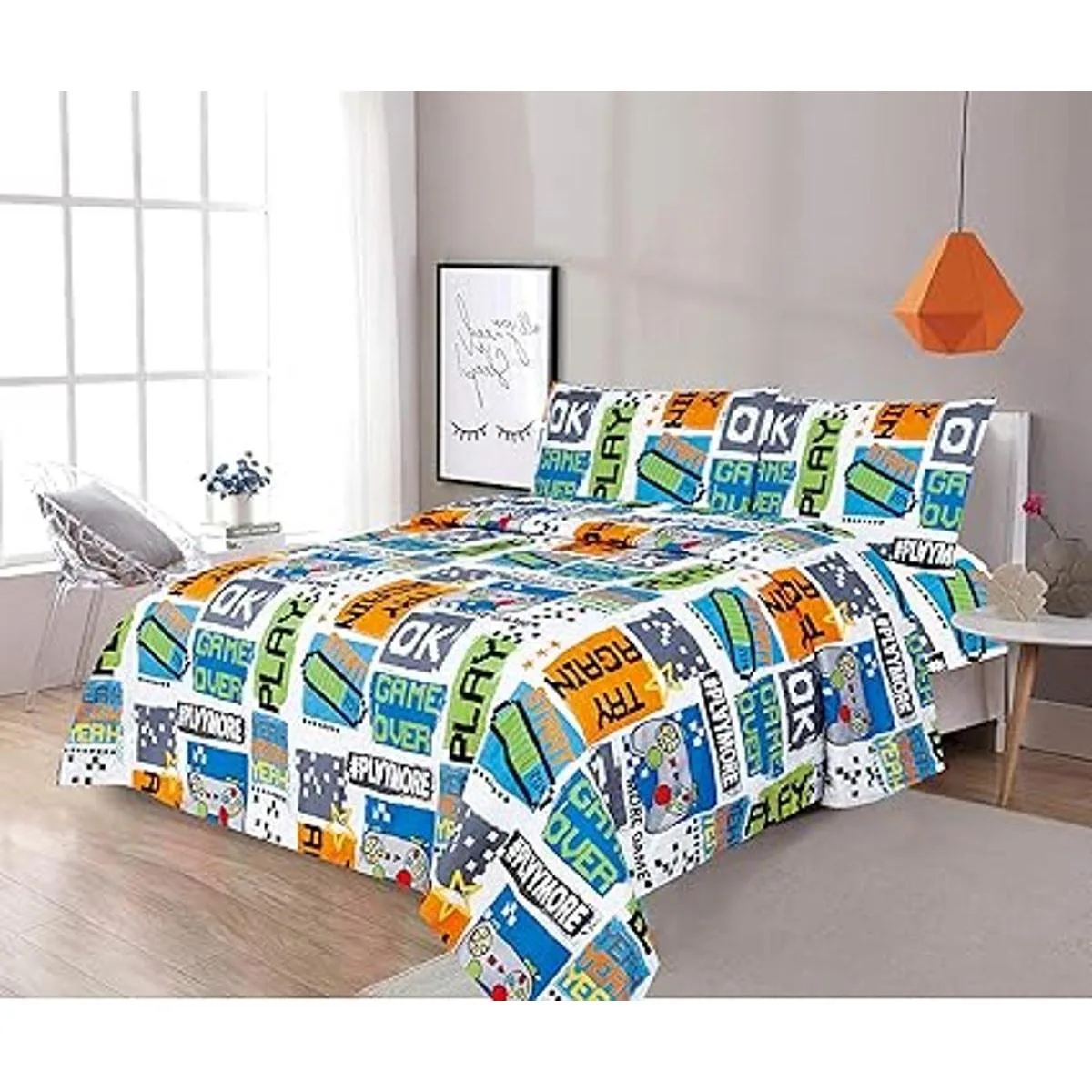 LinenTopia Juego de edredón de 8 piezas de tamaño matrimonial para niños y adolescentes, cama en bolsa, fundas, juego de sábanas y almohada decorativa de juguete, edredón para niños con sábanas, videojuegos, azulverde F, 8 piezas, juego