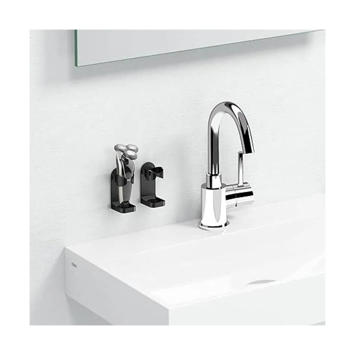 Linkidea Soporte ajustable para afeitadora eléctrica montado en la pared, paquete de 2 ganchos autoadhesivos para maquinilla de afeitar, organizador de ducha de baño eléctrico, color negro