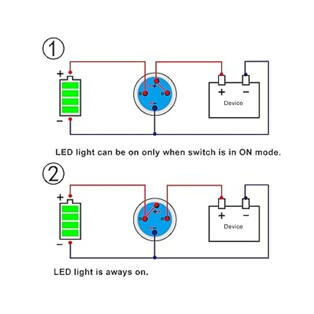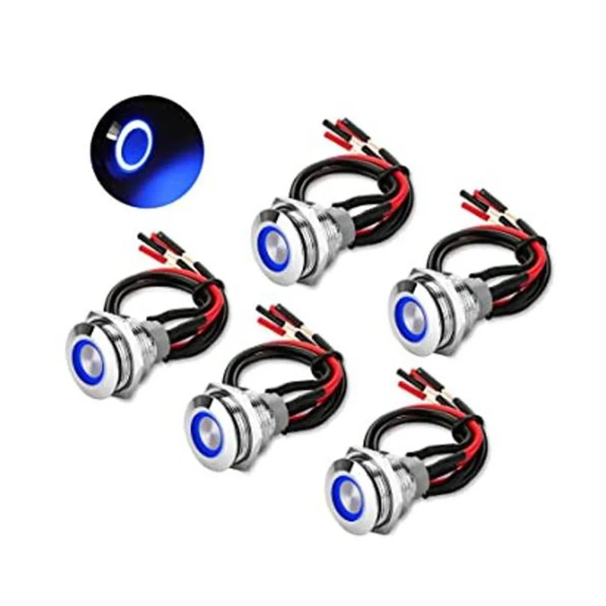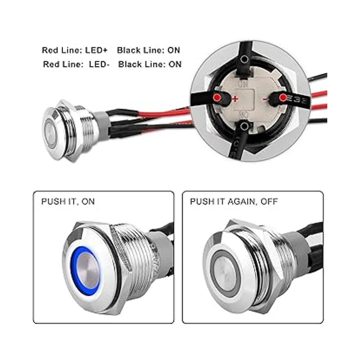 Interruptor de botón de cierre iluminado: interruptor de botón de encendido y apagado con luz indicadora roja, interruptor y anillo de luz LED están separados, la luz LED puede estar encendida todo el tiempo o sólo cuando el interruptor está en modo de encendido, depende de cómo lo conecte.