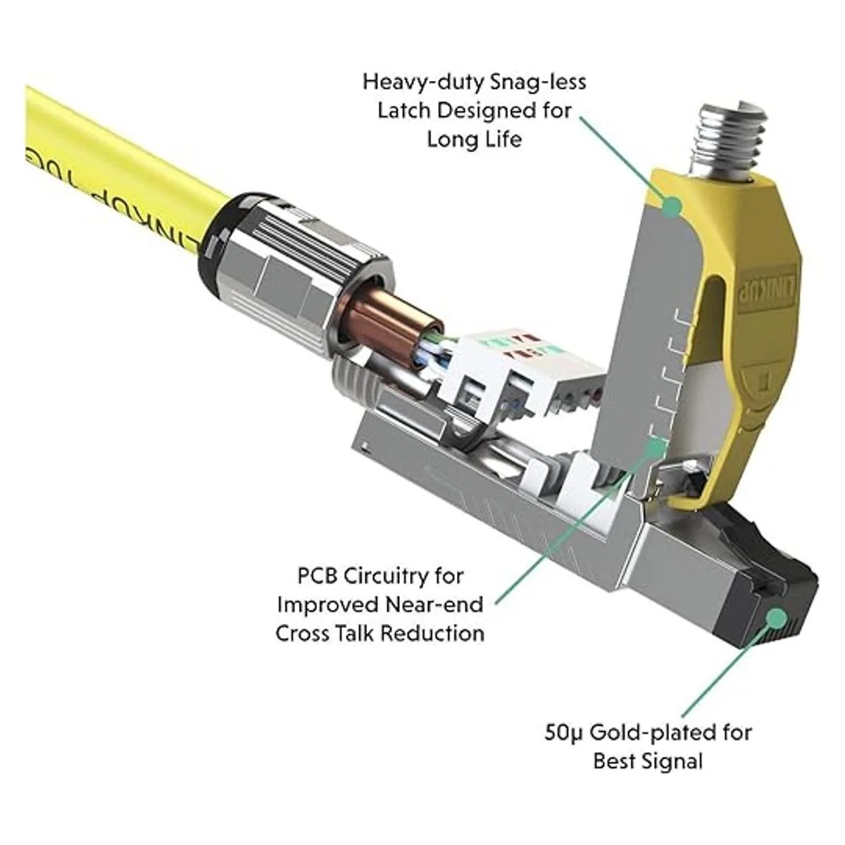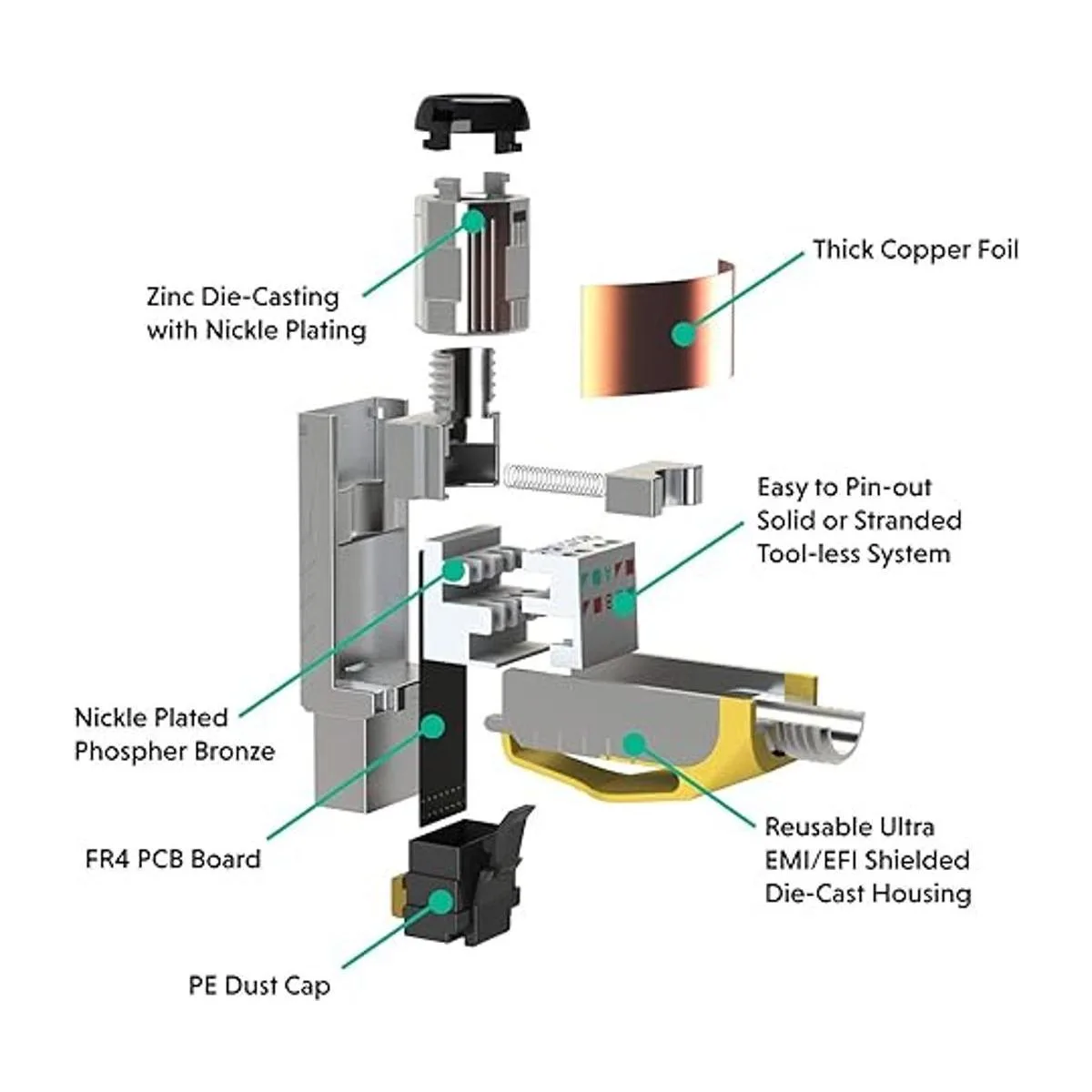 Construcción de calidad: la robusta carcasa de aleación de zinc integra el cilindro de silencio para suprimir interferencias EMI, SIGUIENTE y AXT. La bota de alivio de tensión de metal atornillada aumenta el blindaje y la integridad.