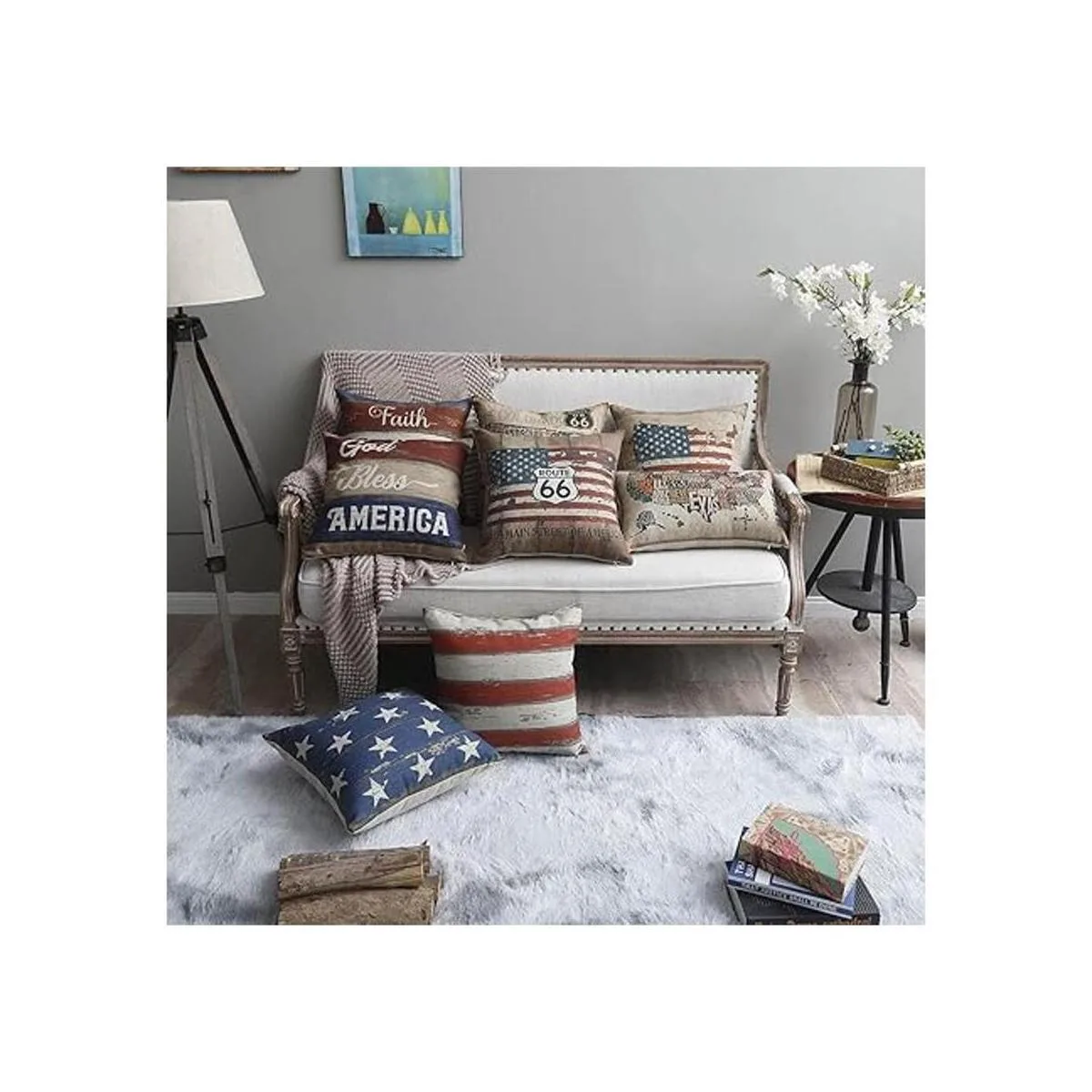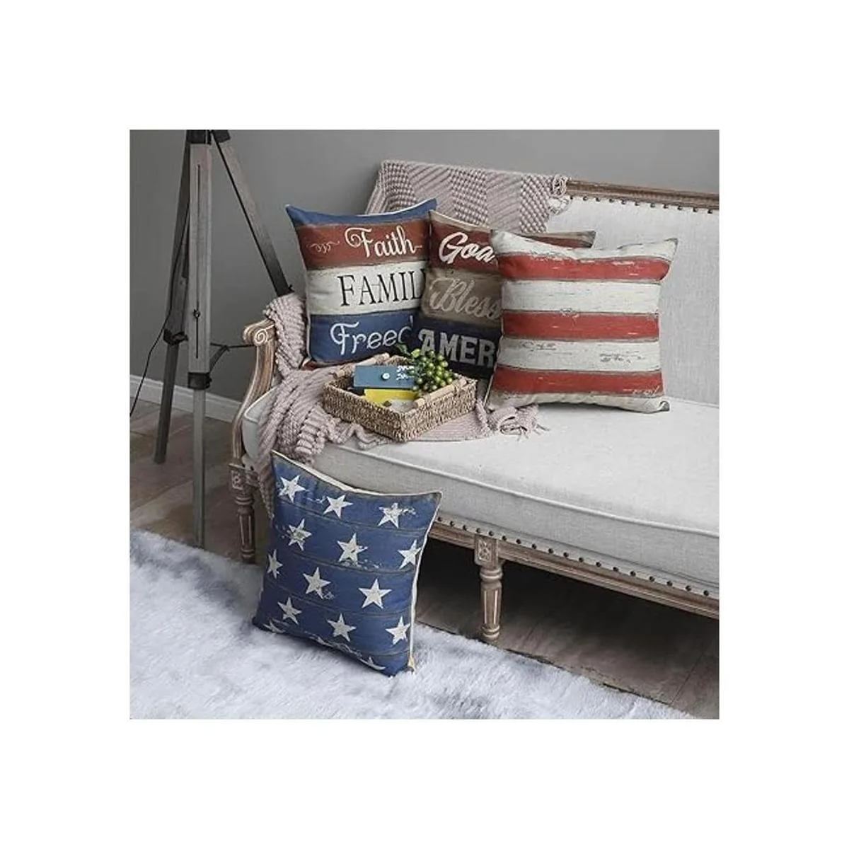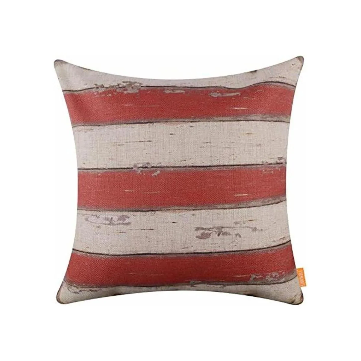 LINKWELL Funda de cojín de arpillera de 18 x 18 pulgadas, Día de la Independencia a rayas rojas de Estados Unidos, CC1498