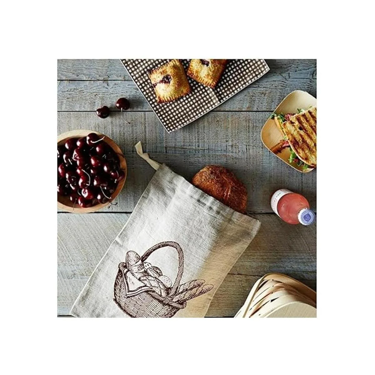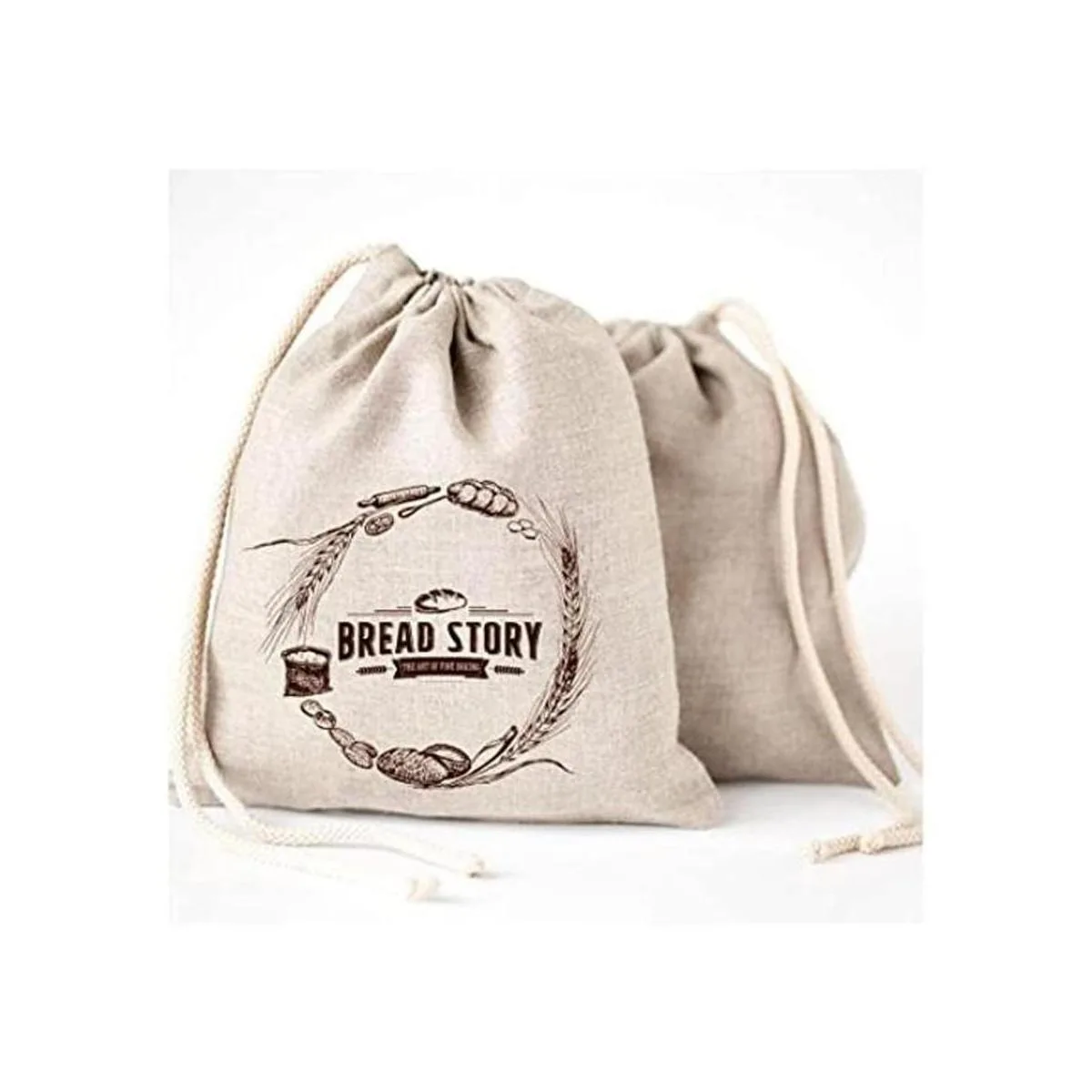 Dos bolsas de calidad premium disfrutar de un premium lino natural con un gran diseño que permite para usted para almacenar barras, pan, o pasteles todas las bolsas son aproximadamente 13 por 15 con un cierre de cordón.