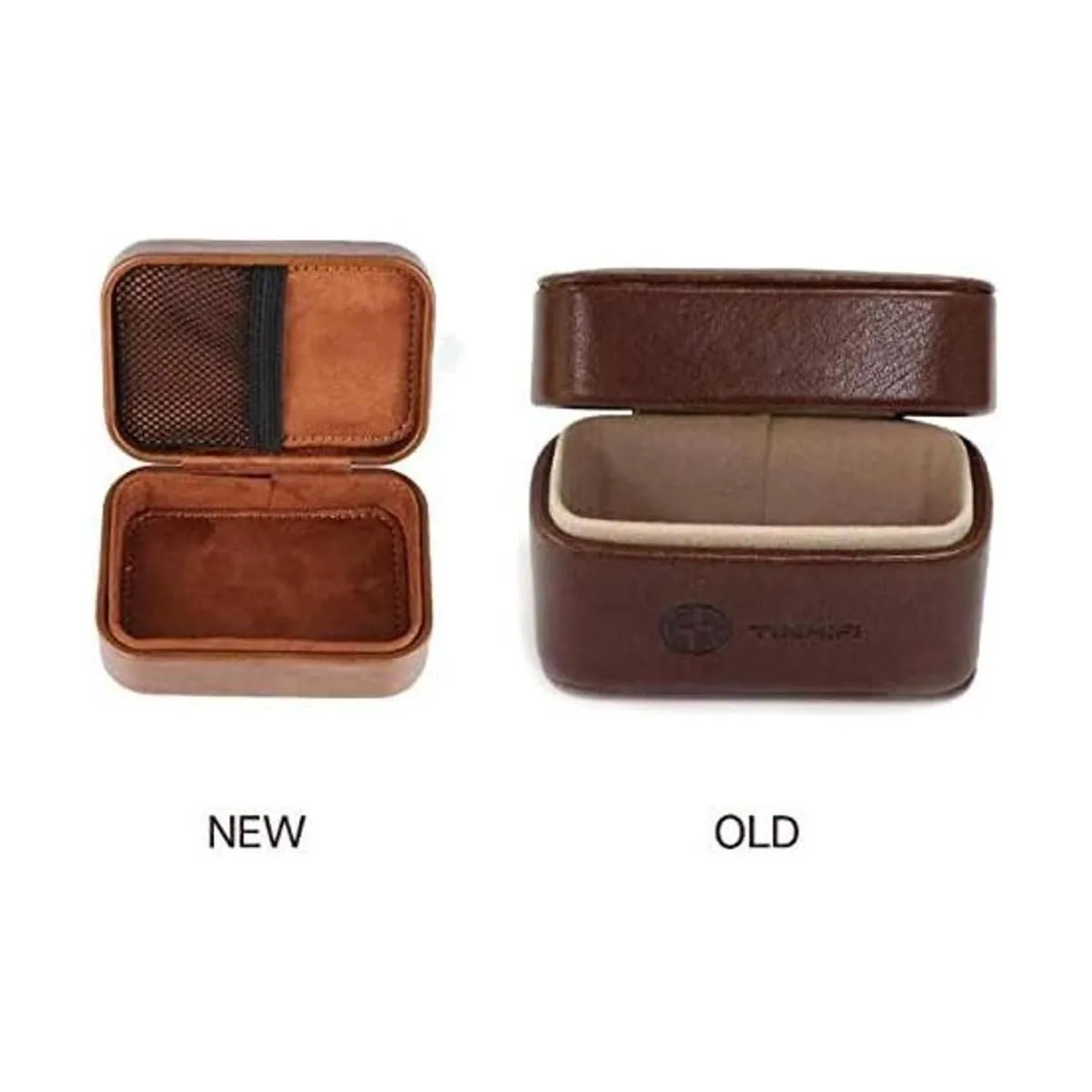 Exquisita funda. Después de tiempos de diseño y discusión, aquí tenemos esta pequeña funda de piel sintética. Es pequeño, pero tiene suficiente espacio para los auriculares. Es el tamaño exacto para tu serie TIN HIFI. La superficie de cuero se siente lujosa y retro. El interior está forrado con un paño suave que ofrece una protección perfecta para tus auriculares.