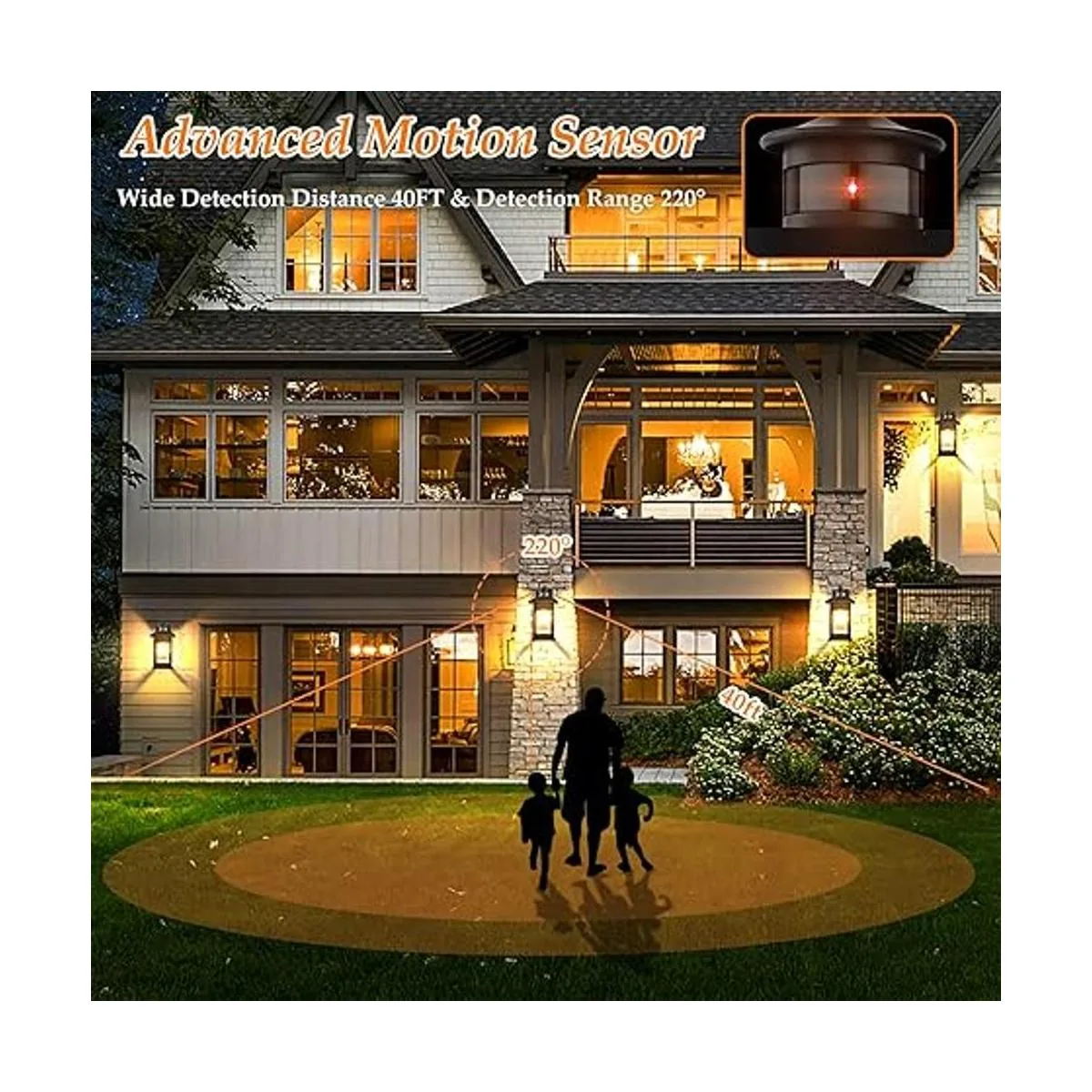 Sensor de movimiento avanzado y sensor de atardecer a amanecer Combinado con sensor de movimiento PIR y sensor de fotocélula del atardecer al amanecer, esta lámpara de pared para exteriores tiene función de detección de movimiento ultra sensible y 3 modos de iluminación automático, ahorro de energía automático, anulación manual, lo que te da una sensación adicional de seguridad. La distancia de detección del sensor de movimiento es de 0 a 40 pies rango de detección: 220 grados. Las funciones inteligentes liberan tus manos en la vida cotidiana, promoviendo tu calidad de vida.