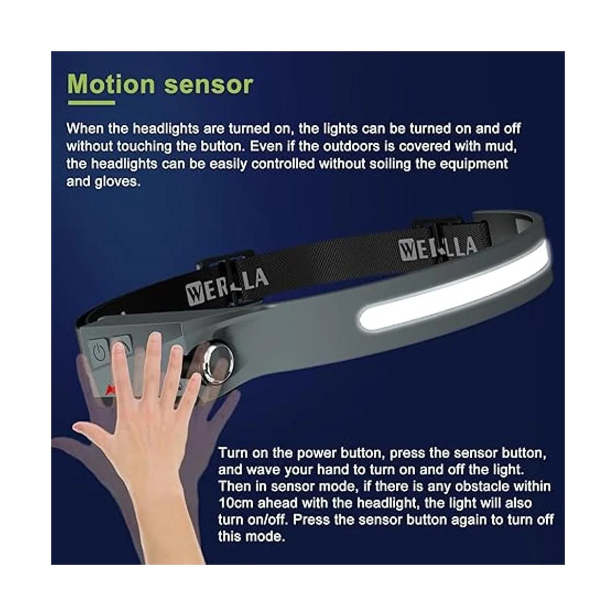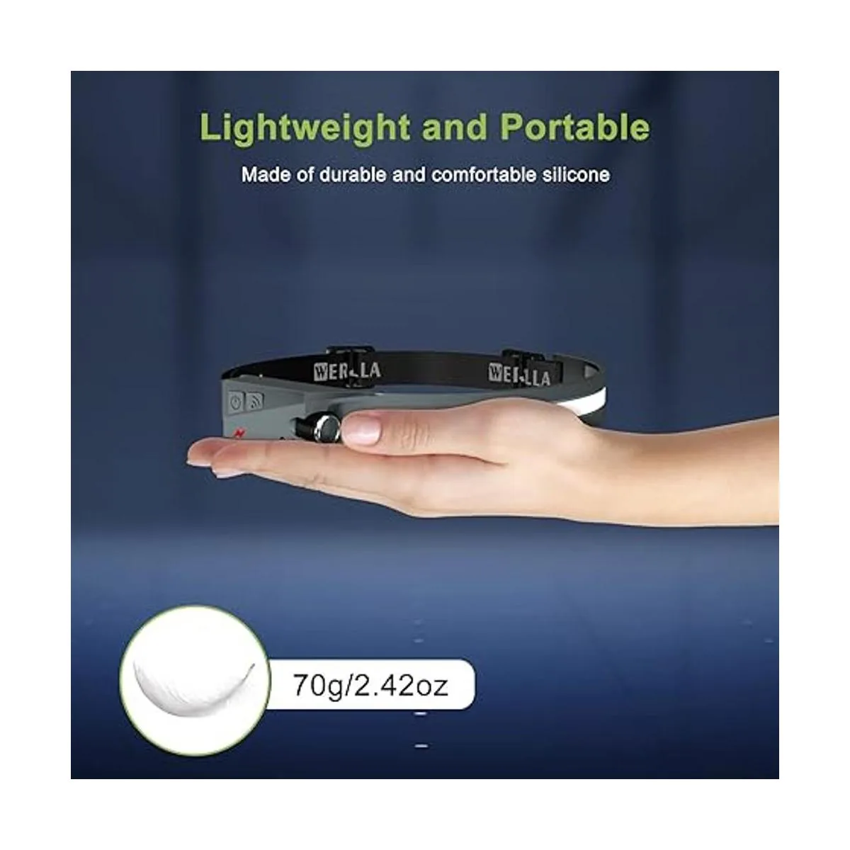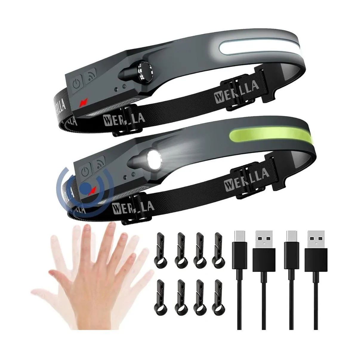 Linterna frontal LED, paquete de 2 faros recargables de 1200 lúmenes, luz ancha de 230 con sensor de movimiento y foco, lámpara de cabeza ligera de 2.4 onzas para campamento, correr, ciclismo, senderismo con clips