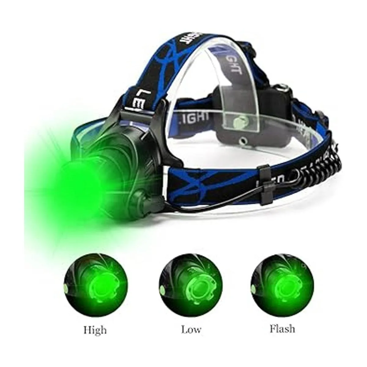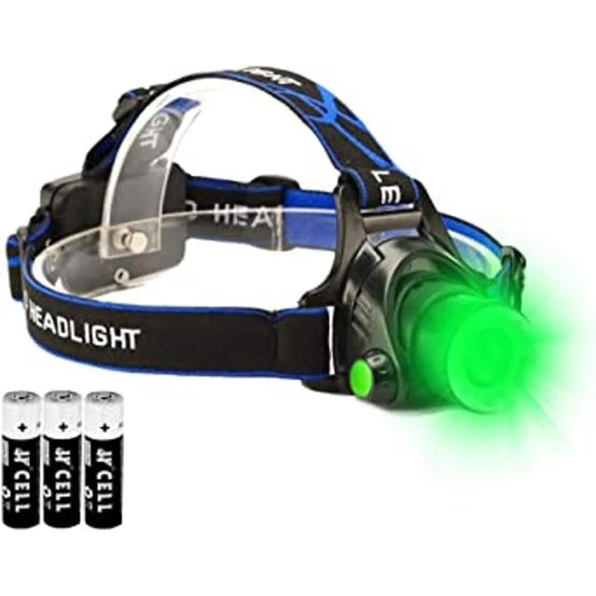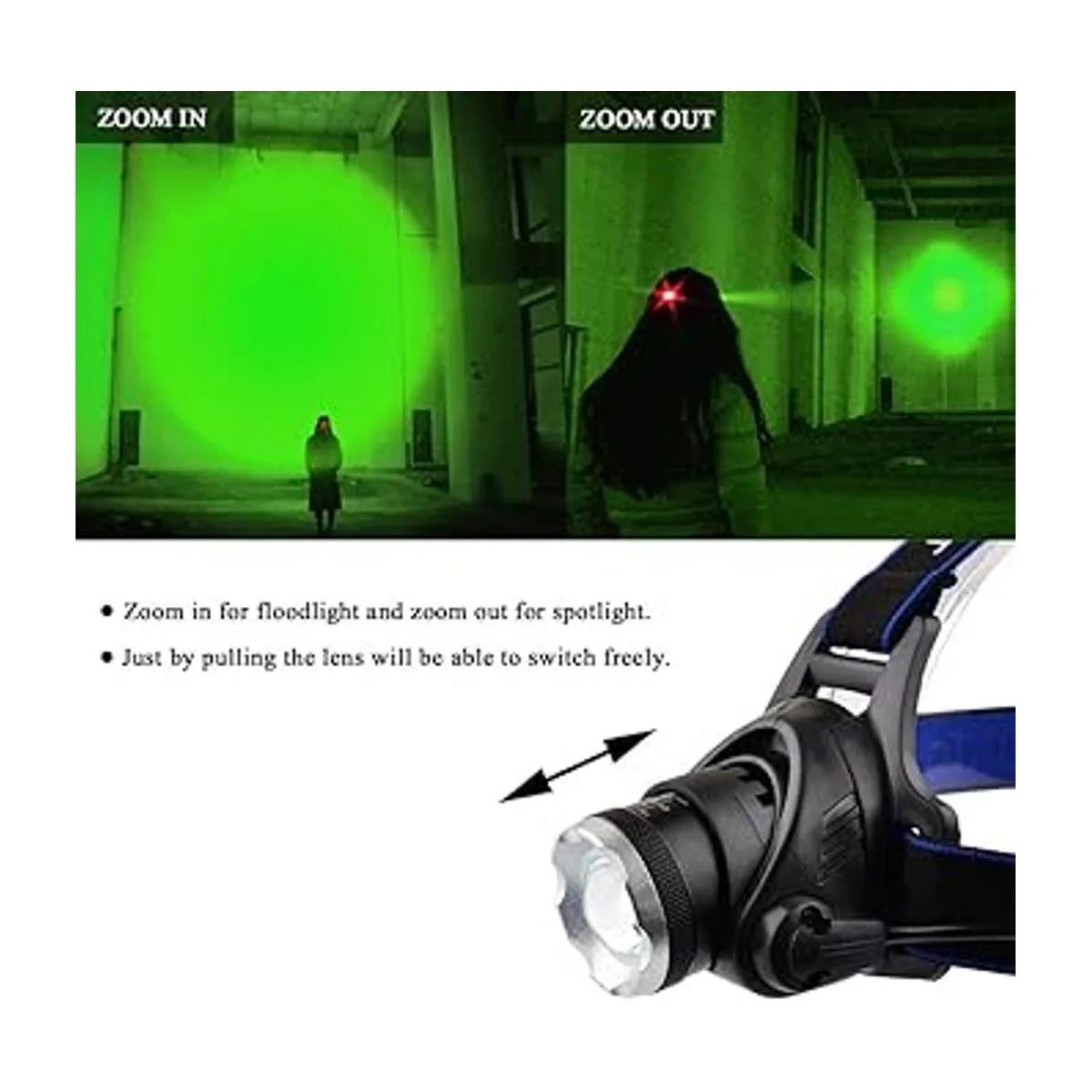 Linterna frontal LED verde impermeable con zoom y 3 modos, ideal para caza, actividades al aire libre, escalada, astronomía, etc. 1 paquete