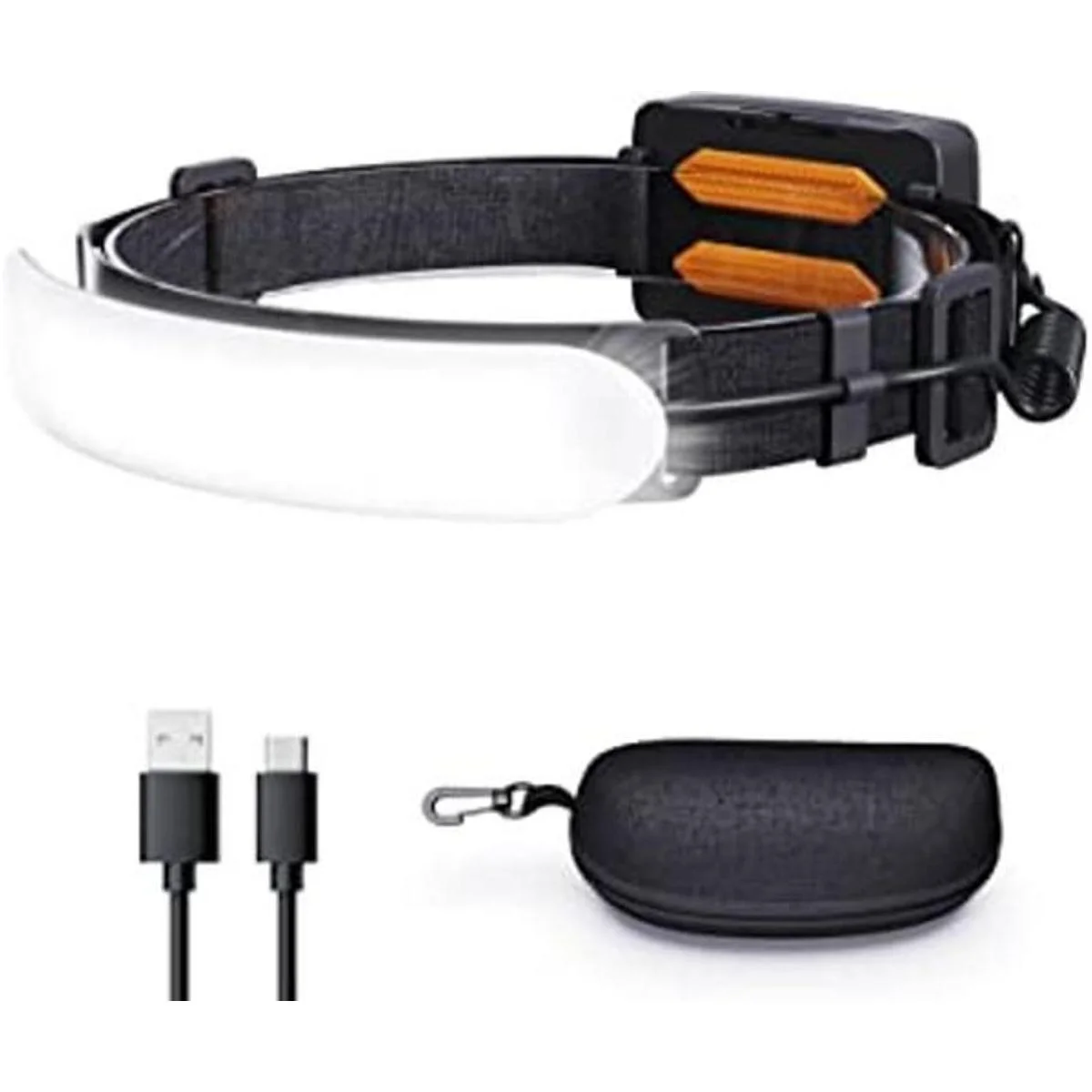 Linterna frontal recargable, 7500 mAh, 1500 lúmenes, lámpara LED de haz ancho súper brillante, luz de sombrero duro, banda de luz principal, faros para cabeza, diadema de linterna USBC, tira de faros COB para adultos, campamento y senderismo