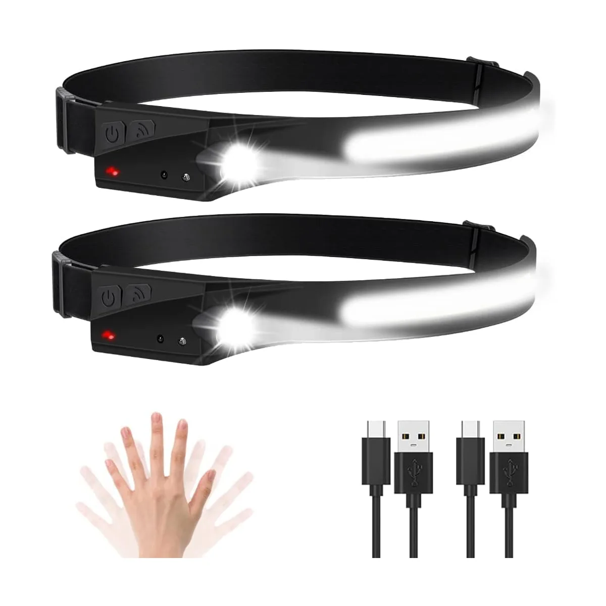 Linterna frontal recargable, linterna LED súper brillante, linterna de 230 COB de haz ancho con inducción de todas las perspectivas, faros delanteros impermeables de 5 modos profesionales para exteriores, senderismo, correr, campamento y accesorios