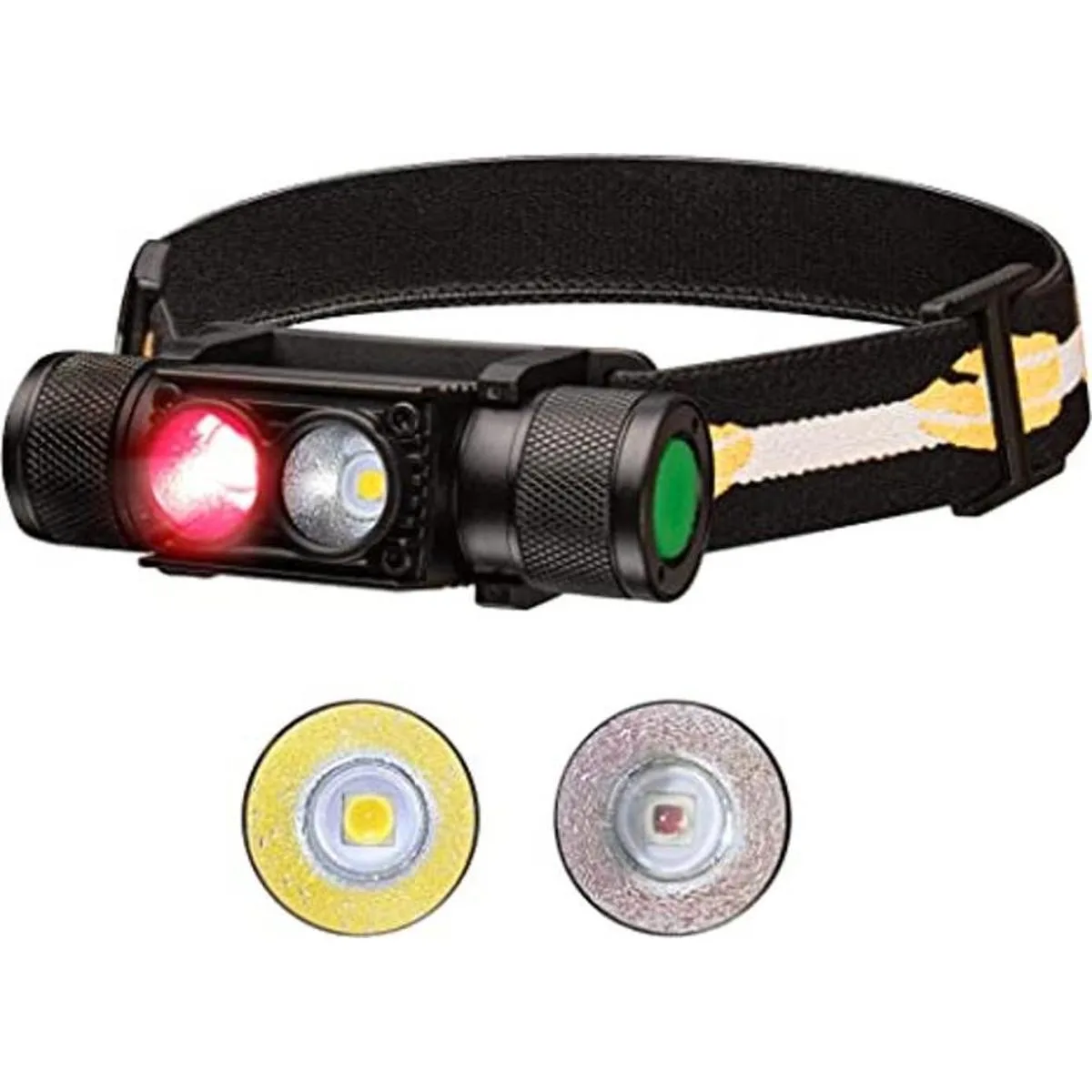 Linterna frontal roja recargable 77 para exteriores D25LR potente linterna de cabeza ligera con 90 luces blancas brillantes de alto CRI y luz roja profunda de 660 nm, carga USB para campamento, senderismo, caza